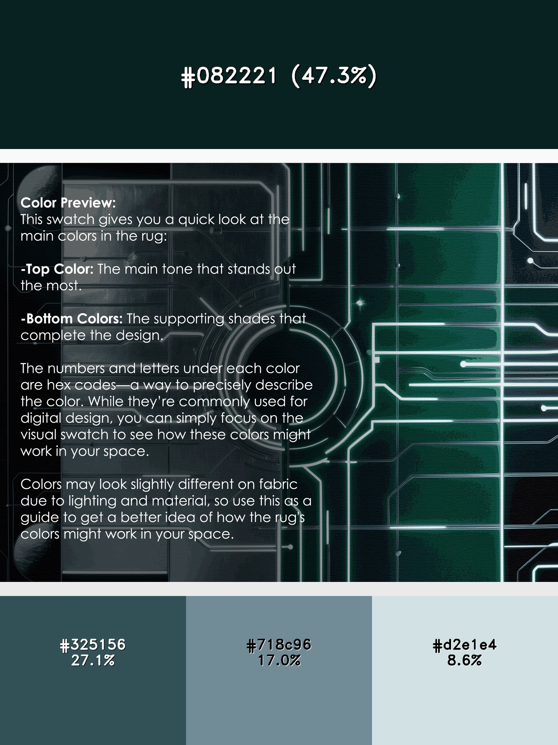 Quasar Drift from the NeoLoom Galaxy collection brings futuristic sophistication to your space with its striking Greenish Blue color (A balanced mix of green and blue, fresh and lively.), a bold tone in the Green color family. Featuring cutting-edge geometric patterns and dynamic lines inspired by space exploration and advanced technology, this rug is finished with SkyBlue serging a sleek edge that enhances its modern aesthetic. Crafted from premium polyester and machine-made in the USA with imported materials, it combines innovation, durability, and style. Perfect for contemporary living rooms, futuristic home offices, or bold creative studios, this design blends avant-garde artistry with forward-thinking design. Available in multiple sizes, the NeoLoom Galaxy collection transforms any space into a statement of sleek modernity and endless possibilities.