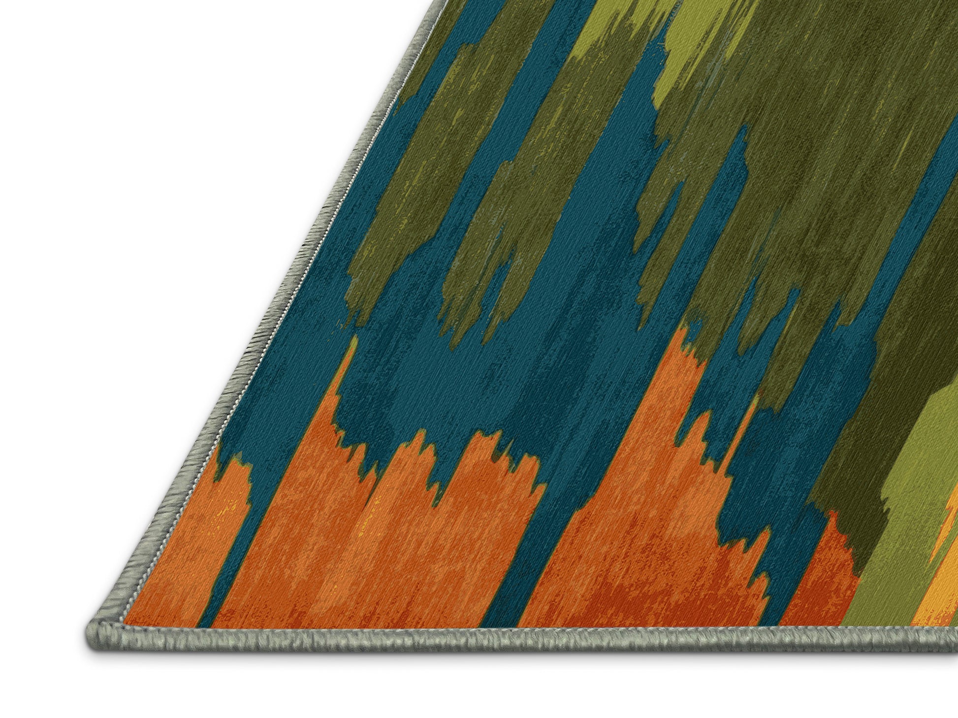 Radiant Bloom from the Vista Flow collection captures the rhythm and beauty of natural landscapes with its striking Hazel Green color (A medium green with earthy undertones, natural and grounding.), a vibrant tone in the Green color family. Featuring an artistic interplay of geometric shapes and organic lines, this rug evokes the fluidity of cascading hills and flowing vistas. Finished with SageGreen serging a durable edge that enhances its contemporary aesthetic this rug is crafted from premium polyester and machine-made in the USA with imported materials. Perfect for modern living rooms, dining spaces, creative home offices, or cozy bedrooms, this design blends artistic flair with versatile functionality. Available in multiple sizes, the Vista Flow collection transforms your home with dynamic patterns and timeless elegance, offering a creative touch to any decor.