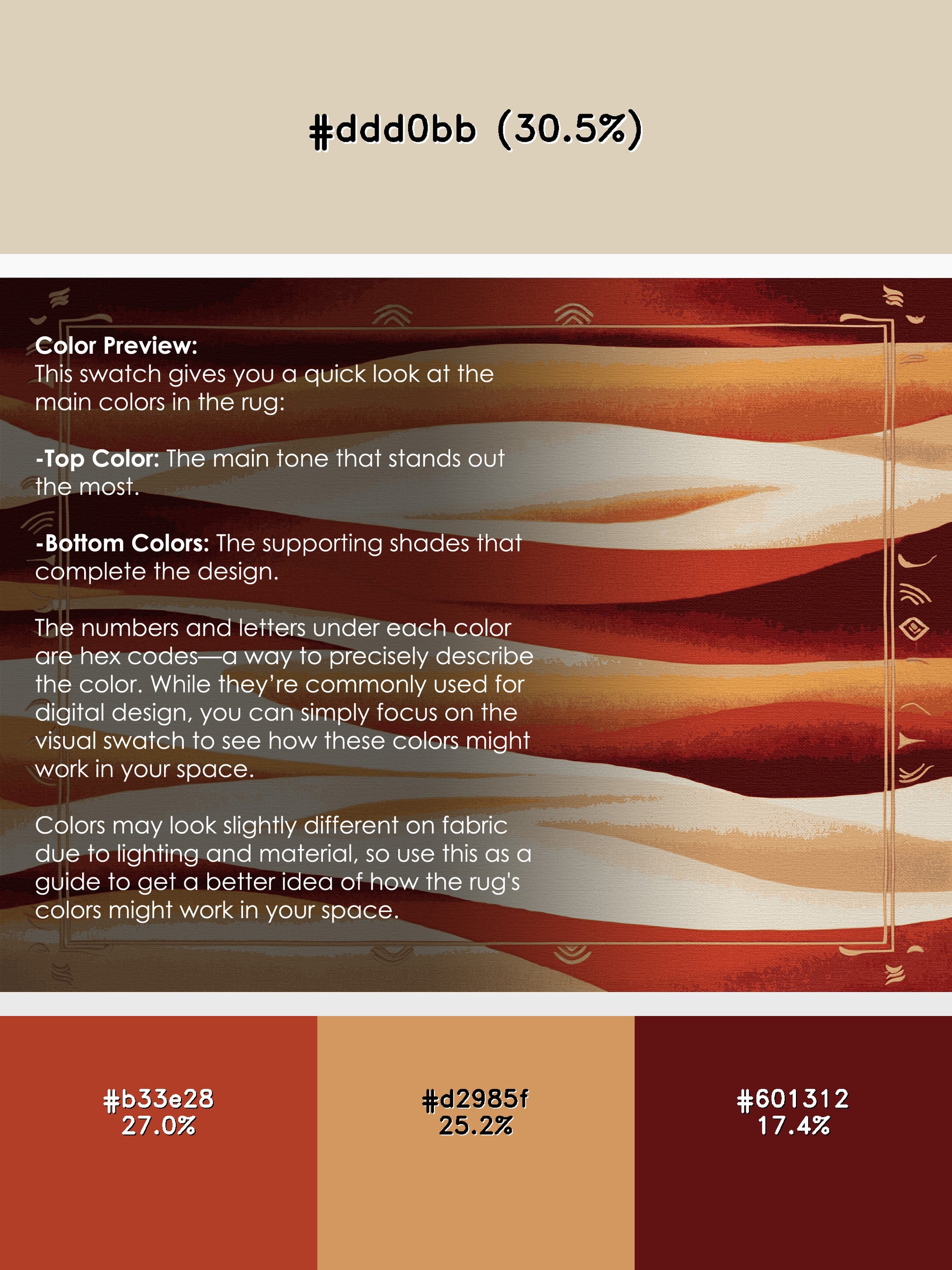 Radiant Sands from the Desert Horizons collection captures the raw beauty of desert landscapes with its stunning Tan (W3C) color (A classic tan with a soft and neutral appearance.), a warm tone in the Beige color family. Featuring organic, flowing patterns inspired by sunlit dunes and expansive horizons, this rug is finished with Beige serging a durable stitched edge that prevents fraying and enhances its refined look. Crafted from premium polyester and machine-made in the USA with imported materials, it combines natural elegance with long-lasting durability. Perfect for cozy living rooms, warm bedrooms, or bohemian-inspired spaces, this design brings texture, warmth, and timeless charm into your home. Available in multiple sizes, the Desert Horizons collection offers a versatile foundation for rustic, modern, or eclectic interiors, delivering a cozy yet sophisticated vibe.
