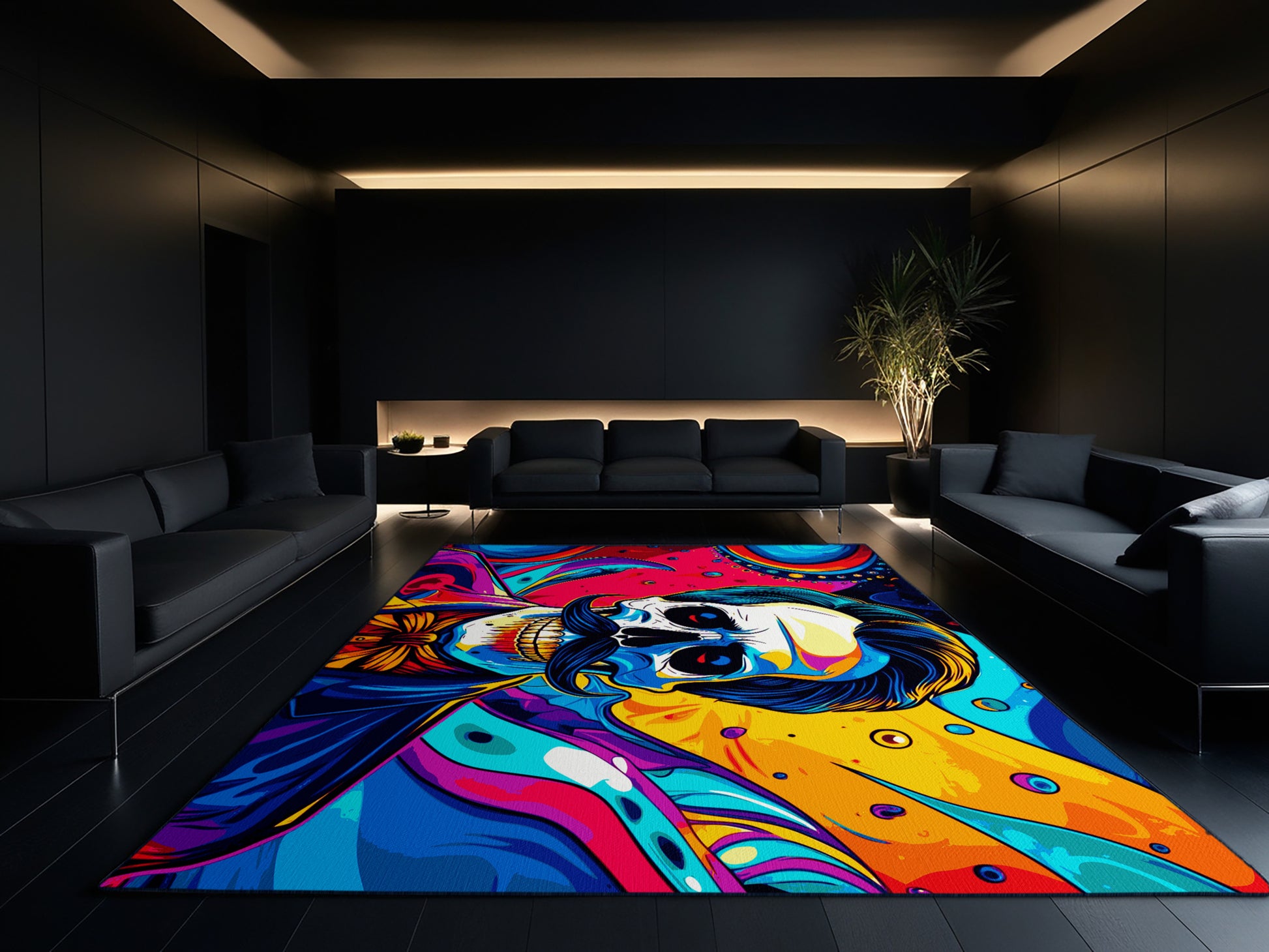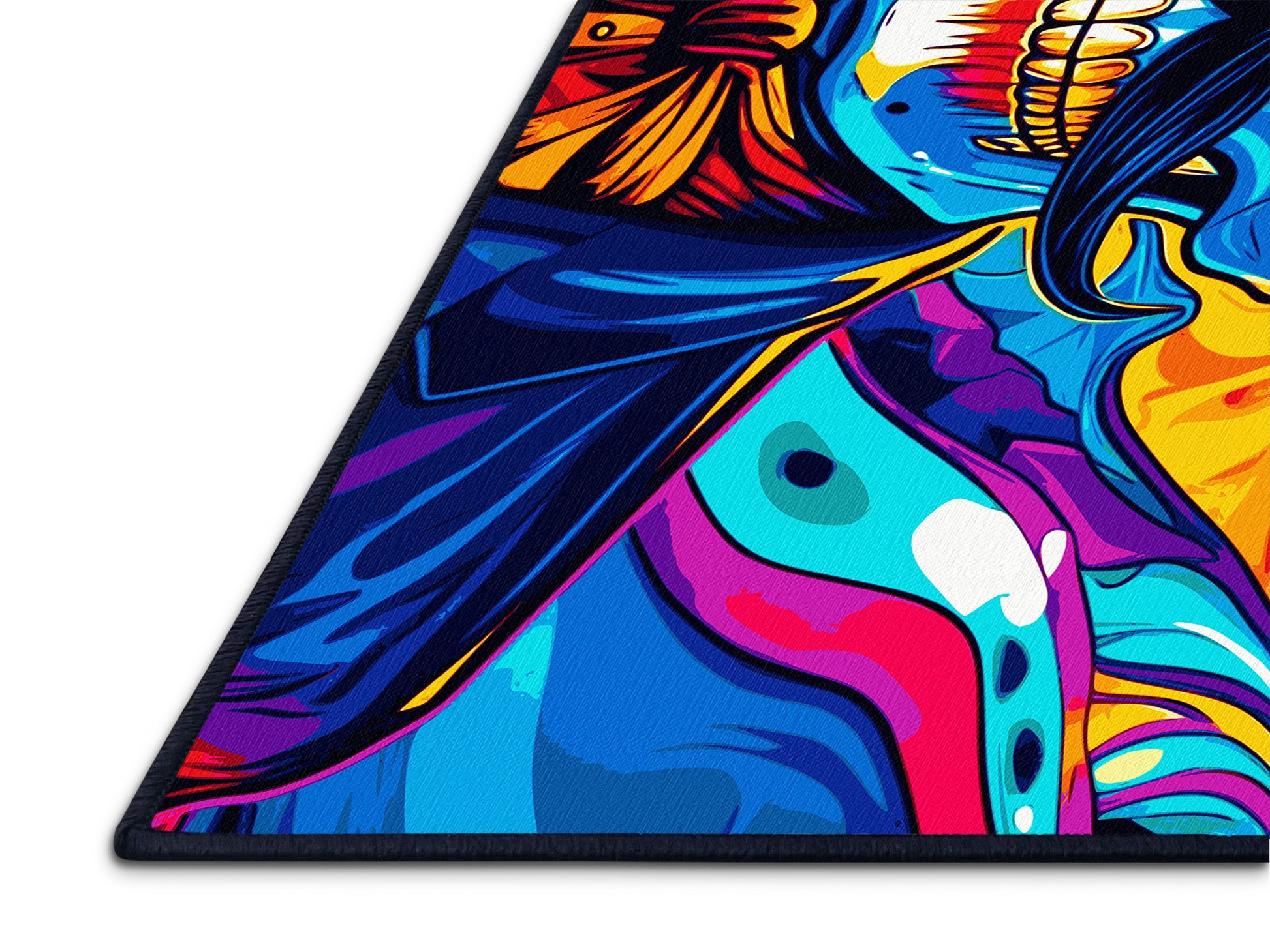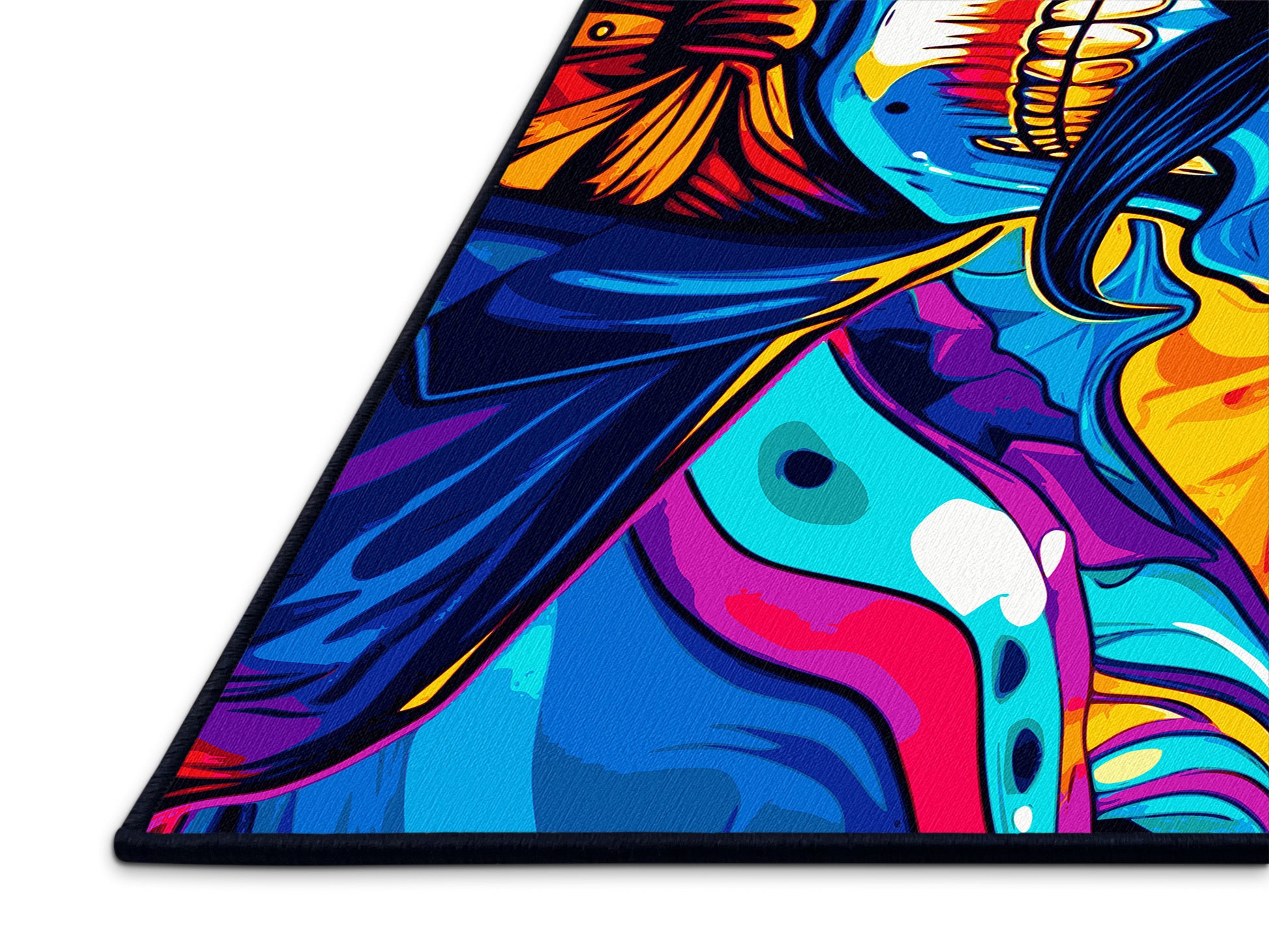 Radiant Streams from the Psychedelia Peaks collection radiates vibrant energy with its bold Blue Whale color (A dark blue with soft purple undertones, deep and elegant.), a striking tone in the Blue color family. Featuring swirling, kaleidoscopic patterns and electrifying neon hues inspired by the psychedelic art movement, this rug brings a sense of dynamic motion and artistic expression to your space. Finished with Navy serging a durable edge that enhances its playful and vibrant aesthetic this rug is crafted from premium polyester and machine-made in the USA with imported materials. Perfect for eclectic living rooms, retro-inspired spaces, or creative studios, this design transforms any room into a lively haven of individuality and boldness. Available in multiple sizes, the Psychedelia Peaks collection adds a dramatic, colorful statement to your decor, turning your home into a canvas of unrestrained creativity.