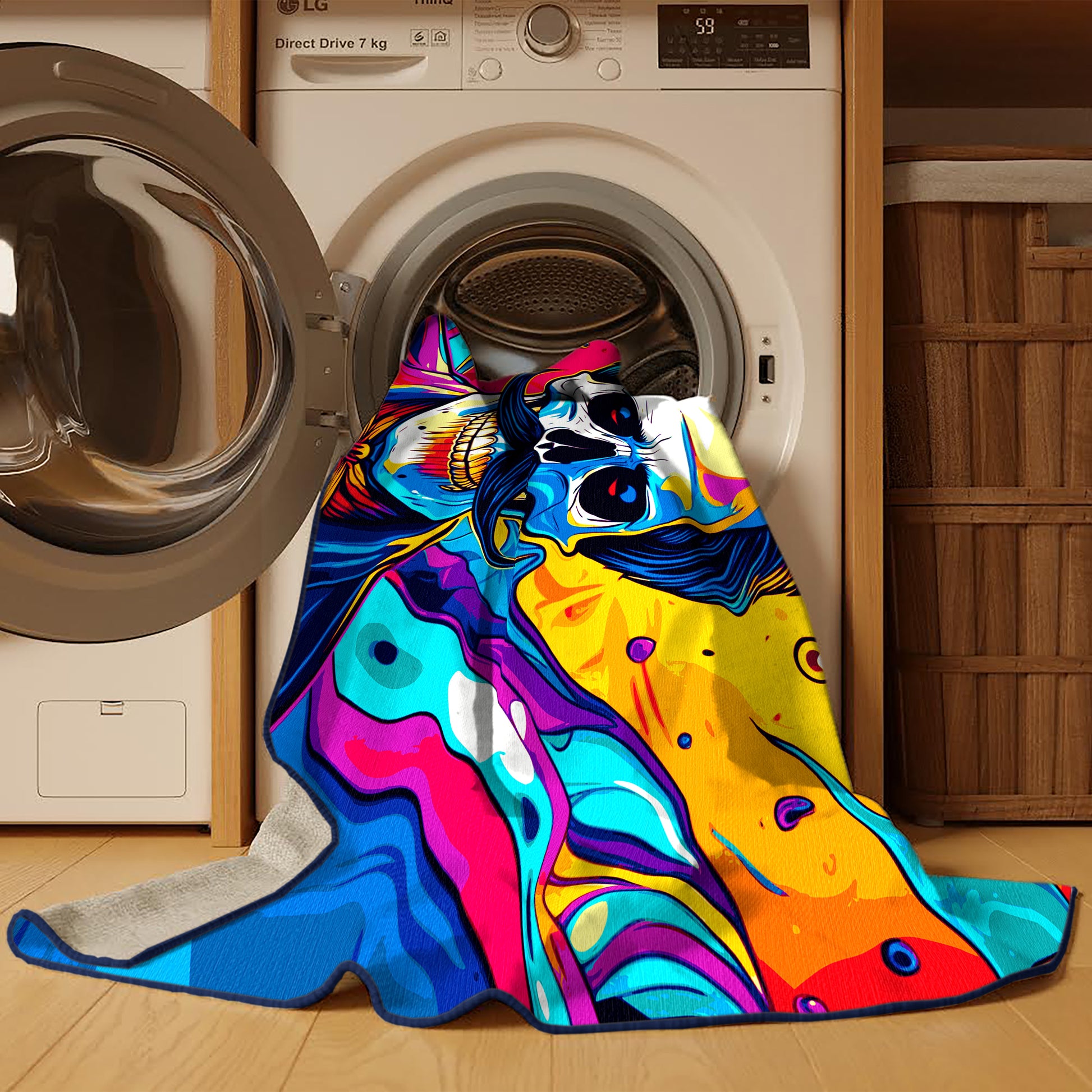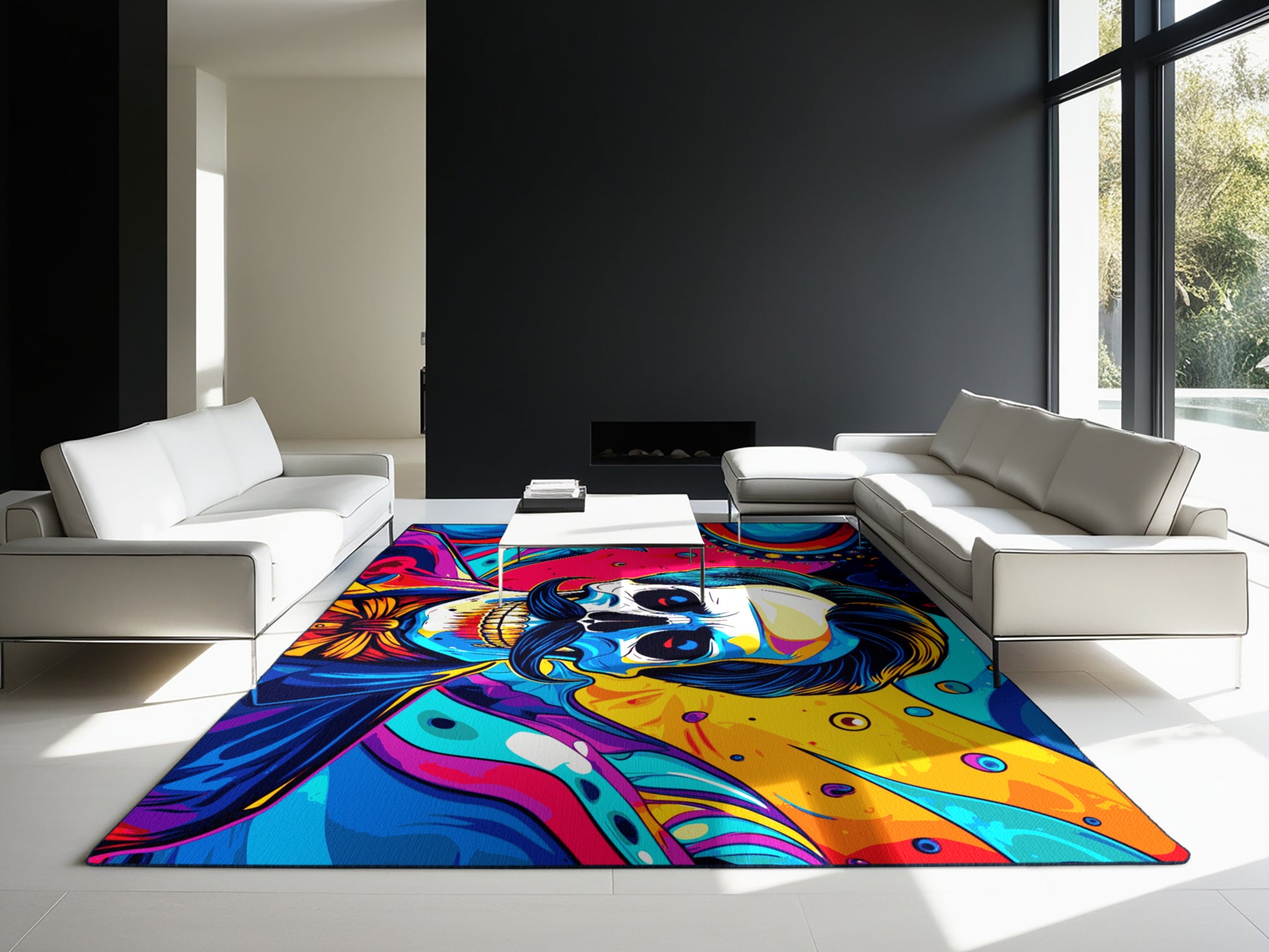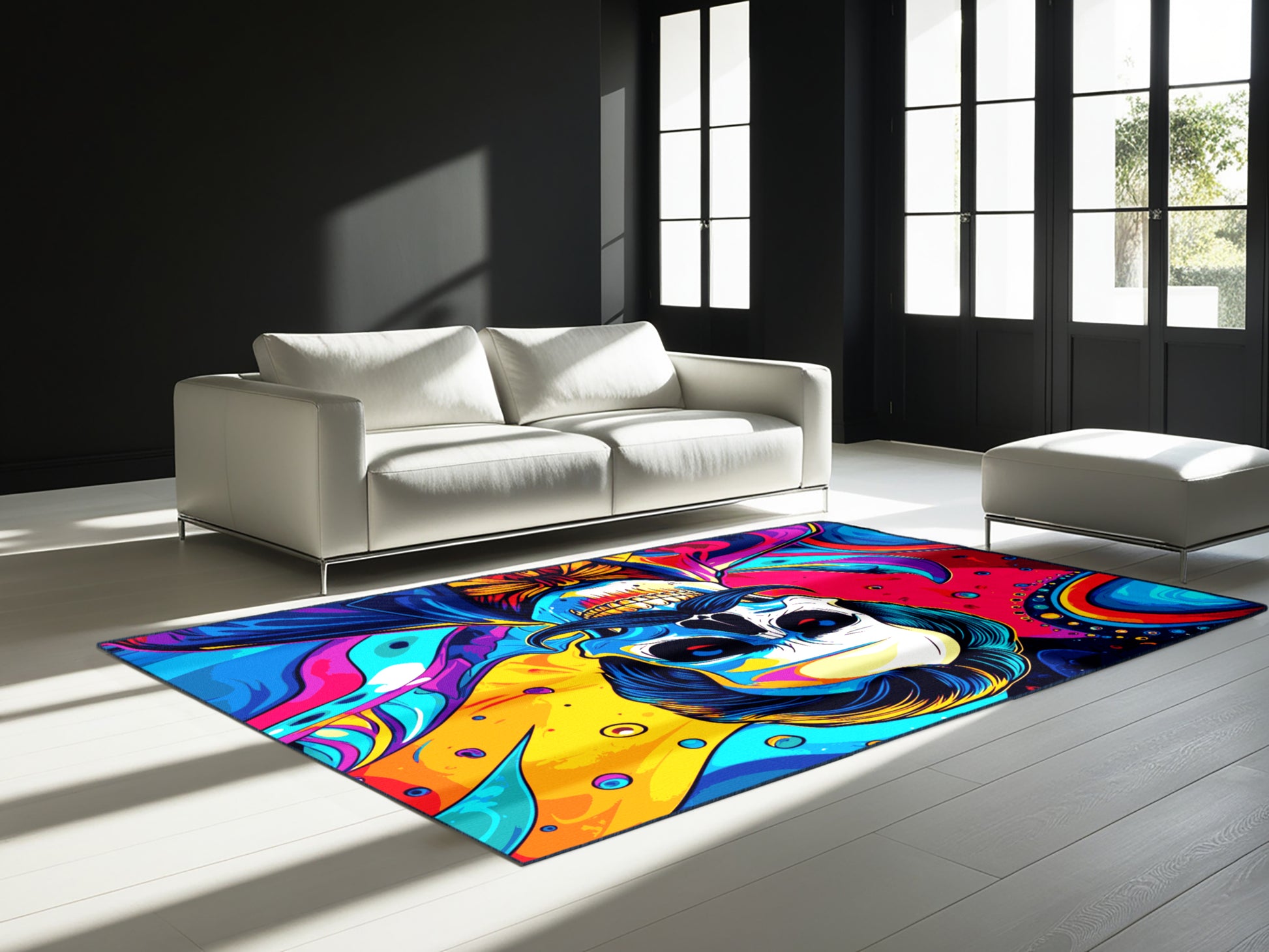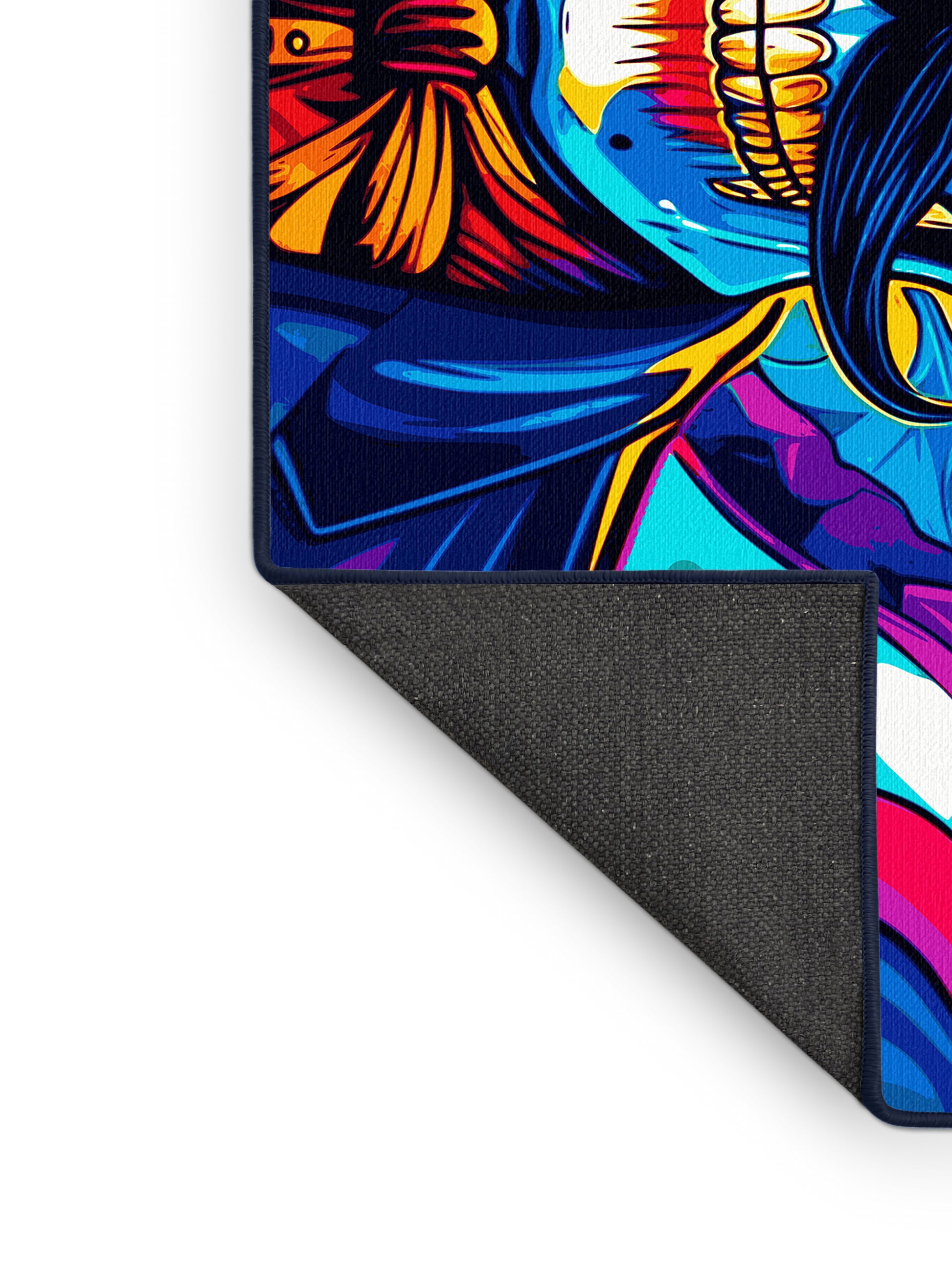 Radiant Streams from the Psychedelia Peaks collection radiates vibrant energy with its bold Blue Whale color (A dark blue with soft purple undertones, deep and elegant.), a striking tone in the Blue color family. Featuring swirling, kaleidoscopic patterns and electrifying neon hues inspired by the psychedelic art movement, this rug brings a sense of dynamic motion and artistic expression to your space. Finished with Navy serging a durable edge that enhances its playful and vibrant aesthetic this rug is crafted from premium polyester and machine-made in the USA with imported materials. Perfect for eclectic living rooms, retro-inspired spaces, or creative studios, this design transforms any room into a lively haven of individuality and boldness. Available in multiple sizes, the Psychedelia Peaks collection adds a dramatic, colorful statement to your decor, turning your home into a canvas of unrestrained creativity.