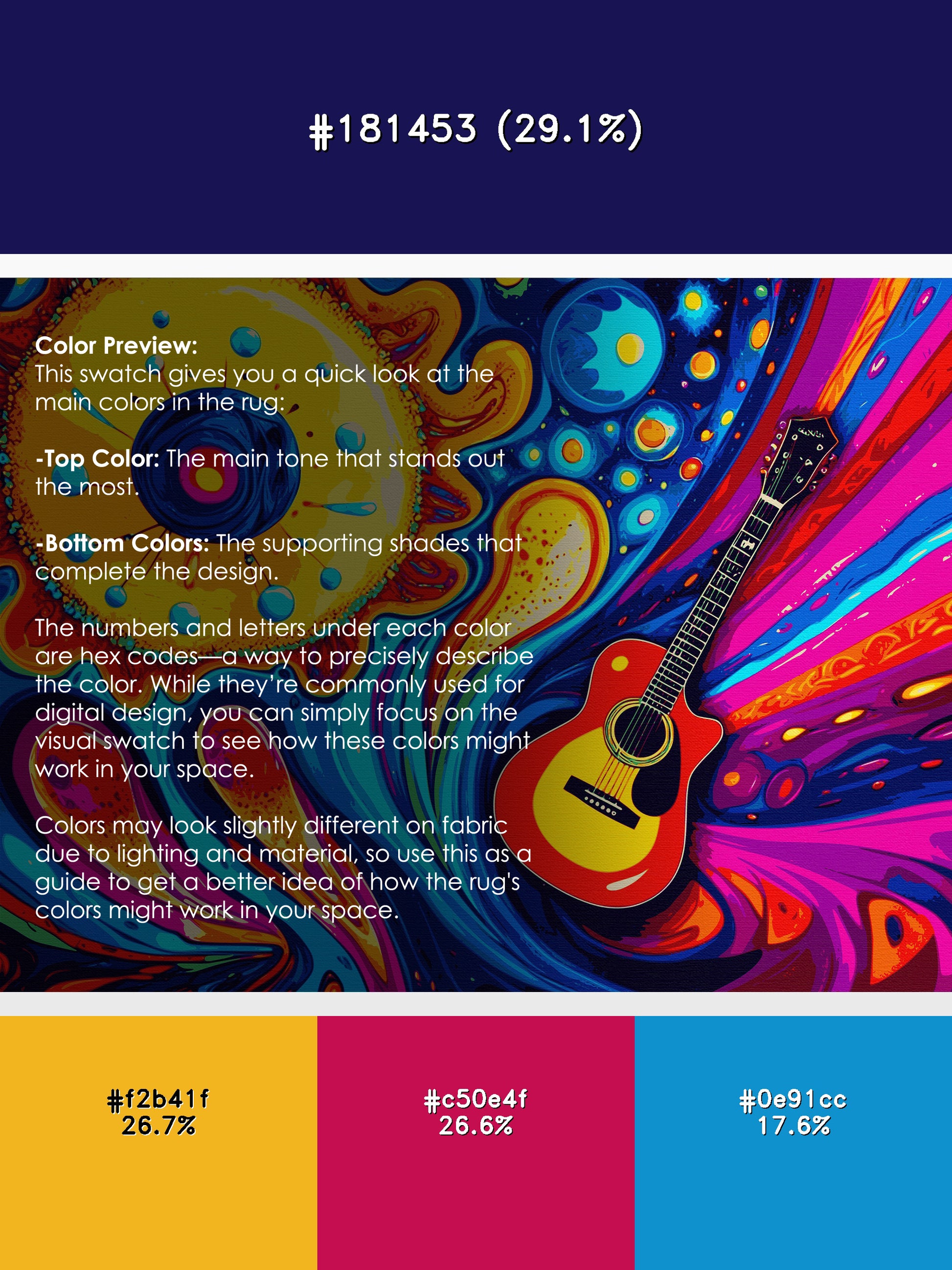 Rainbow Reverberation from the Psychedelia Peaks collection radiates vibrant energy with its bold Purple Haze color (A soft and dreamy purple with hazy undertones, romantic and subtle.), a striking tone in the Purple color family. Featuring swirling, kaleidoscopic patterns and electrifying neon hues inspired by the psychedelic art movement, this rug brings a sense of dynamic motion and artistic expression to your space. Finished with Navy serging a durable edge that enhances its playful and vibrant aesthetic this rug is crafted from premium polyester and machine-made in the USA with imported materials. Perfect for eclectic living rooms, retro-inspired spaces, or creative studios, this design transforms any room into a lively haven of individuality and boldness. Available in multiple sizes, the Psychedelia Peaks collection adds a dramatic, colorful statement to your decor, turning your home into a canvas of unrestrained creativity.