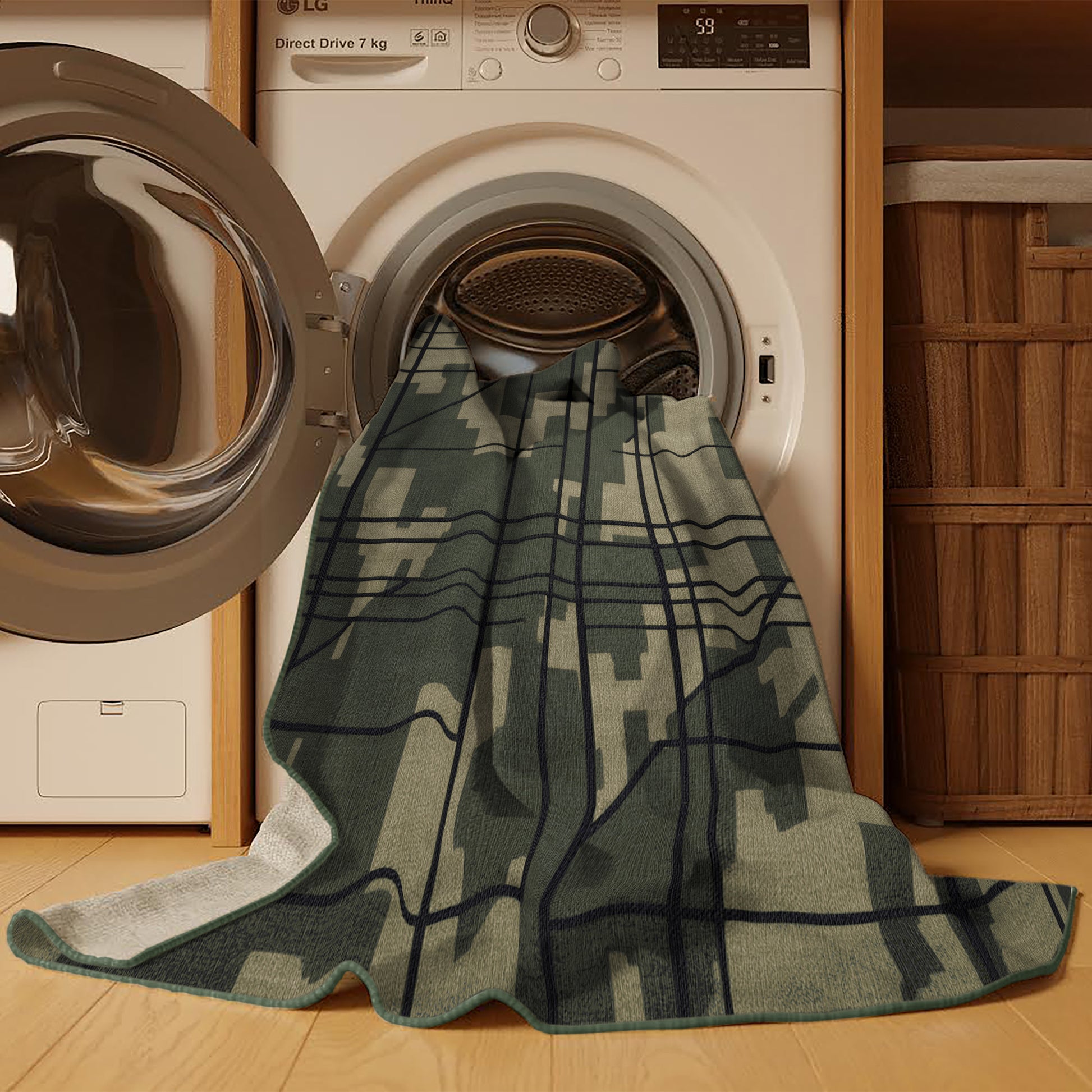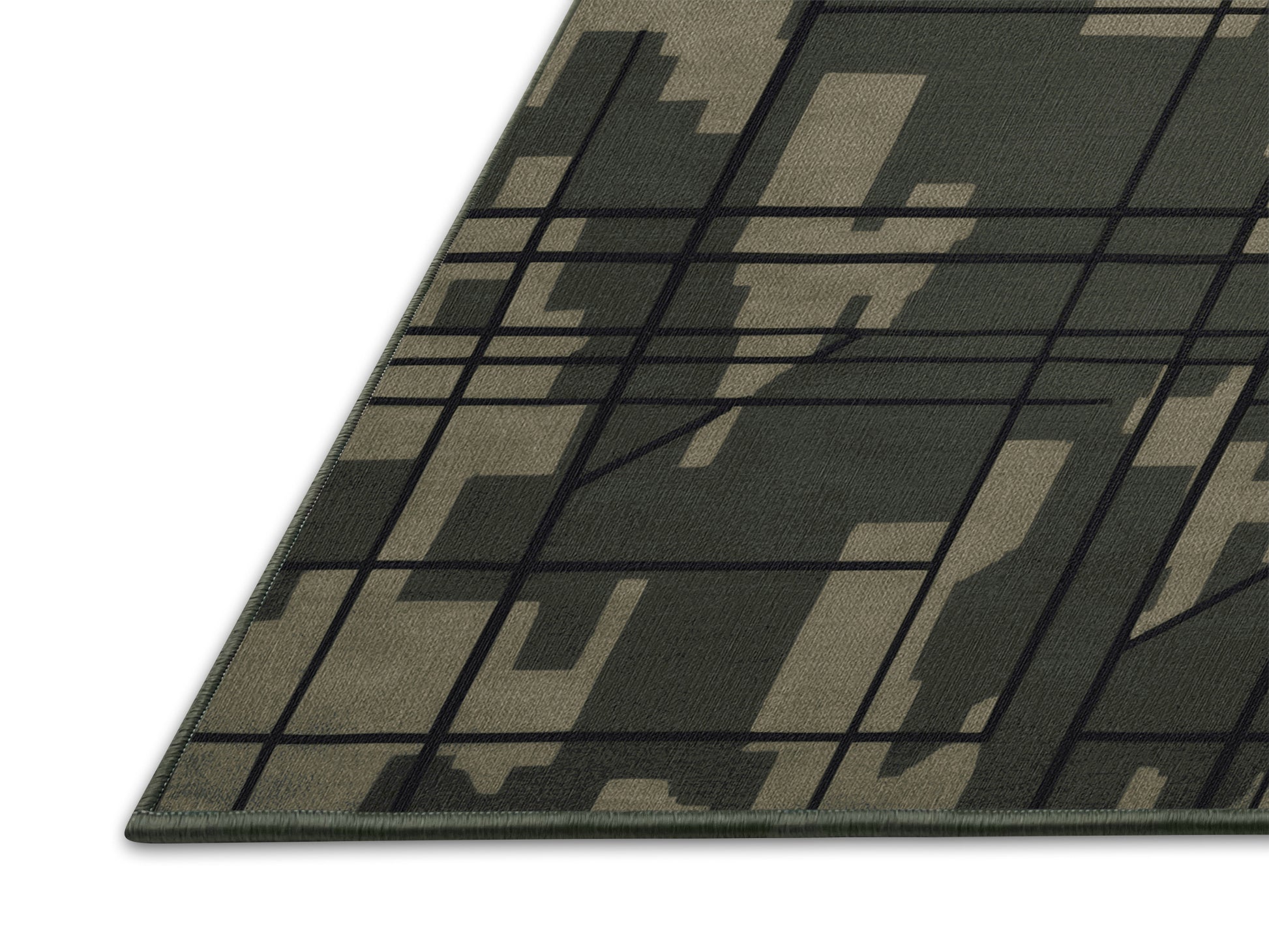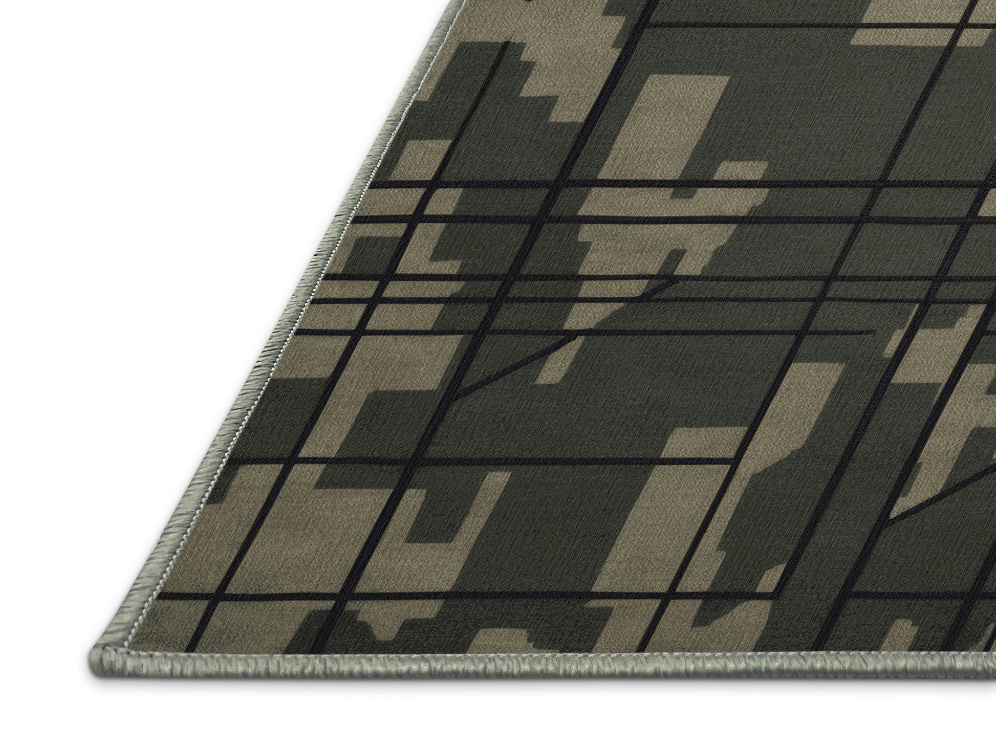 Recon Stripe from the Tactical Terrain collection brings rugged sophistication to your space with its striking Camouflage Green color (A muted and earthy green, perfect for outdoor and natural themes.), a bold tone in the Green color family. Inspired by military camouflage and geometric precision, this rug features angular motifs, sharp black gridlines, and a muted palette that evokes strength and resilience. Finished with SageGreen serging a durable edge that enhances its contemporary aesthetic this rug is crafted from premium polyester and machine-made in the USA with imported materials. Perfect for modern living rooms, industrial home offices, or creative studios, this design blends tactical flair with versatile style. Available in multiple sizes, the Tactical Terrain collection transforms your home with a distinctive edge and bold character, elevating any decor scheme.