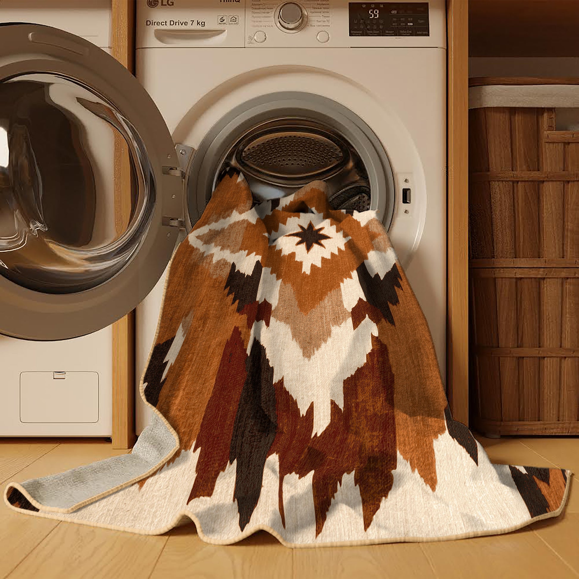 Red Rock Reverie from the Heritage Southwest collection captures the rugged charm of the American Southwest with its bold Sienna (W3C) color (A warm, reddish-brown inspired by natural pigments.), a striking tone in the Brown color family. Inspired by traditional Navajo artistry and desert landscapes, this rug features geometric patterns and tribal-inspired designs that evoke cultural heritage and timeless beauty. Finished with LightBrown serging a durable stitched edge that prevents fraying and enhances its rustic appeal this rug is crafted from premium polyester and machine-made in the USA with imported materials. Perfect for grounding a living room, adding warmth to a bedroom, or enhancing a dining area, this design seamlessly complements rustic, bohemian, or modern interiors. Available in multiple sizes, the Heritage Southwest collection brings the spirit of the desert into your home with its warm tones and artisanal charm.