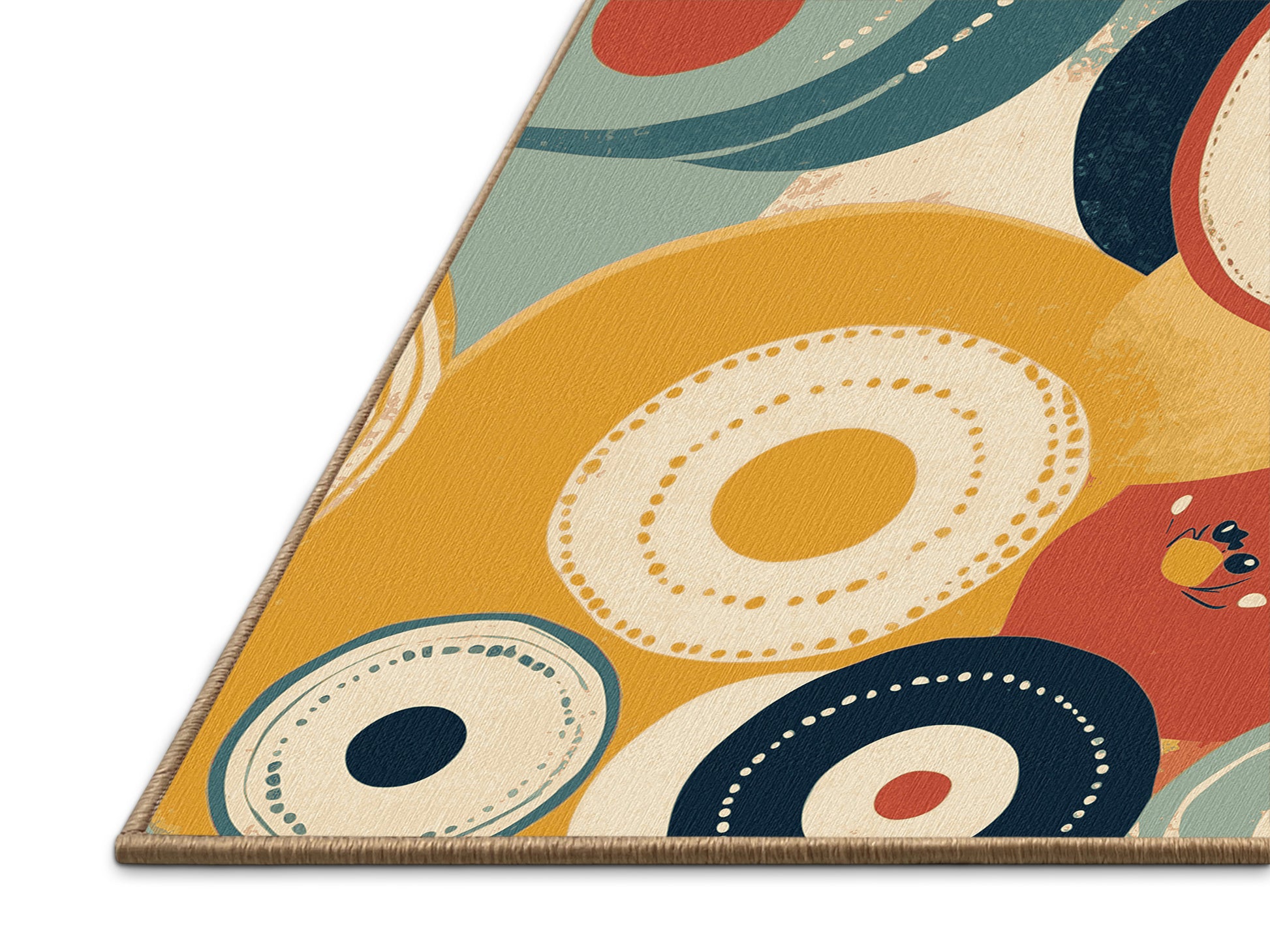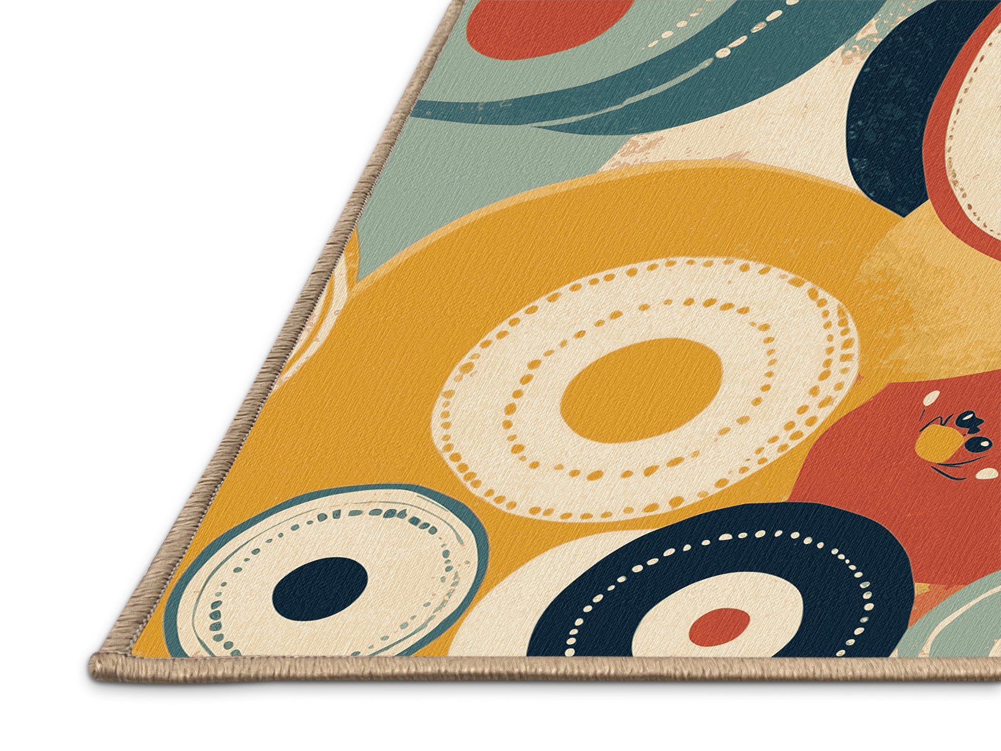 Retro Beam from the Retro Ruckus collection revives the bold, playful charm of mid-century modern design with its captivating Peru (W3C) color (A soft and earthy brown inspired by Peruvian landscapes.), a vibrant tone in the Brown color family. Featuring a dynamic mix of geometric patterns, freeform swirls, and abstract shapes, this rug brings a nostalgic yet modern aesthetic to your space. Finished with LightBrown serging a durable edge that enhances its retro flair this rug is crafted from premium polyester and machine-made in the USA with imported materials. Perfect for eclectic living rooms, creative studios, or retro-inspired dining areas, this design adds warmth, personality, and energy to your decor. Available in multiple sizes, the Retro Ruckus collection seamlessly blends vintage aesthetics with contemporary functionality, transforming your home with its unique style and durable comfort.