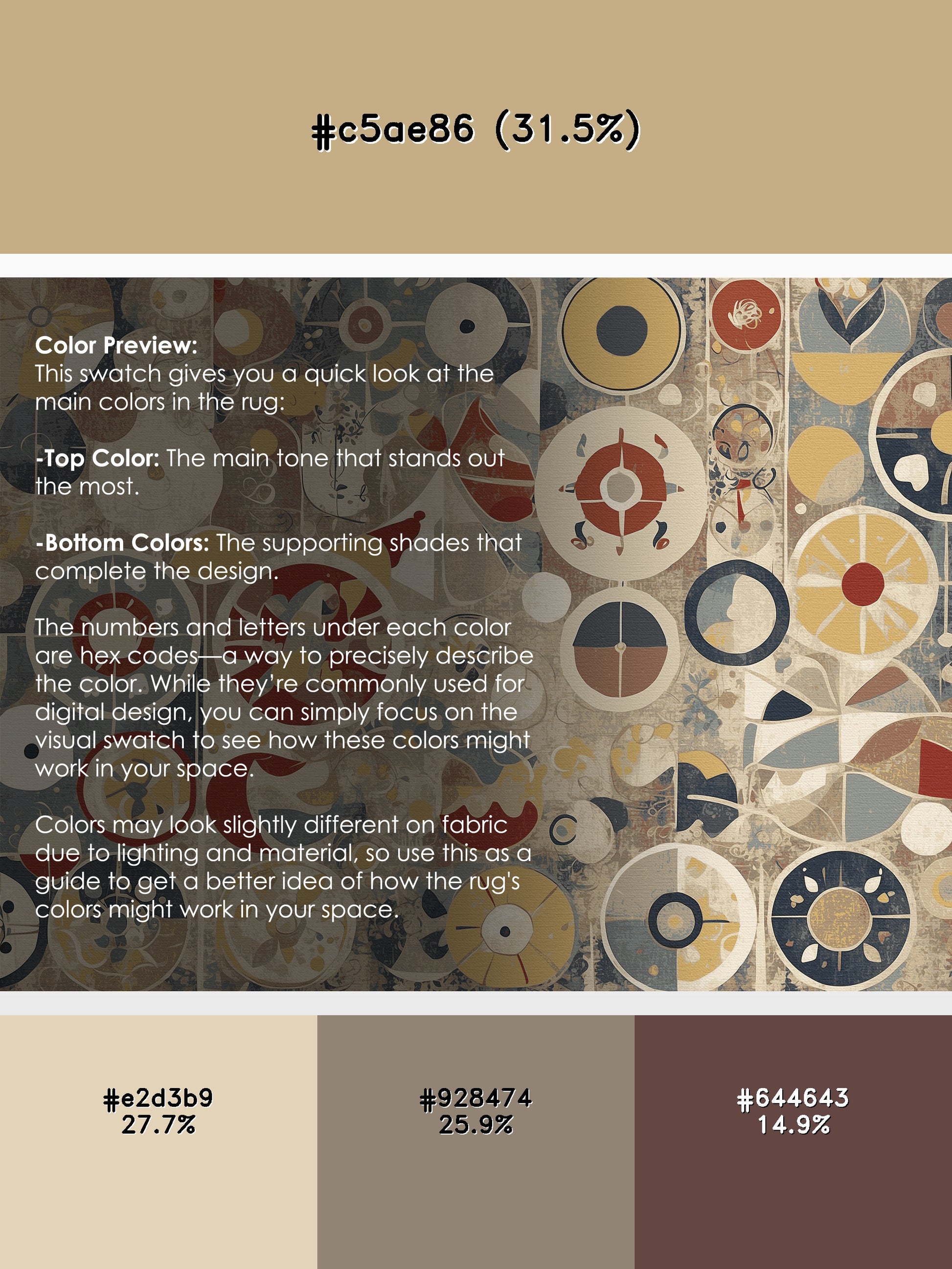 Retro Flex from the Retro Ruckus collection revives the bold, playful charm of mid-century modern design with its captivating Wheat (W3C) color (A soft and warm beige inspired by wheat fields.), a vibrant tone in the Beige color family. Featuring a dynamic mix of geometric patterns, freeform swirls, and abstract shapes, this rug brings a nostalgic yet modern aesthetic to your space. Finished with Beige serging a durable edge that enhances its retro flair this rug is crafted from premium polyester and machine-made in the USA with imported materials. Perfect for eclectic living rooms, creative studios, or retro-inspired dining areas, this design adds warmth, personality, and energy to your decor. Available in multiple sizes, the Retro Ruckus collection seamlessly blends vintage aesthetics with contemporary functionality, transforming your home with its unique style and durable comfort.