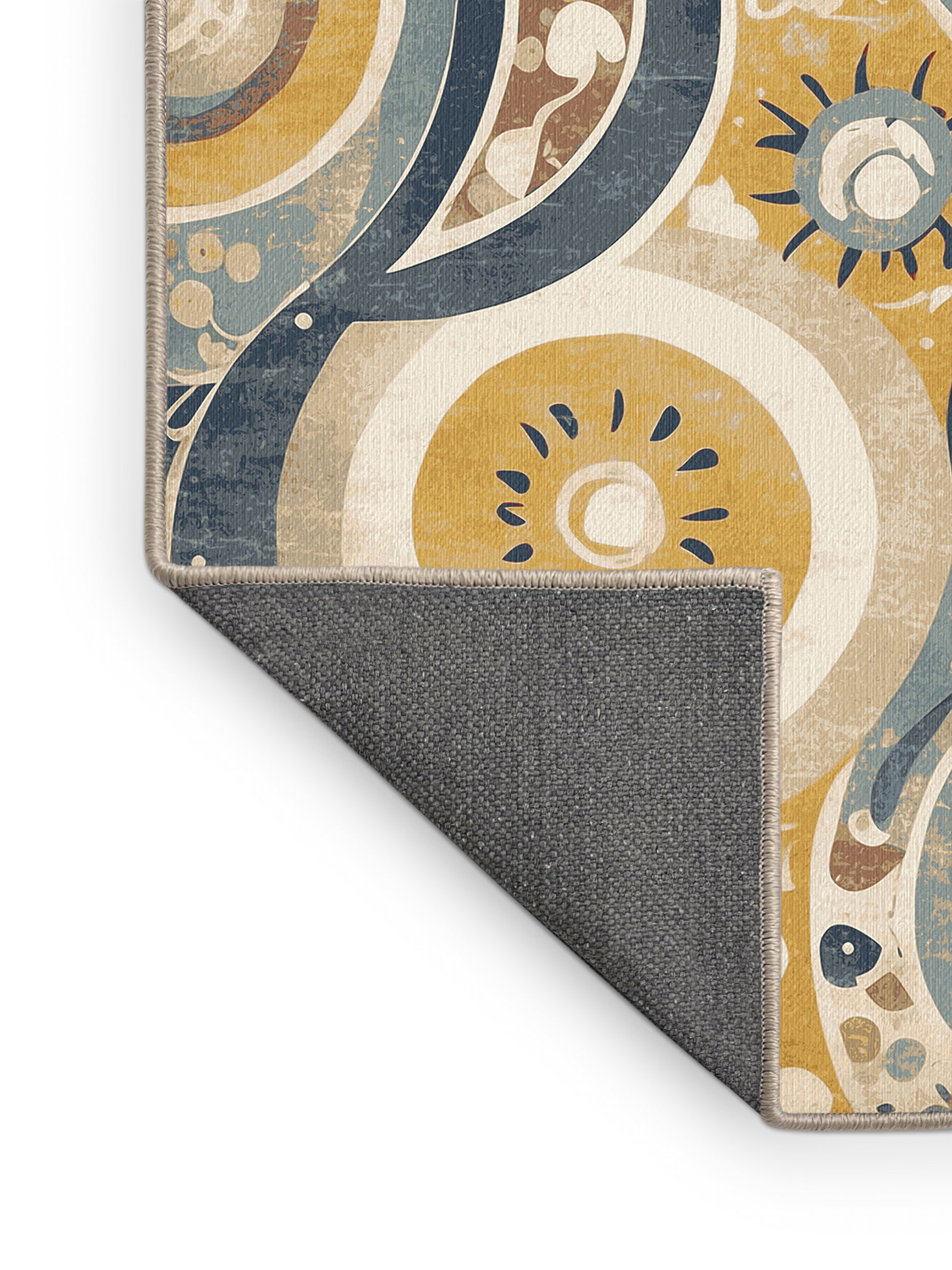 Retro Wiggle from the Retro Ruckus collection revives the bold, playful charm of mid-century modern design with its captivating Light French Beige color (A light beige with a subtle and sophisticated tone.), a vibrant tone in the Beige color family. Featuring a dynamic mix of geometric patterns, freeform swirls, and abstract shapes, this rug brings a nostalgic yet modern aesthetic to your space. Finished with Beige serging a durable edge that enhances its retro flair this rug is crafted from premium polyester and machine-made in the USA with imported materials. Perfect for eclectic living rooms, creative studios, or retro-inspired dining areas, this design adds warmth, personality, and energy to your decor. Available in multiple sizes, the Retro Ruckus collection seamlessly blends vintage aesthetics with contemporary functionality, transforming your home with its unique style and durable comfort.