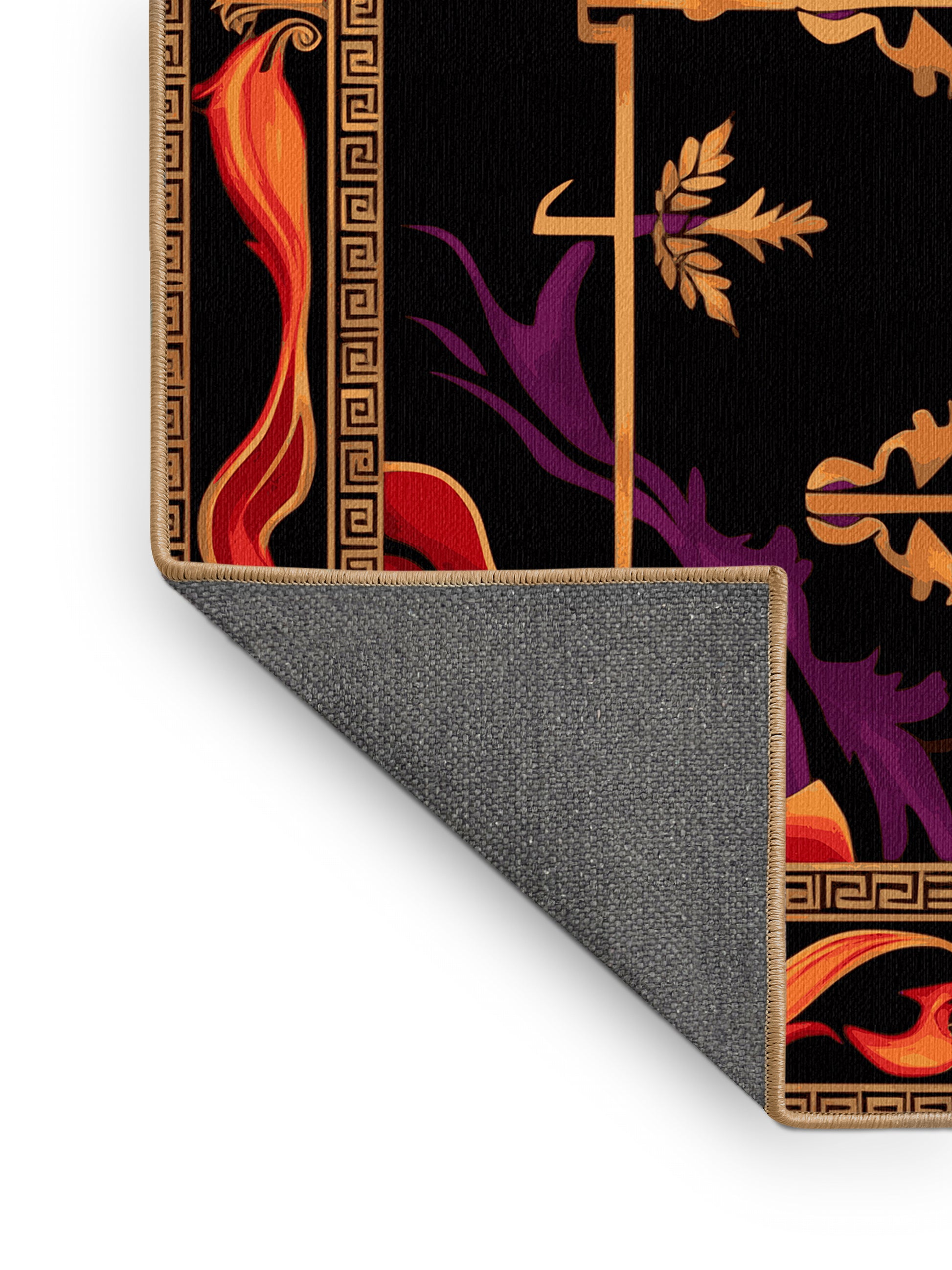 Royal Sonata from the Gilded Mythos collection embodies the drama and opulence of ancient mythology with its captivating Bakers Brown color (A rich brown with warm, toasted tones, like baked goods.), a bold tone in the Brown color family. Featuring intricate patterns reminiscent of mythological symbols and lavish gilded accents, this rug is finished with LightBrown serging a durable stitched edge that prevents fraying and enhances its regal aesthetic. Crafted from premium polyester and machine-made in the USA with imported materials, it offers both timeless elegance and lasting durability. Perfect for grand living spaces, formal dining rooms, or statement entryways, this design weaves together sophistication and mystique to create a bold focal point. Available in multiple sizes, the Gilded Mythos collection transforms any room into a space of mythical grandeur and artistic allure.