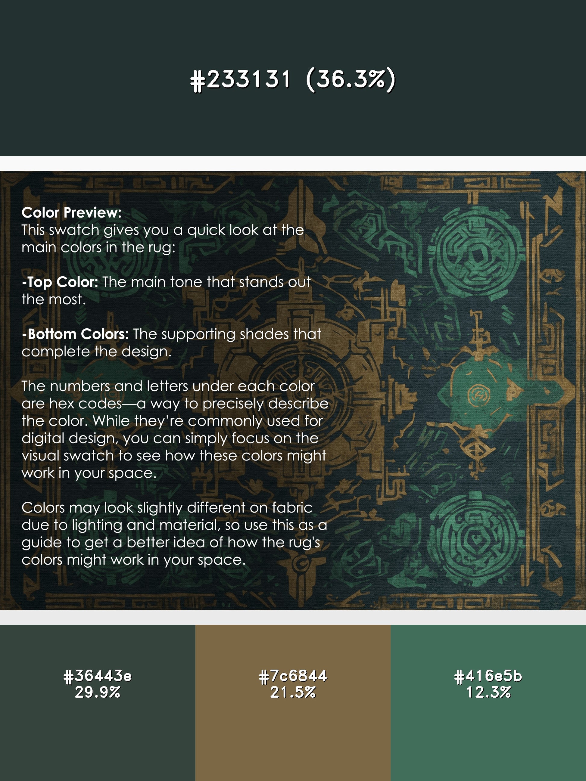 Ruins of Valor from the Hero's Path collection takes you on an epic journey of adventure and timeless wonder with its captivating Blue Moss Green color (A muted green with a subtle blue tone, natural and earthy.), a bold tone in the Green color family. Inspired by mythical quests and heroic landscapes, this rug features intricate symbols and dynamic designs that evoke a sense of exploration and creativity. Finished with Gray serging a durable stitched edge that prevents fraying and enhances its artistic appeal this rug is crafted from premium polyester and machine-made in the USA with imported materials. Perfect for creating a bold statement in living rooms, inspiring creativity in home offices, or elevating entertainment areas, this design combines fantasy, elegance, and practicality. Available in multiple sizes, the Hero's Path collection transforms your space into a realm of imagination and discovery with its adventurous spirit and artistic flair.