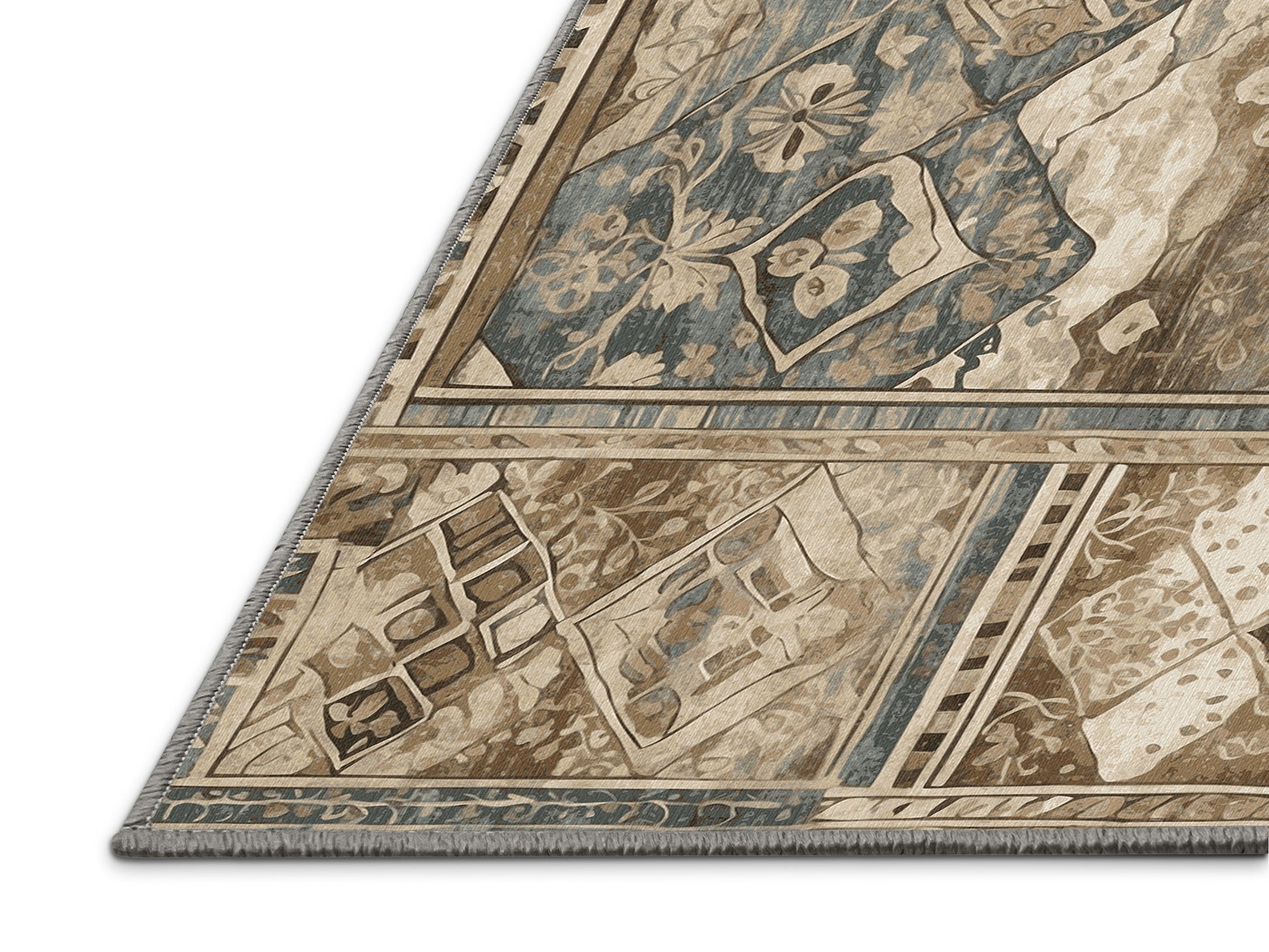 Rustic Charm from the Heritage Mosaic collection blends traditional artistry with contemporary elegance in its captivating Sandstone color (A soft and warm beige inspired by natural sandstone.), a timeless shade in the Beige color family. Featuring intricate geometric patterns, ornate floral motifs, and medallion accents, this rug is finished with Gray serging a durable stitched edge that prevents fraying and enhances its refined look. Crafted from premium polyester and machine-made in the USA with imported materials, it combines rich texture and enduring style. Perfect for living rooms, dining areas, and cozy study spaces, this design brings warmth and character to your home while seamlessly complementing classic, transitional, or modern interiors. Available in multiple sizes, the Heritage Mosaic collection transforms any space into an inviting setting filled with cultural charm and timeless sophistication.