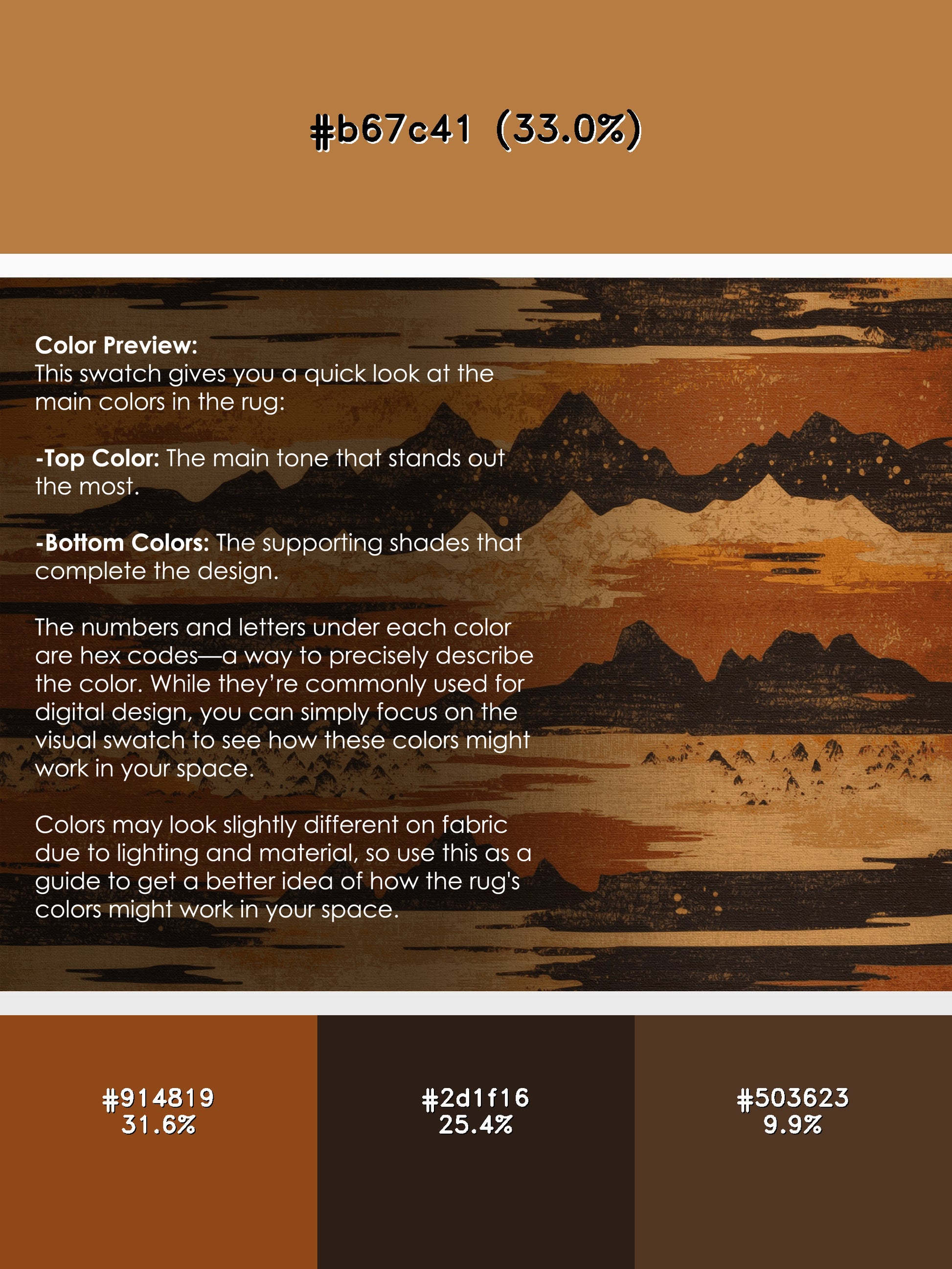 Sagebrush Shadows from the Desert Horizons collection captures the raw beauty of desert landscapes with its stunning Dark Gold color (A deep gold with warm and rich undertones.), a warm tone in the Gold color family. Featuring organic, flowing patterns inspired by sunlit dunes and expansive horizons, this rug is finished with LightBrown serging a durable stitched edge that prevents fraying and enhances its refined look. Crafted from premium polyester and machine-made in the USA with imported materials, it combines natural elegance with long-lasting durability. Perfect for cozy living rooms, warm bedrooms, or bohemian-inspired spaces, this design brings texture, warmth, and timeless charm into your home. Available in multiple sizes, the Desert Horizons collection offers a versatile foundation for rustic, modern, or eclectic interiors, delivering a cozy yet sophisticated vibe.