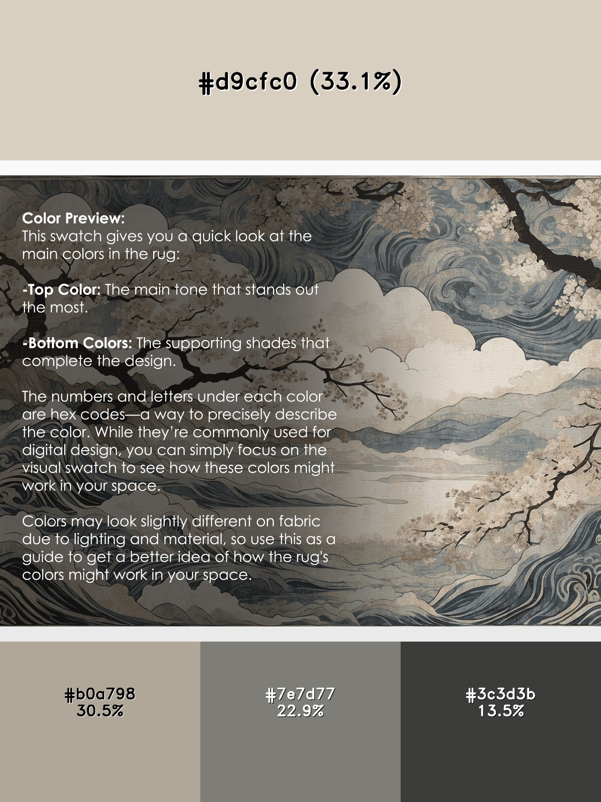 Sakura Drift from the Sakura Waves collection captures the timeless elegance of Japanese artistry with its captivating Dark White color (A muted white with soft grayish tones, calm and neutral.), a refined tone in the White color family. Featuring delicate cherry blossom motifs and flowing wave-inspired patterns, this rug evokes the serene beauty of nature and the transient charm of sakura in bloom. Finished with White serging a durable edge that enhances its artistic appeal this rug is crafted from premium polyester and machine-made in the USA with imported materials. Perfect for minimalist living rooms, tranquil bedrooms, or zen-inspired spaces, this design blends cultural sophistication with modern functionality. Available in multiple sizes, the Sakura Waves collection transforms your home into a serene retreat, balancing artistic expression and versatile style seamlessly.