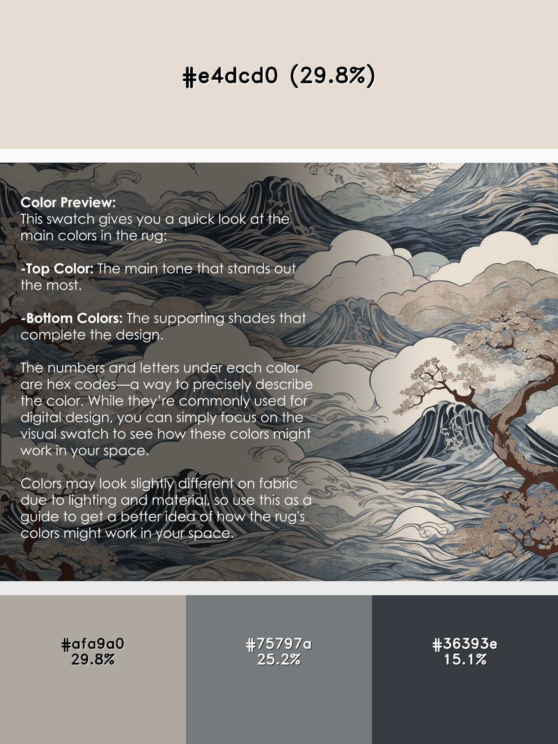 Sakura Sunset from the Sakura Waves collection captures the timeless elegance of Japanese artistry with its captivating Battleship Gray color (A strong, industrial gray with cool undertones, reliable and sturdy.), a refined tone in the Gray color family. Featuring delicate cherry blossom motifs and flowing wave-inspired patterns, this rug evokes the serene beauty of nature and the transient charm of sakura in bloom. Finished with Gray serging a durable edge that enhances its artistic appeal this rug is crafted from premium polyester and machine-made in the USA with imported materials. Perfect for minimalist living rooms, tranquil bedrooms, or zen-inspired spaces, this design blends cultural sophistication with modern functionality. Available in multiple sizes, the Sakura Waves collection transforms your home into a serene retreat, balancing artistic expression and versatile style seamlessly.