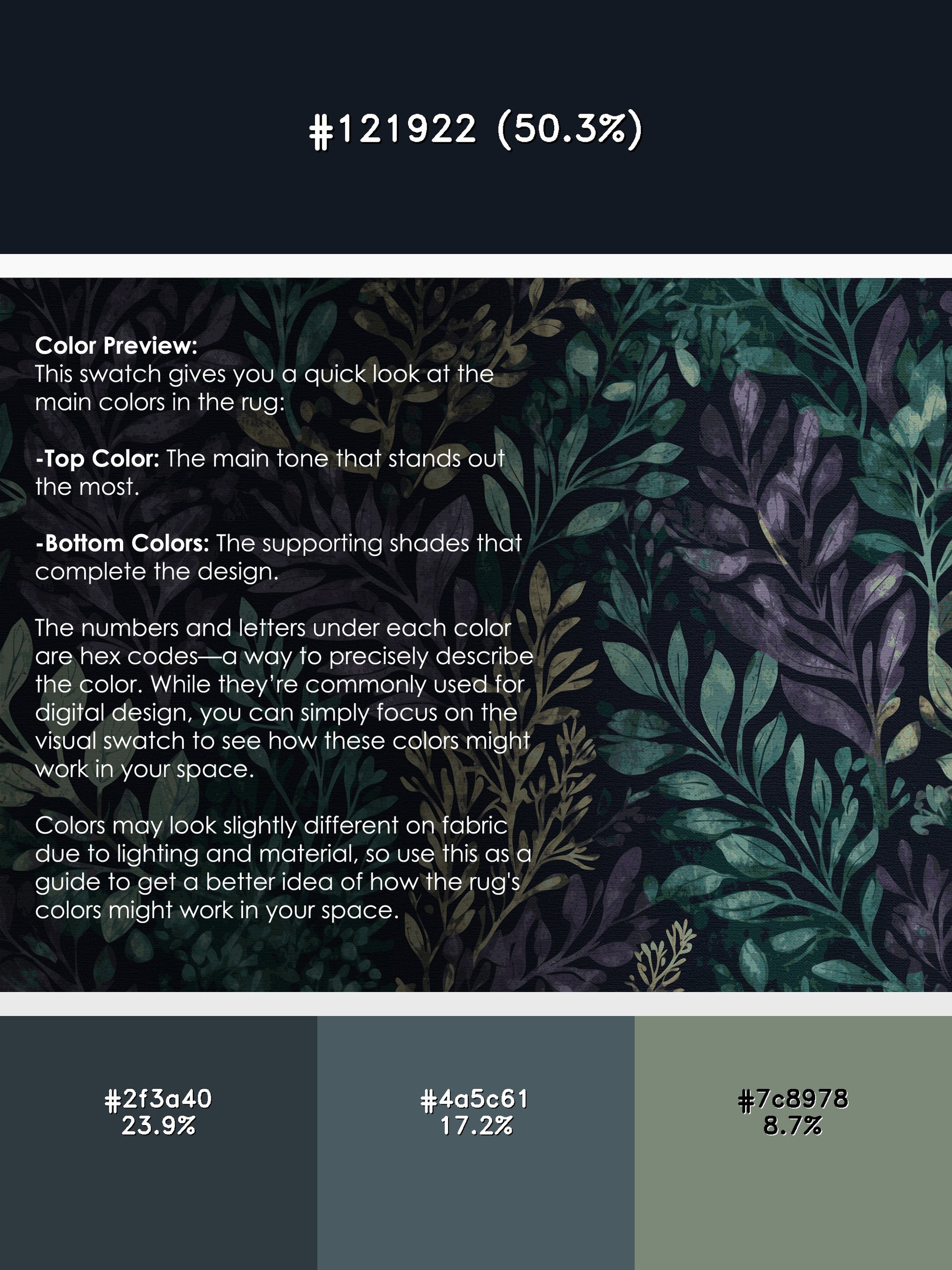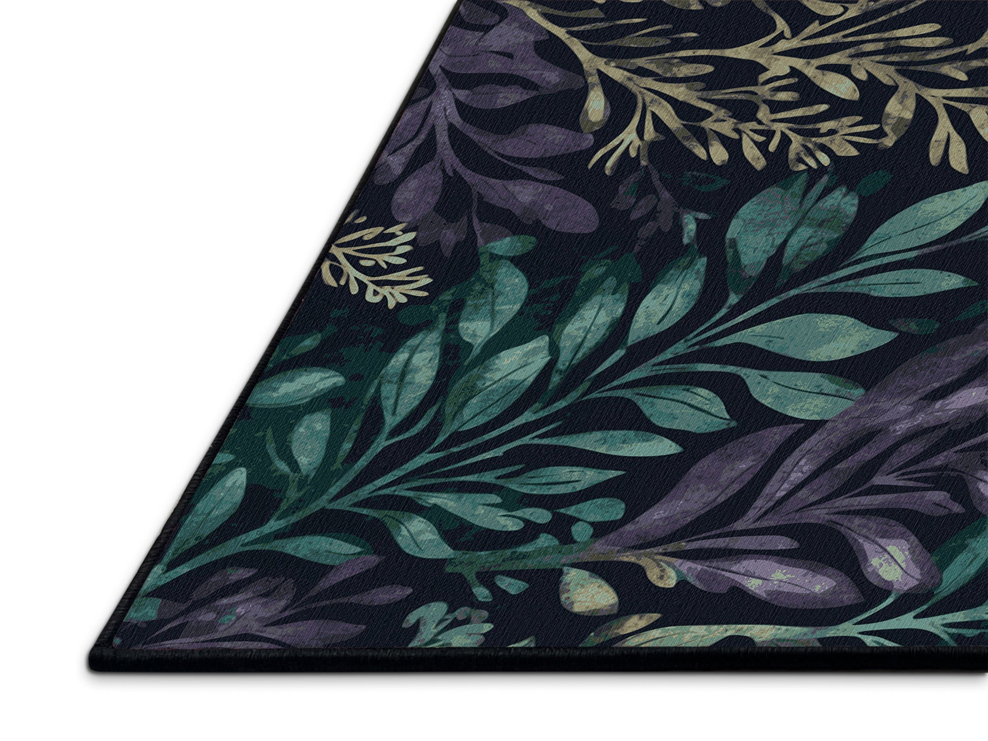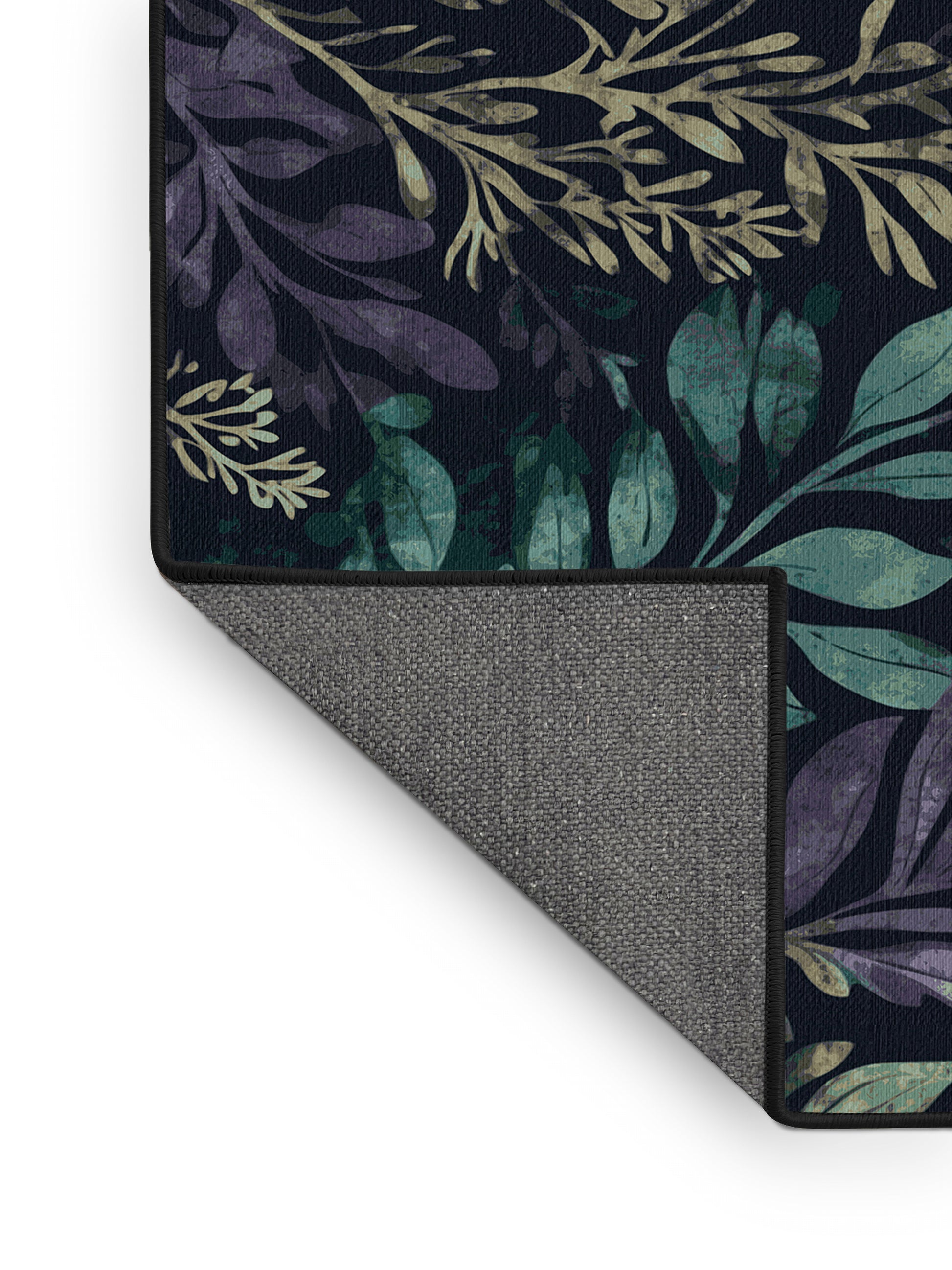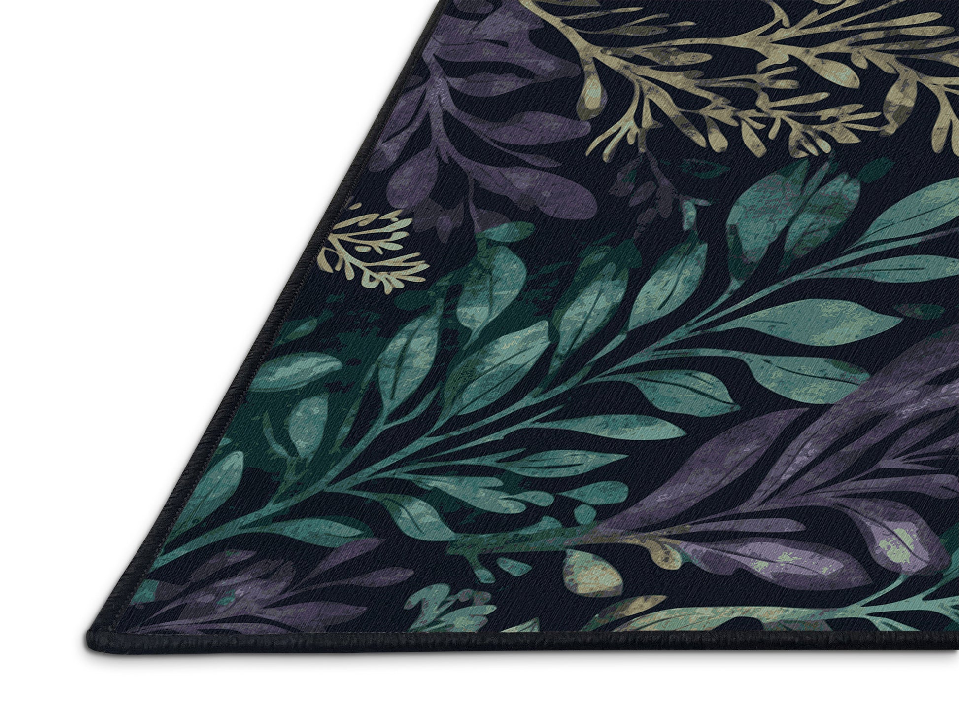 Serene Bloom from the Mystic Grove collection captures the tranquil essence of lush forest canopies with its stunning Dark Slate color (A dark slate blue with a cool and moody aesthetic.), a calming tone in the Blue color family. Inspired by flourishing greenery and woodland shadows, this rug features intricate leaf patterns, organic shapes, and layered designs that evoke depth and elegance. Finished with Black serging a durable edge that enhances its artisanal look this rug is crafted from premium polyester and machine-made in the USA with imported materials. Perfect for creating a serene retreat in living rooms, calming bedrooms, or artistic reading corners, this design brings a harmonious blend of nature and refinement to your space. Available in multiple sizes, the Mystic Grove collection transforms your home into a tranquil haven, offering timeless beauty and versatile style for modern or nature-inspired interiors.