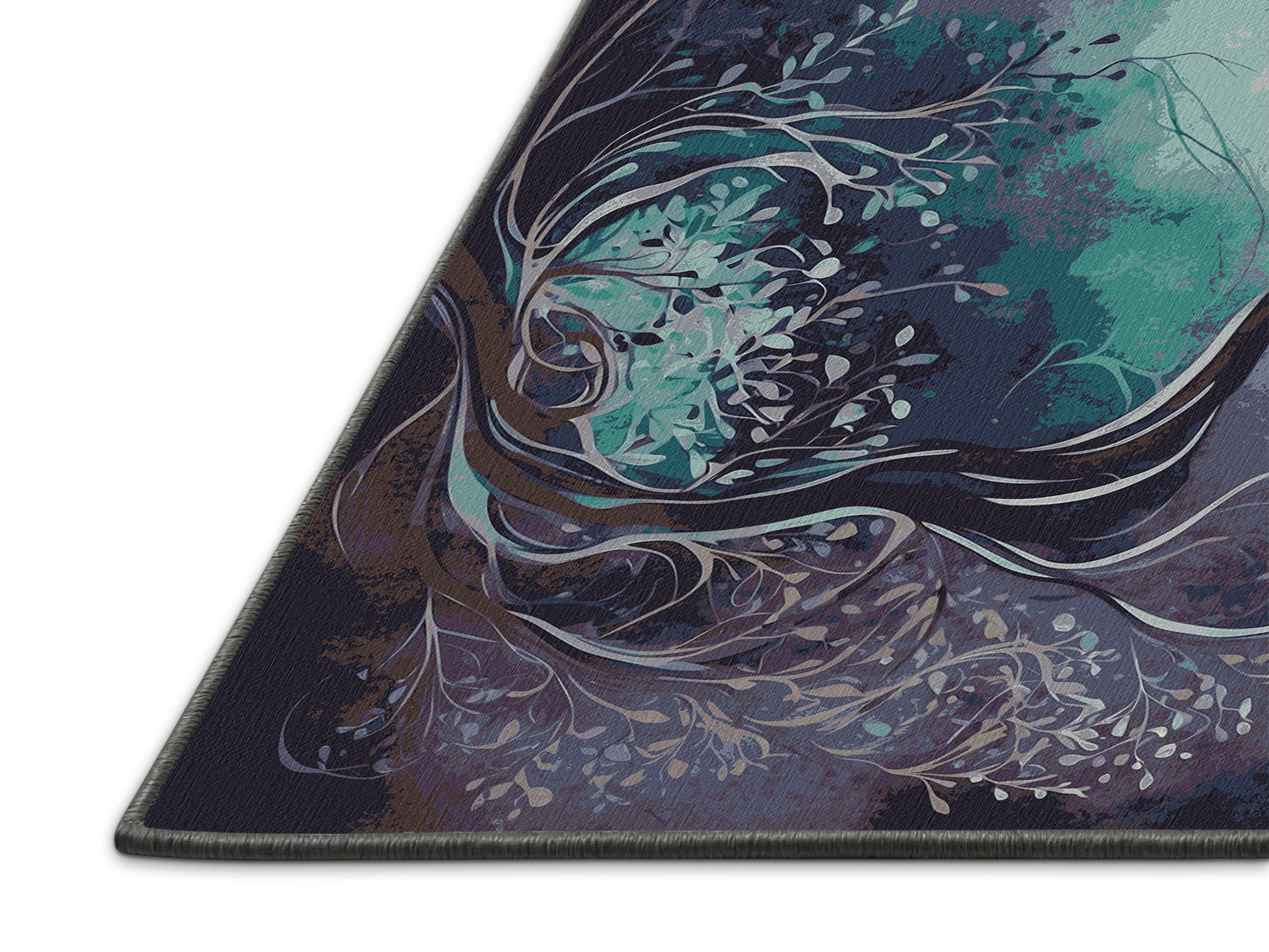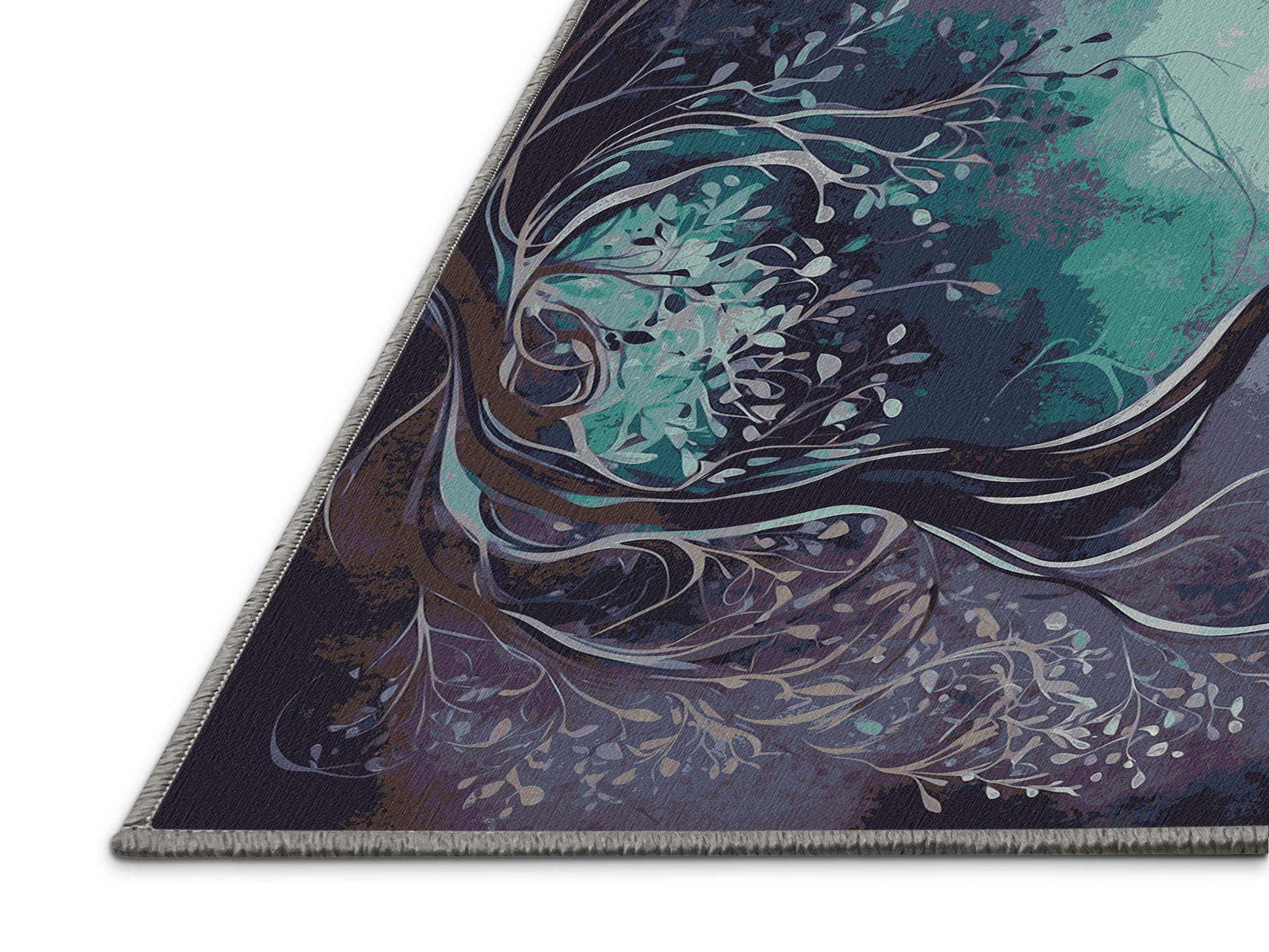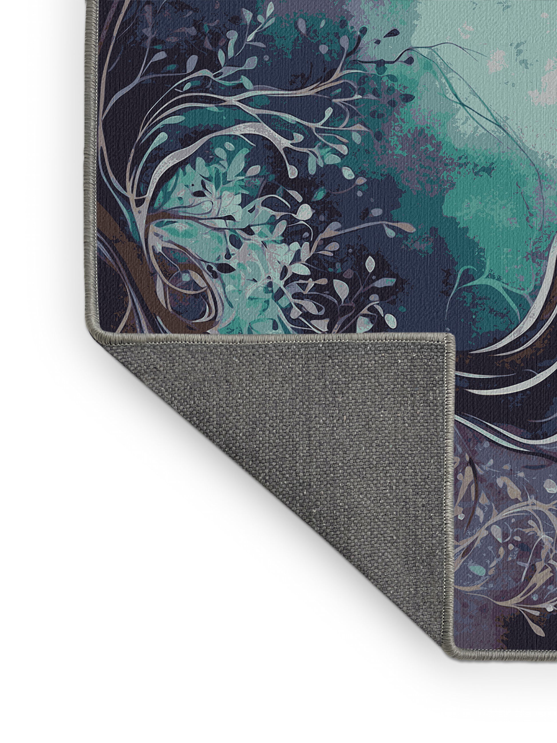 Serene Sapling from the Mystic Flora collection brings the enchanting beauty of nature into your space with its captivating Mist Blue color (A soft, grayish blue that's calming and delicate.), a soothing tone in the Blue color family. Featuring intricate botanical patterns inspired by lush leaves and whimsical trees, this rug is finished with Gray serging a durable stitched edge that prevents fraying and enhances its elegant design. Crafted from premium polyester and machine-made in the USA with imported materials, it combines modern artistry with lasting durability. Perfect for living rooms, serene bedrooms, or tranquil reading nooks, this design blends natural elements with a dreamy, ethereal quality. Available in multiple sizes, the Mystic Flora collection transforms your home into a tranquil retreat while adding a fresh, inviting touch to contemporary or bohemian interiors.