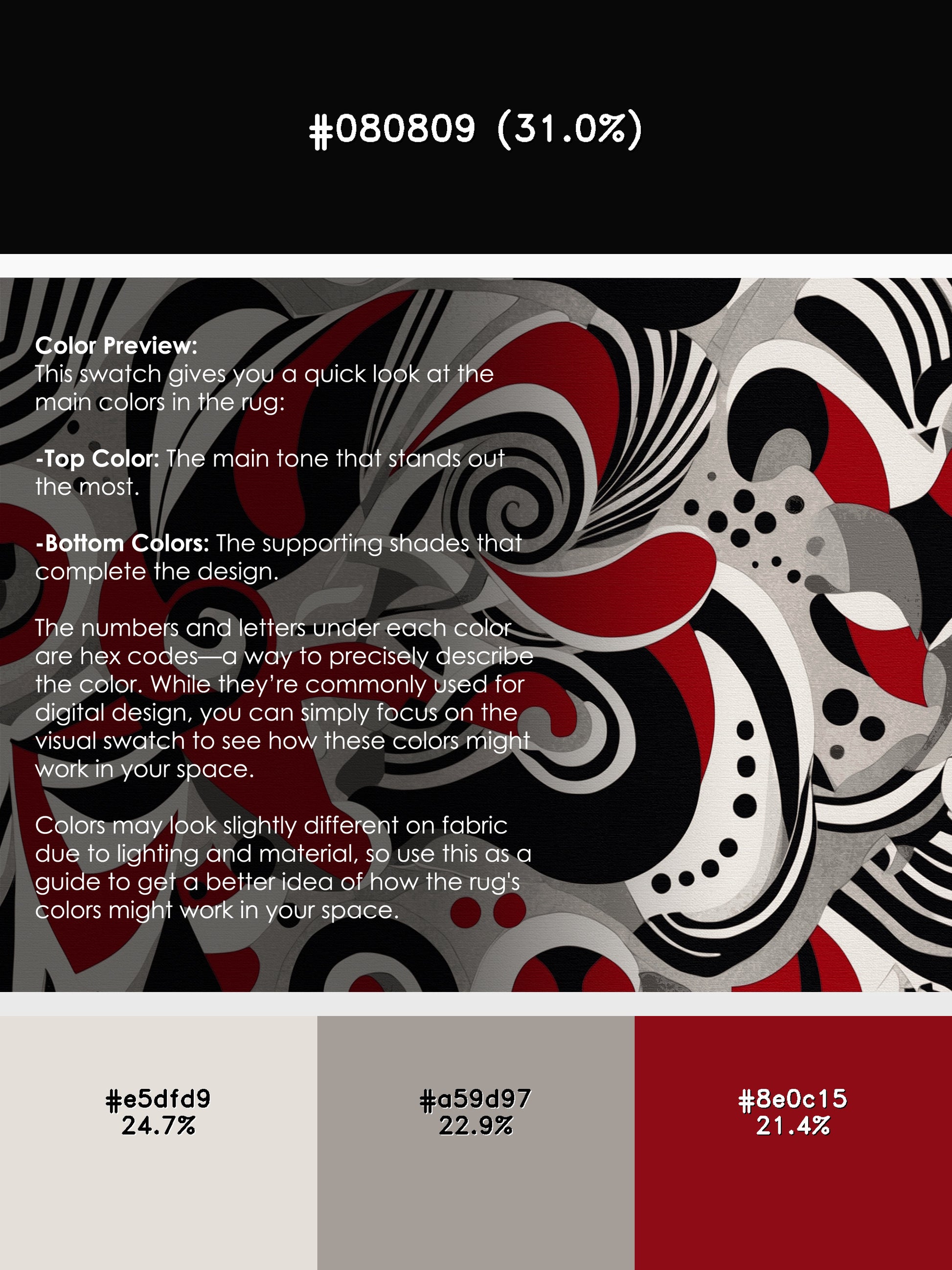Shadow Radiance from the Scarlet Surrealism collection brings bold artistic energy to your space with its captivating Dark White color (A muted white with soft grayish tones, calm and neutral.), a dramatic tone in the White color family. Inspired by surrealist artistry, this rug features abstract patterns with flowing curves and dynamic contrasts, creating a sense of motion and depth. Finished with White serging a sleek edge that enhances its modern aesthetic this rug is crafted from premium polyester and machine-made in the USA with imported materials. Perfect for living rooms, statement hallways, or creative spaces, this design blends avant-garde elegance with everyday functionality. Available in multiple sizes, the Scarlet Surrealism collection transforms your home into a showcase of bold sophistication and unique style.