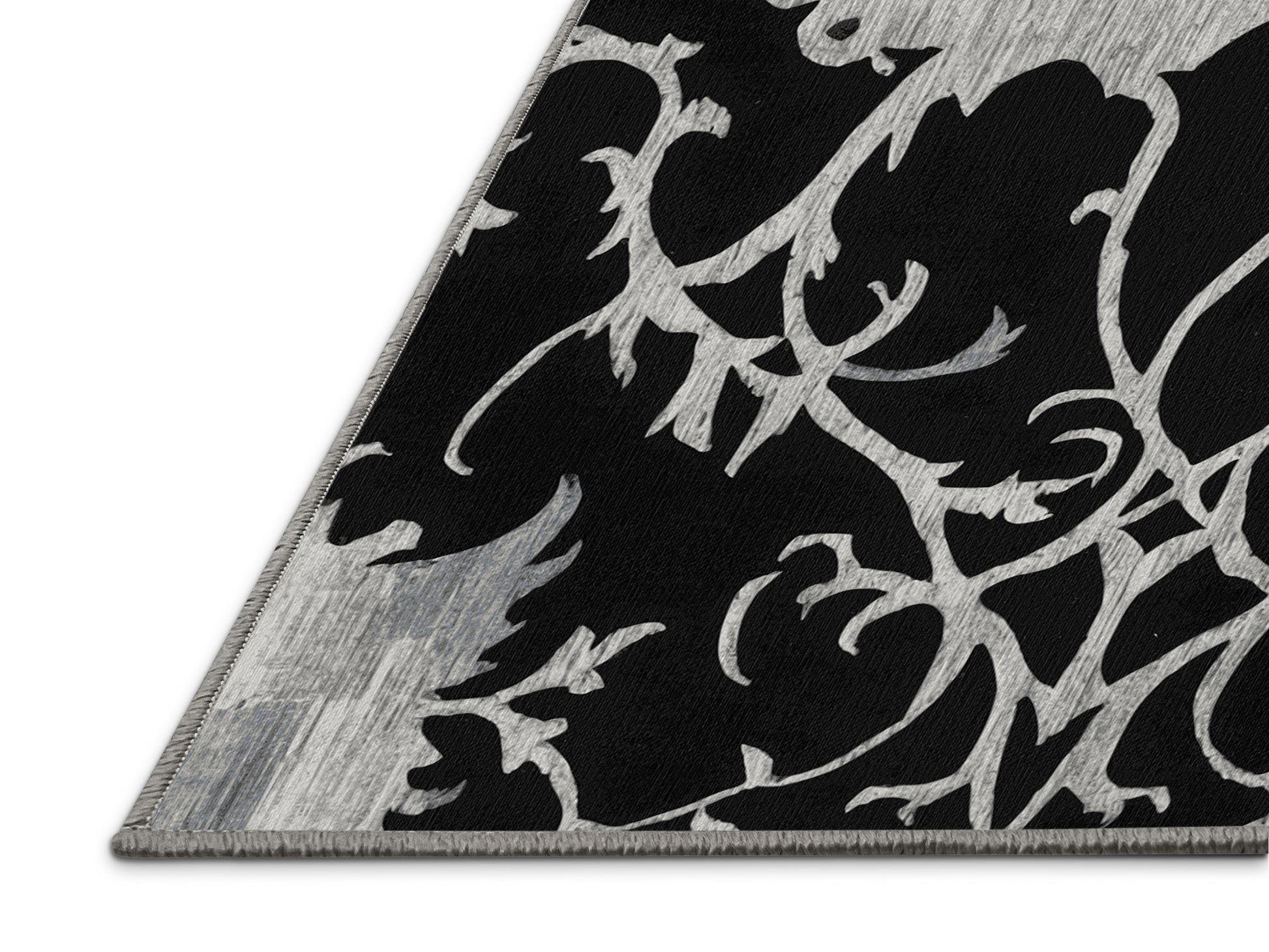 Shadowed Rose from the Nocturne Elegance collection exudes timeless sophistication with its captivating Grayish Turquoise color (A soft turquoise with gray undertones, cool and calming.), a rich tone in the Green color family. Featuring intricate baroque-inspired patterns and swirling vine designs, this rug creates a sense of depth and refined elegance. Finished with Gray serging a durable edge that enhances its luxurious aesthetic this rug is crafted from premium polyester and machine-made in the USA with imported materials. Perfect for formal dining rooms, chic living areas, or cozy bedrooms, this design balances bold drama with subtle charm, complementing both contemporary and traditional interiors. Available in multiple sizes, the Nocturne Elegance collection transforms your home into a haven of understated grandeur and classic refinement.