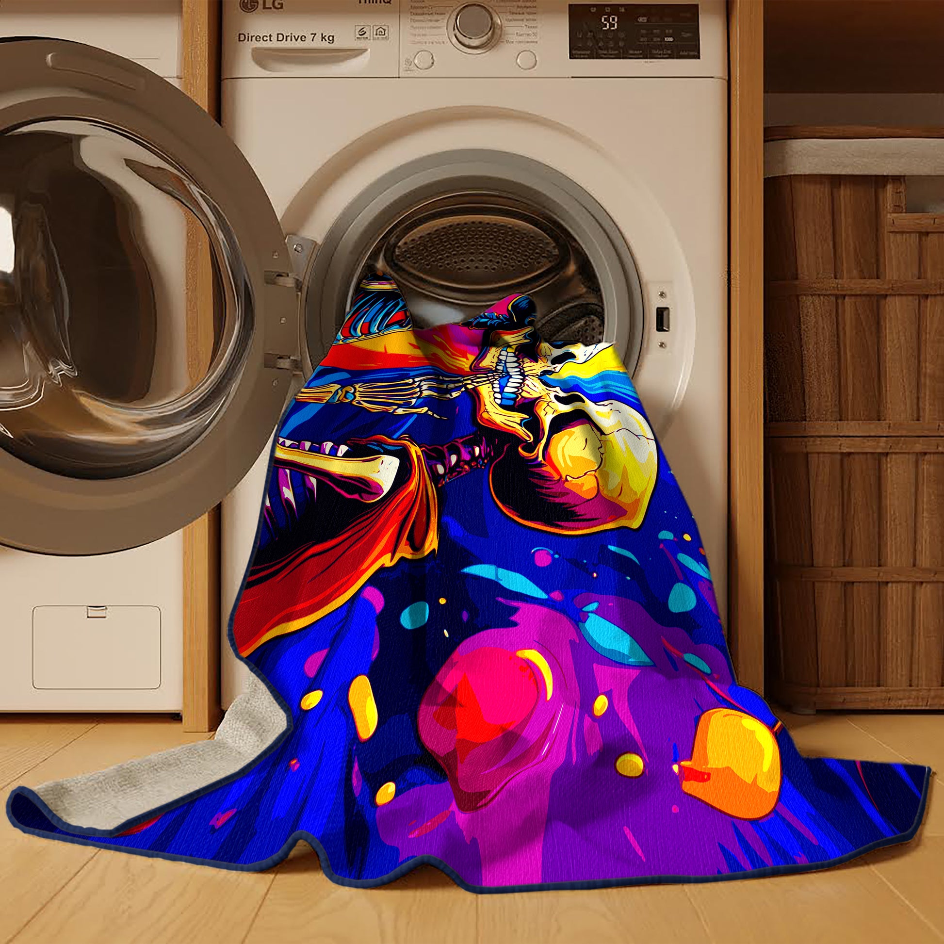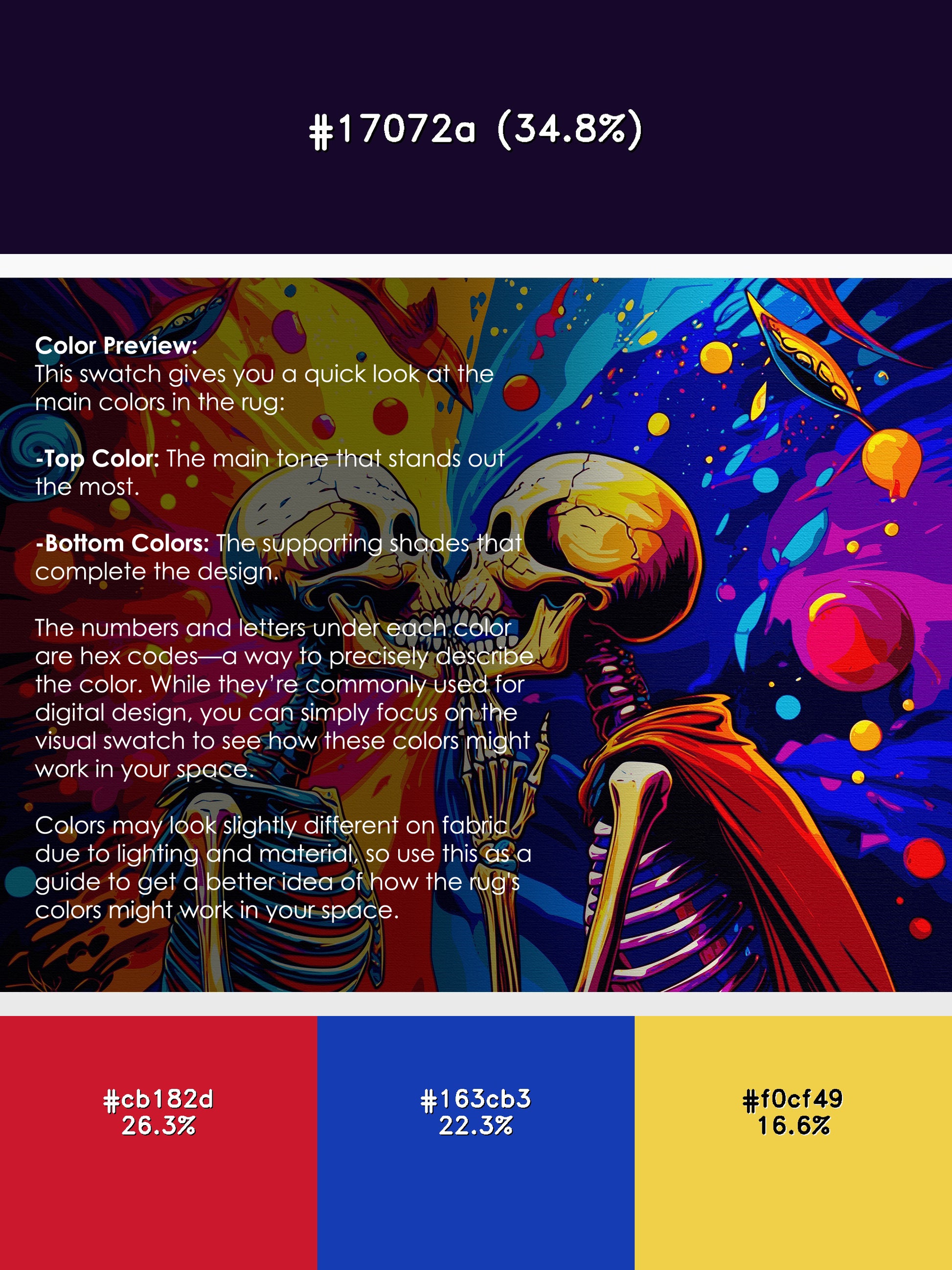 Shimmer Spiral from the Psychedelia Peaks collection radiates vibrant energy with its bold Purple Monster color (A bold and vibrant purple with a playful, lively character.), a striking tone in the Purple color family. Featuring swirling, kaleidoscopic patterns and electrifying neon hues inspired by the psychedelic art movement, this rug brings a sense of dynamic motion and artistic expression to your space. Finished with Navy serging a durable edge that enhances its playful and vibrant aesthetic this rug is crafted from premium polyester and machine-made in the USA with imported materials. Perfect for eclectic living rooms, retro-inspired spaces, or creative studios, this design transforms any room into a lively haven of individuality and boldness. Available in multiple sizes, the Psychedelia Peaks collection adds a dramatic, colorful statement to your decor, turning your home into a canvas of unrestrained creativity.