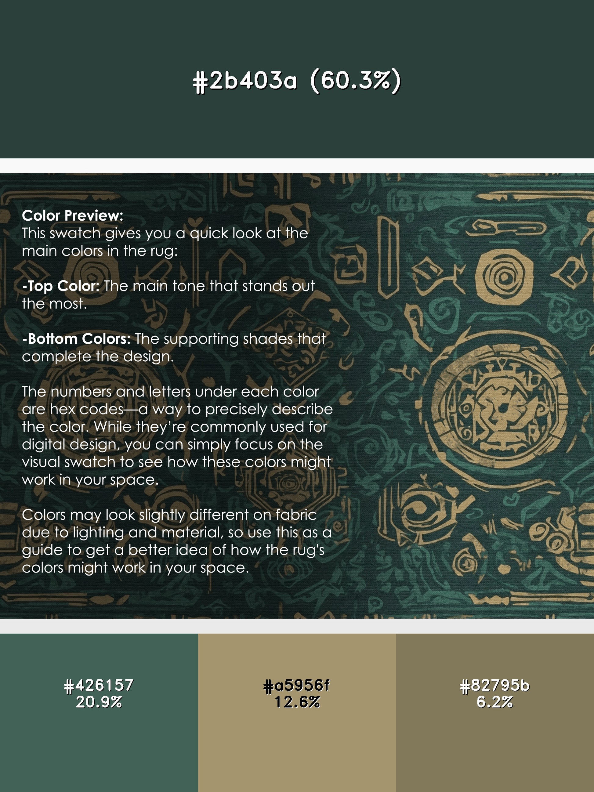 Silent Hero from the Hero's Path collection takes you on an epic journey of adventure and timeless wonder with its captivating Blue Moss Green color (A muted green with a subtle blue tone, natural and earthy.), a bold tone in the Green color family. Inspired by mythical quests and heroic landscapes, this rug features intricate symbols and dynamic designs that evoke a sense of exploration and creativity. Finished with Gray serging a durable stitched edge that prevents fraying and enhances its artistic appeal this rug is crafted from premium polyester and machine-made in the USA with imported materials. Perfect for creating a bold statement in living rooms, inspiring creativity in home offices, or elevating entertainment areas, this design combines fantasy, elegance, and practicality. Available in multiple sizes, the Hero's Path collection transforms your space into a realm of imagination and discovery with its adventurous spirit and artistic flair.