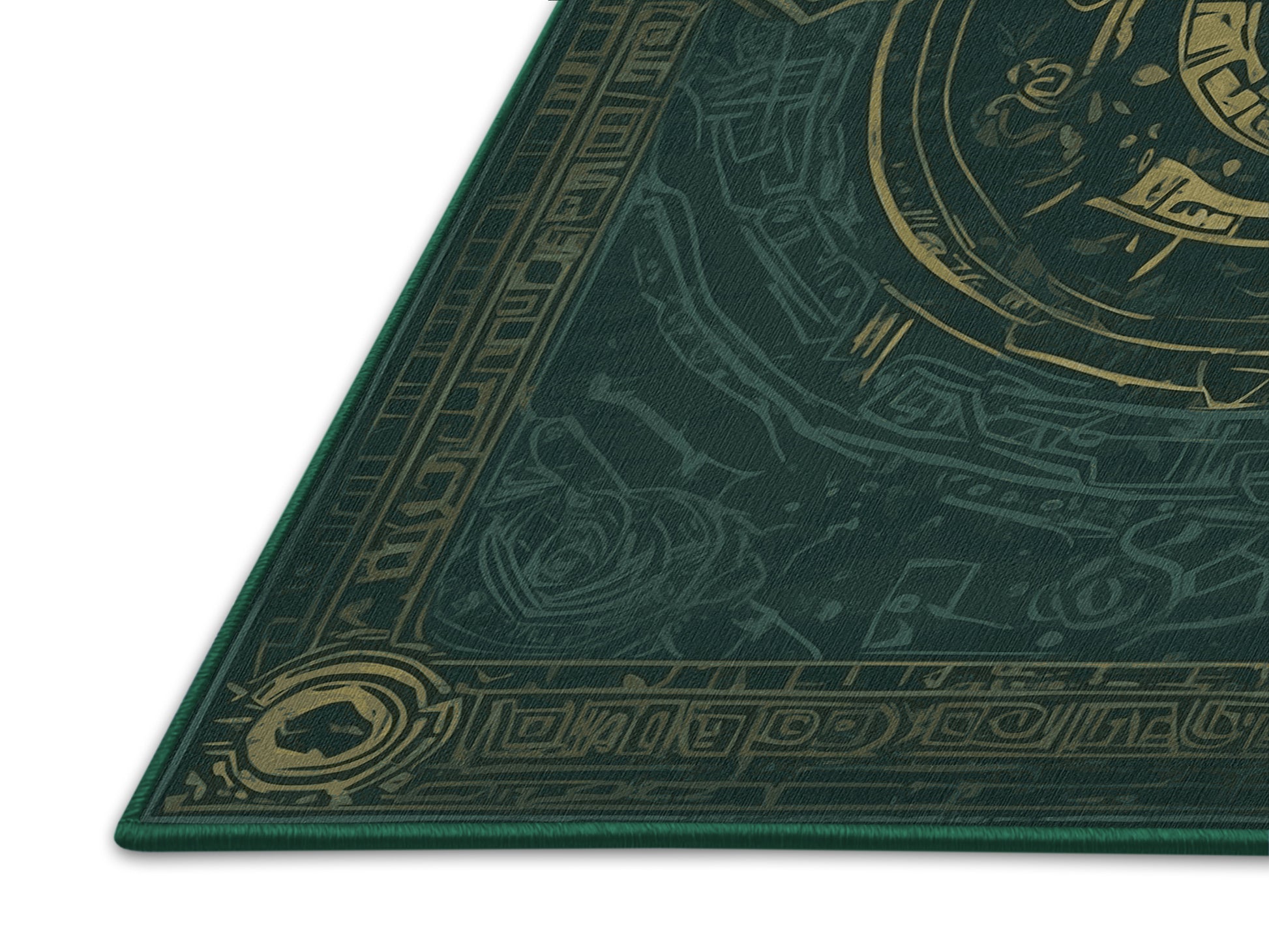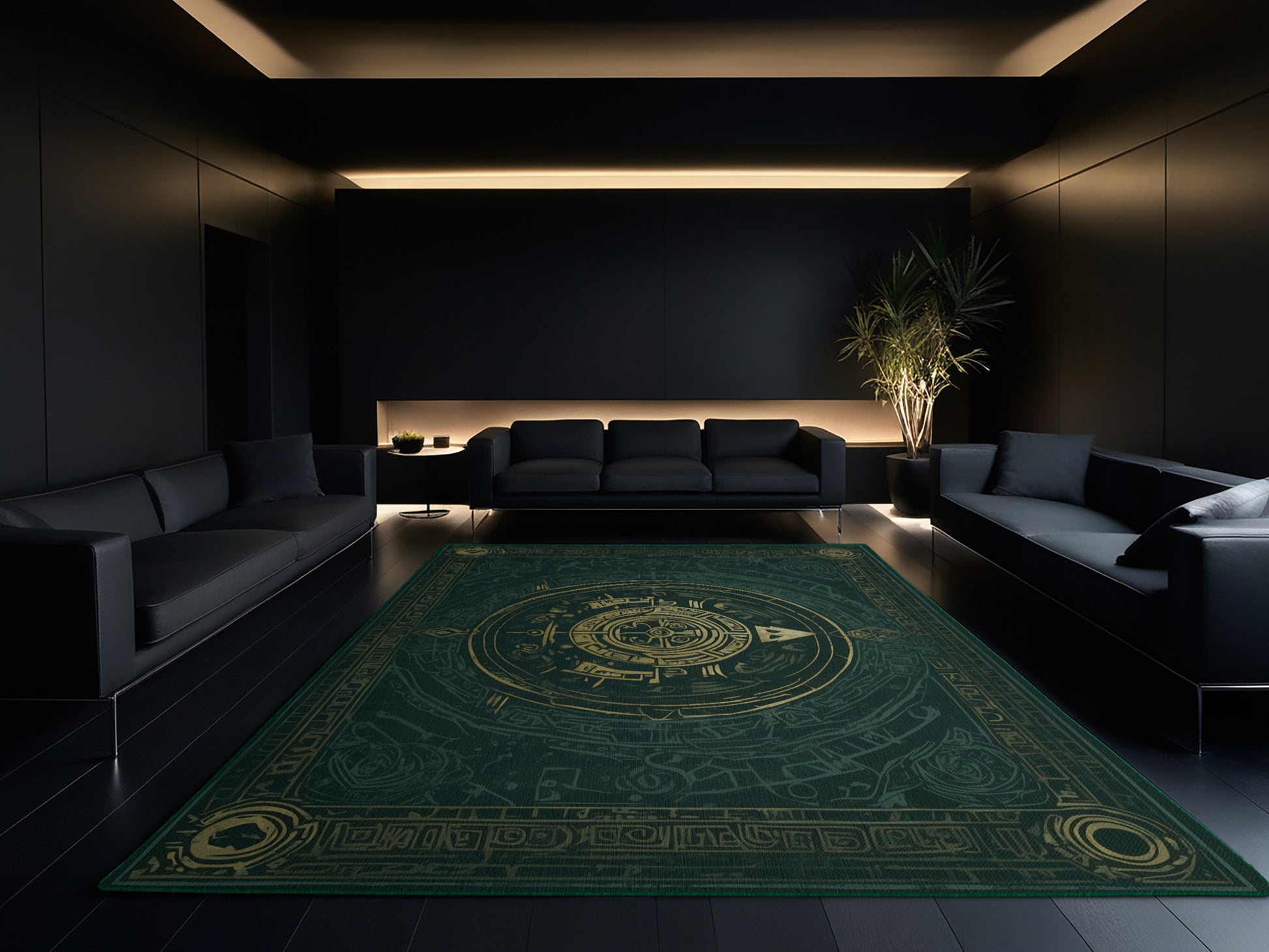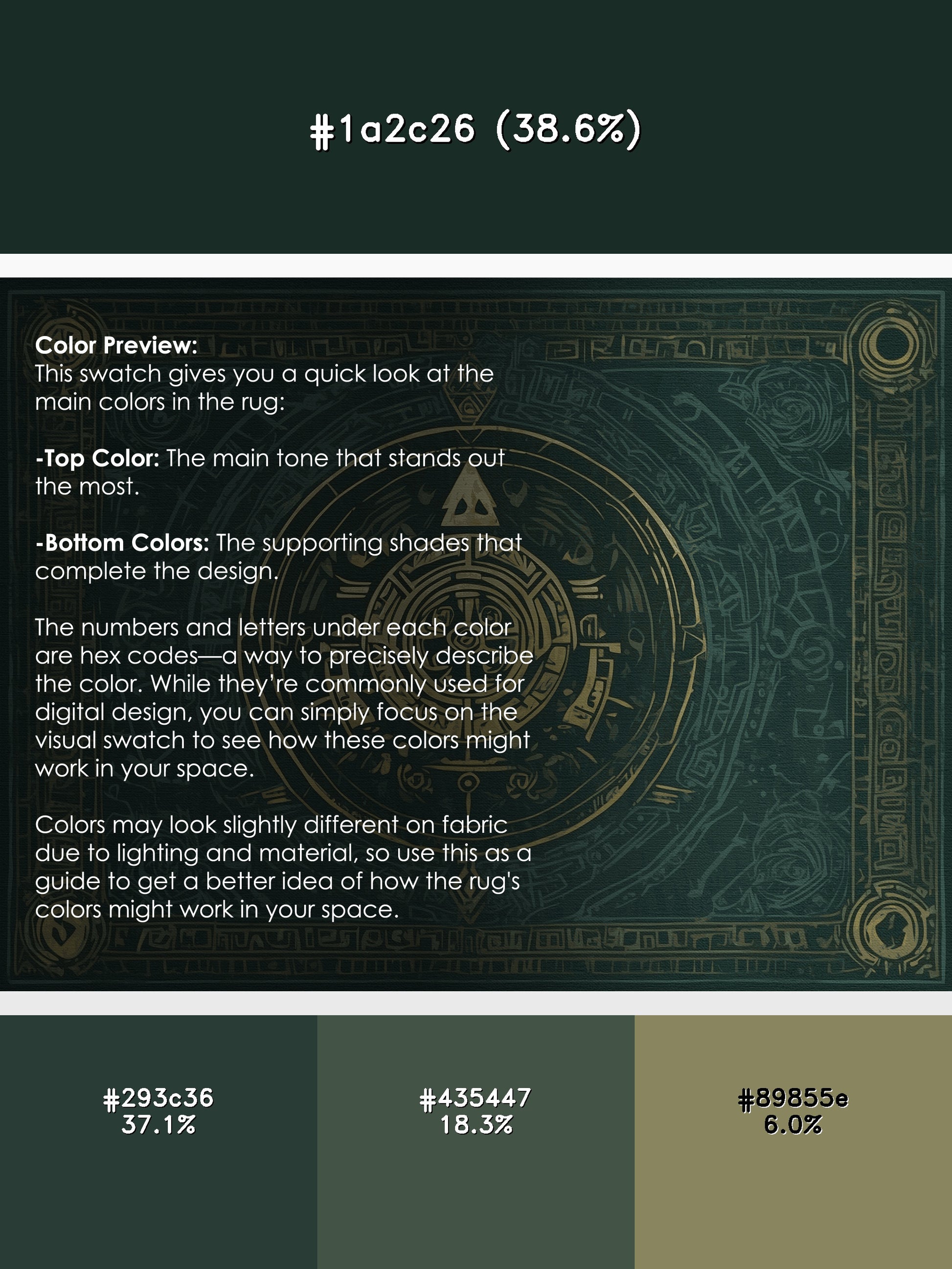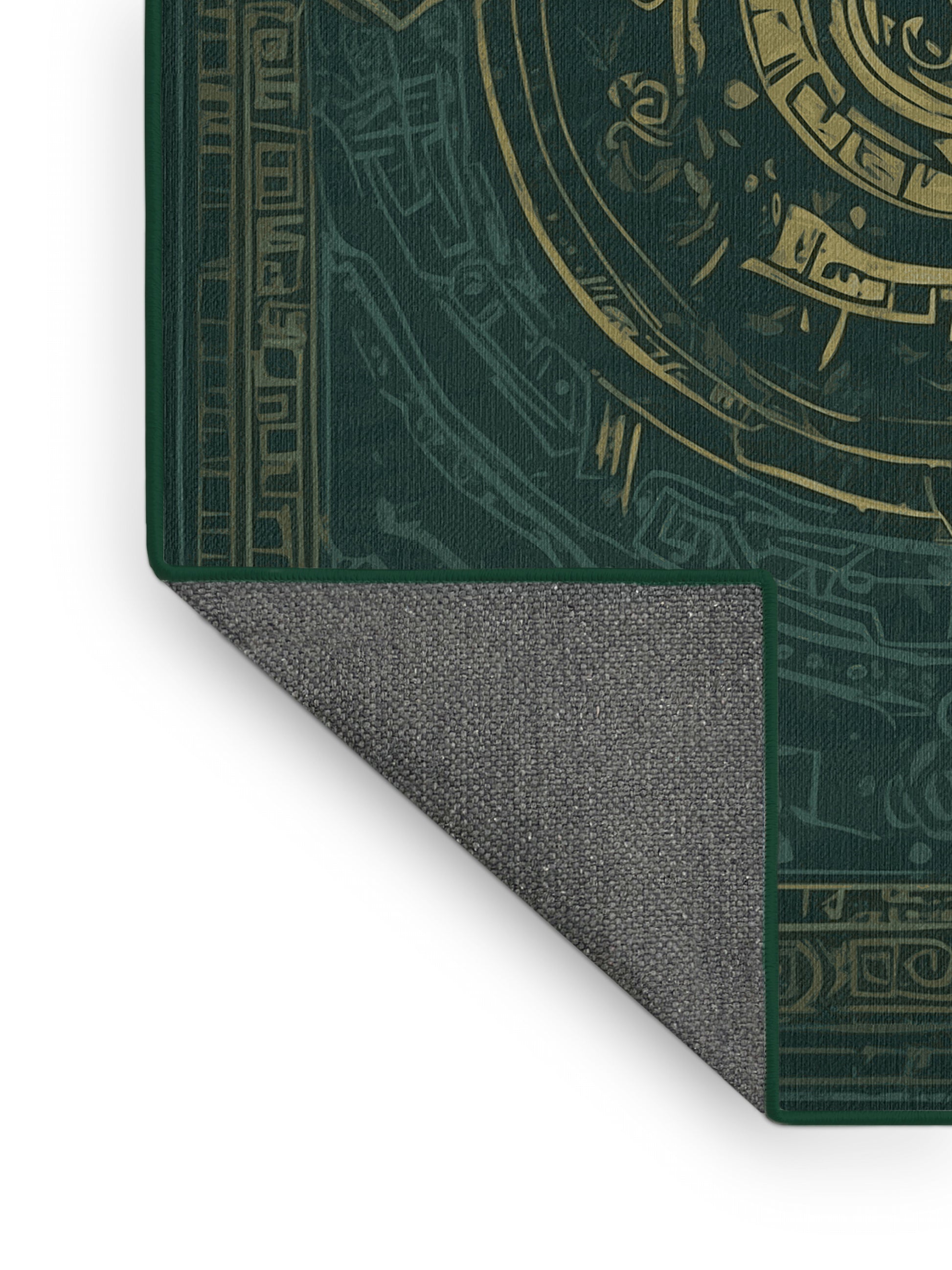 Silent Watcher from the Hero's Path collection takes you on an epic journey of adventure and timeless wonder with its captivating DarkSlateGray or DarkSlateGrey color (A dark and muted gray with strong green undertones.), a bold tone in the Gray color family. Inspired by mythical quests and heroic landscapes, this rug features intricate symbols and dynamic designs that evoke a sense of exploration and creativity. Finished with Green serging a durable stitched edge that prevents fraying and enhances its artistic appeal this rug is crafted from premium polyester and machine-made in the USA with imported materials. Perfect for creating a bold statement in living rooms, inspiring creativity in home offices, or elevating entertainment areas, this design combines fantasy, elegance, and practicality. Available in multiple sizes, the Hero's Path collection transforms your space into a realm of imagination and discovery with its adventurous spirit and artistic flair.