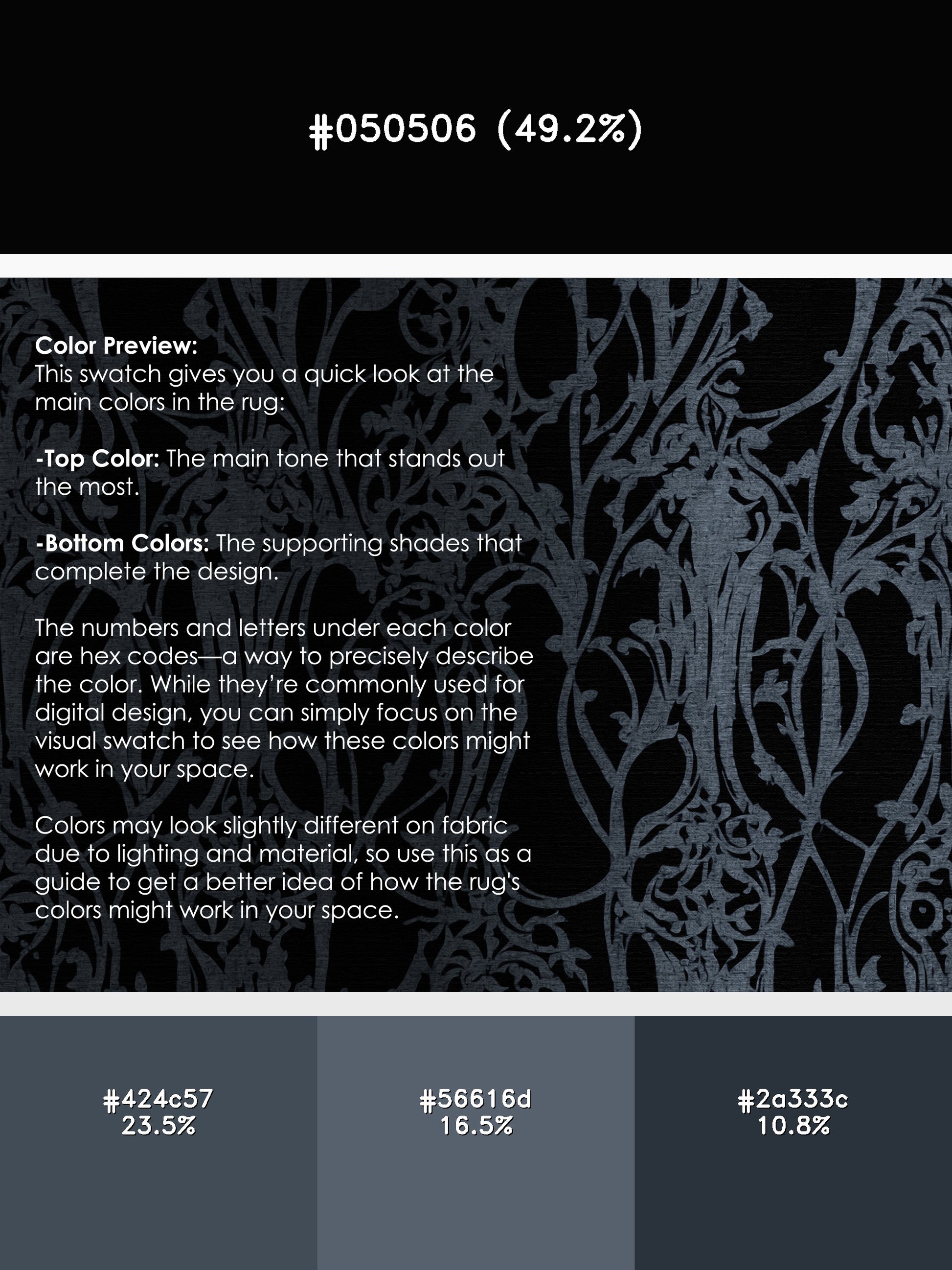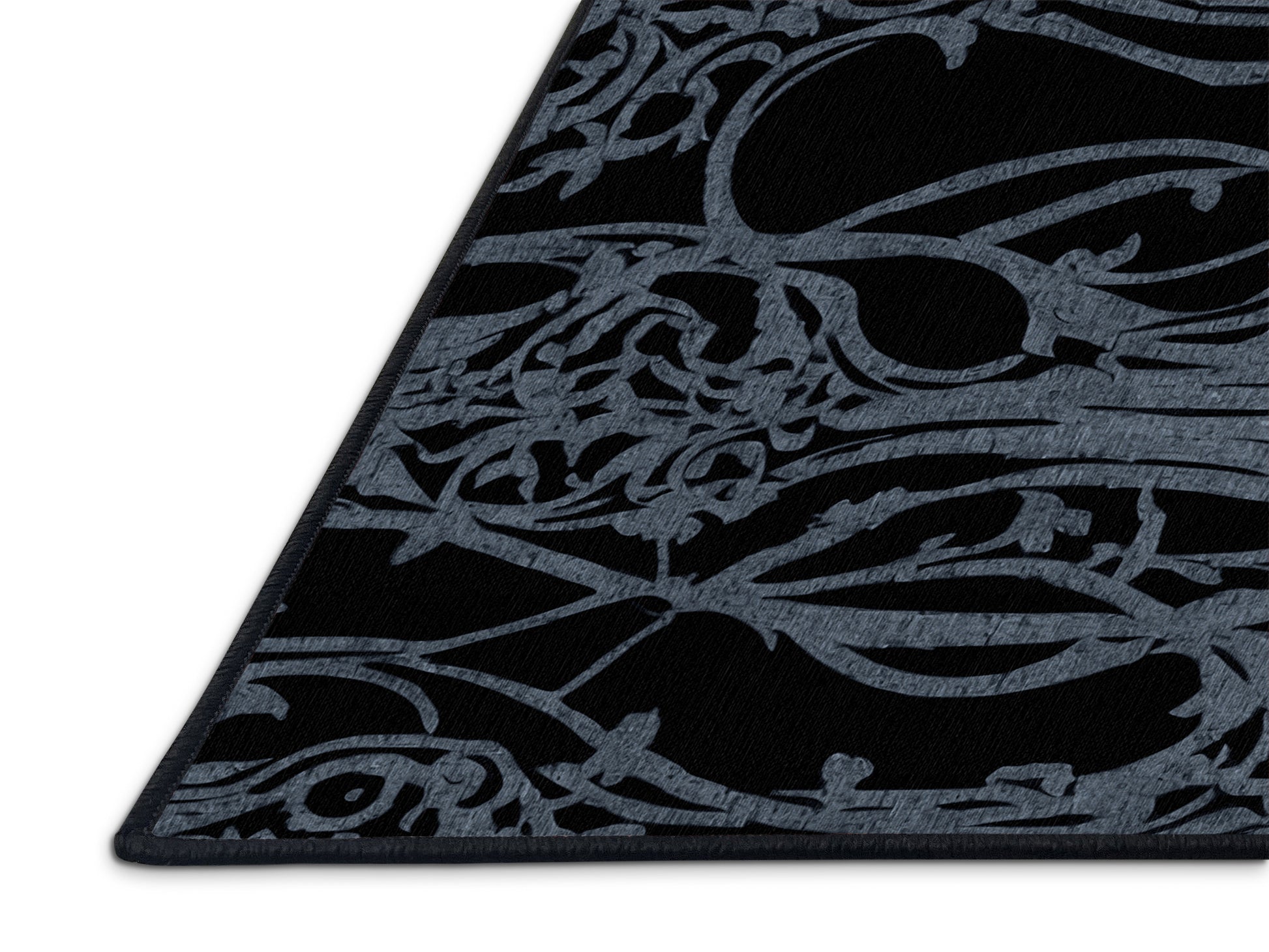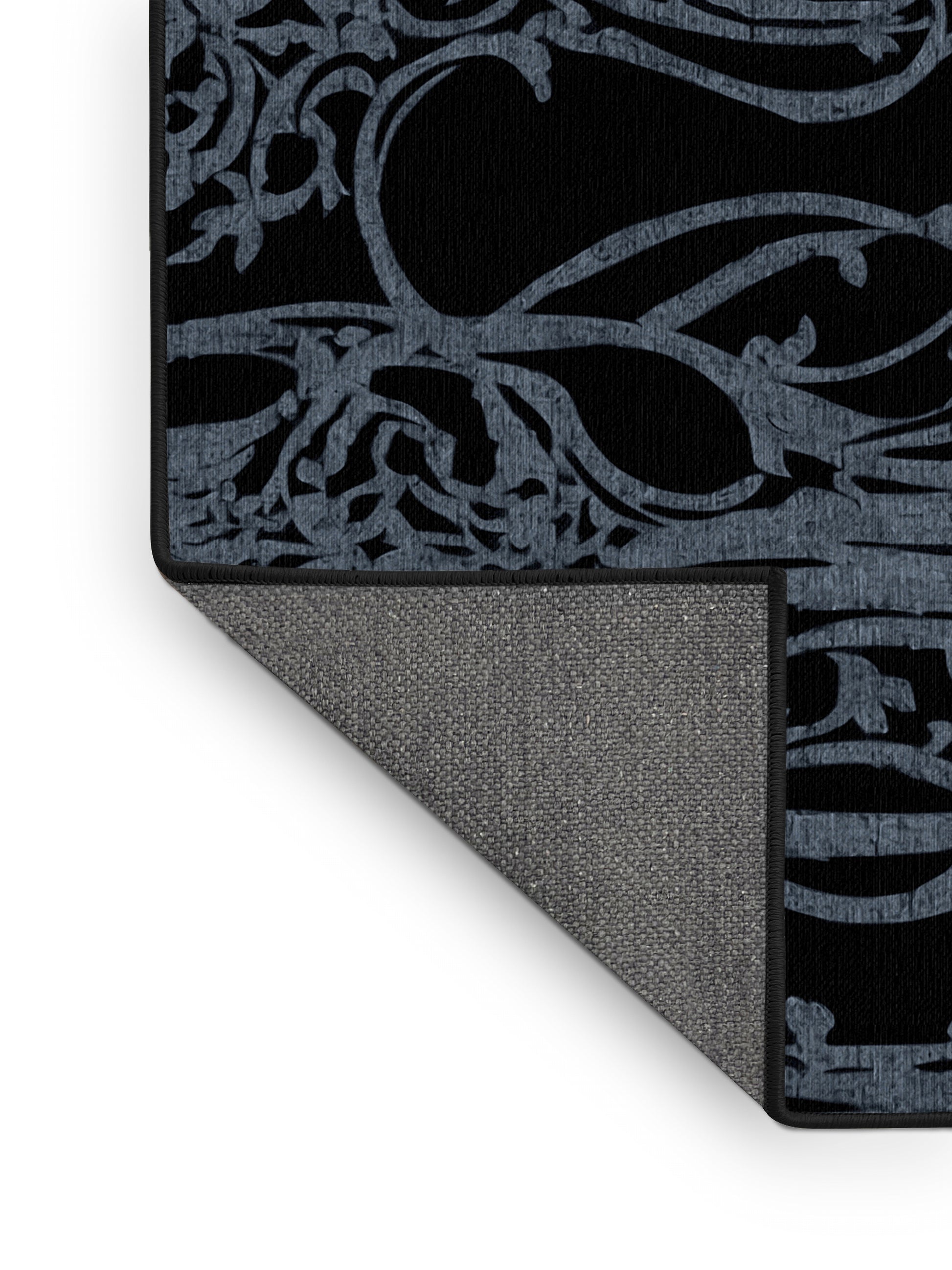 Silver Enigma from the Nocturne Elegance collection exudes timeless sophistication with its captivating Deep Teal color (A rich and dark teal, offering depth and sophistication.), a rich tone in the Green color family. Featuring intricate baroque-inspired patterns and swirling vine designs, this rug creates a sense of depth and refined elegance. Finished with Black serging a durable edge that enhances its luxurious aesthetic this rug is crafted from premium polyester and machine-made in the USA with imported materials. Perfect for formal dining rooms, chic living areas, or cozy bedrooms, this design balances bold drama with subtle charm, complementing both contemporary and traditional interiors. Available in multiple sizes, the Nocturne Elegance collection transforms your home into a haven of understated grandeur and classic refinement.