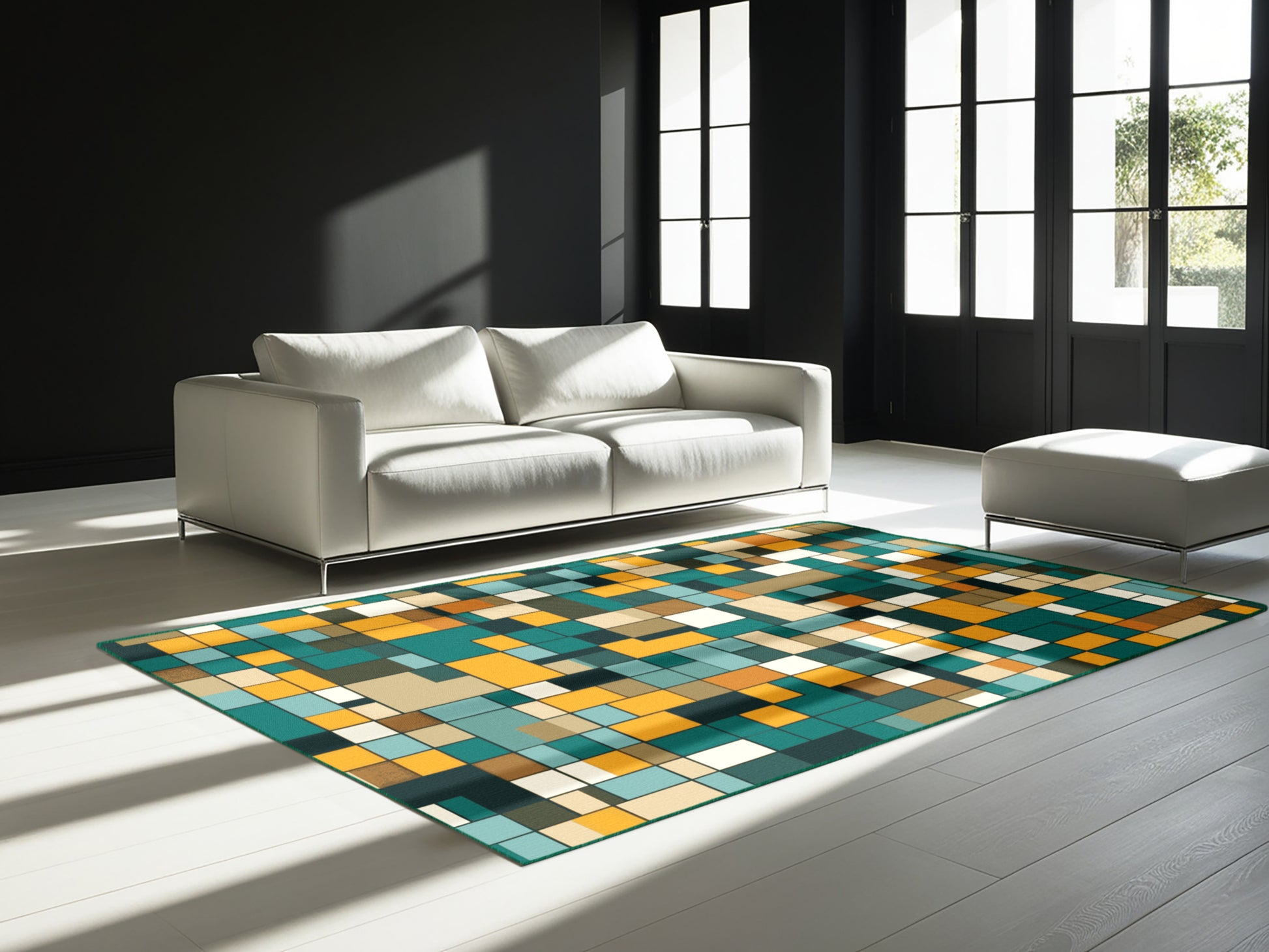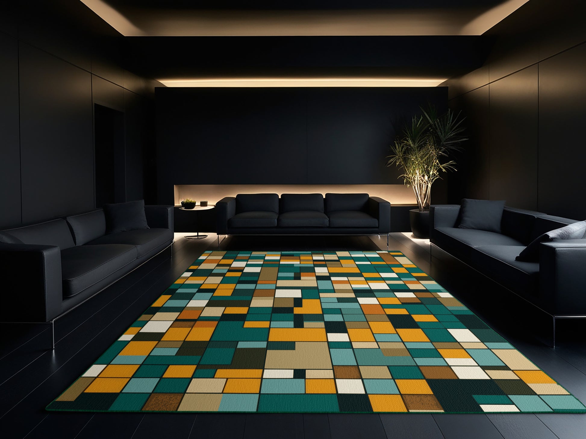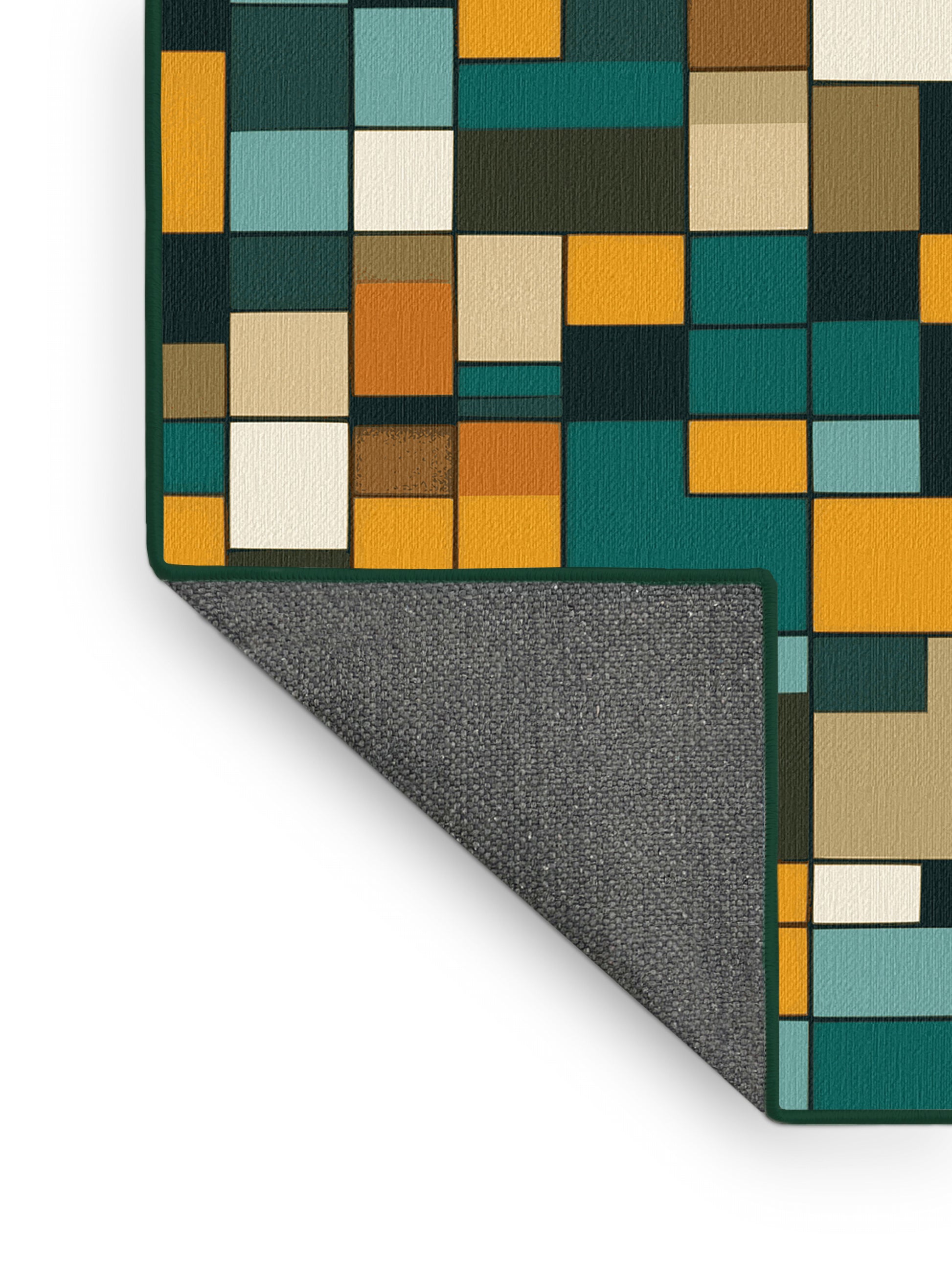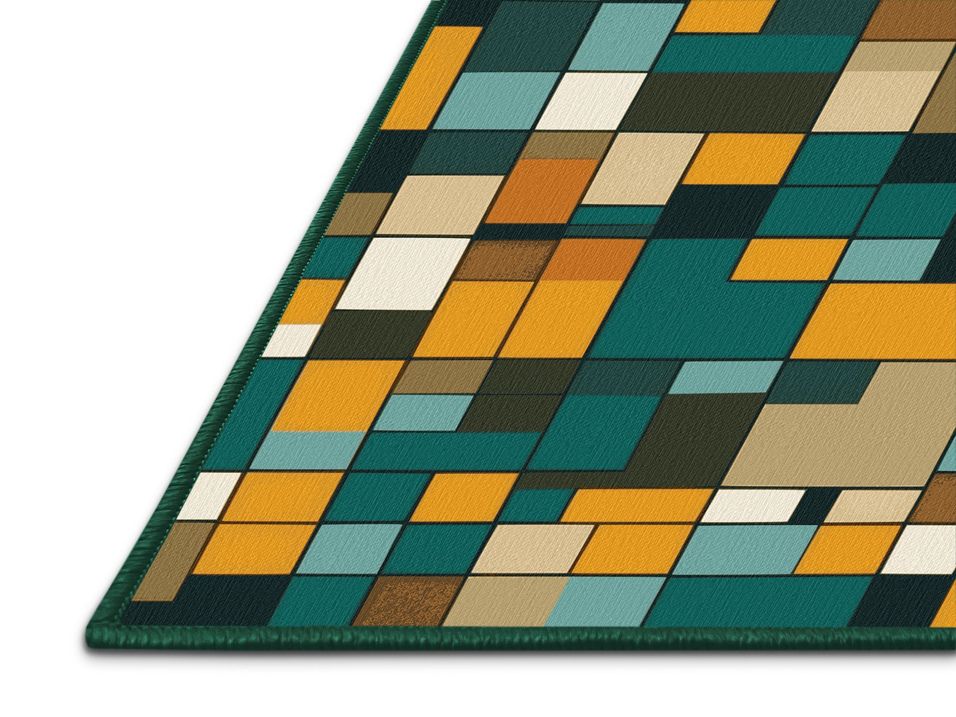 Soil Squares from the Pixel Earth collection brings a modern, pixelated charm to your space with its striking Charcoal Blue color (A dark, muted blue with gray undertones, sleek and understated.), a bold tone in the Blue color family. Featuring intricate geometric patterns and pixel-like designs inspired by digital landscapes, this rug is finished with Green serging a durable edge that enhances its contemporary aesthetic. Crafted from premium polyester and machine-made in the USA with imported materials, it offers a seamless blend of organic warmth and structured elegance. Perfect for creative studios, modern living rooms, or stylish home offices, this design balances bold artistry with versatile functionality. Available in multiple sizes, the Pixel Earth collection transforms any room into a unique and vibrant showcase of modern home decor.