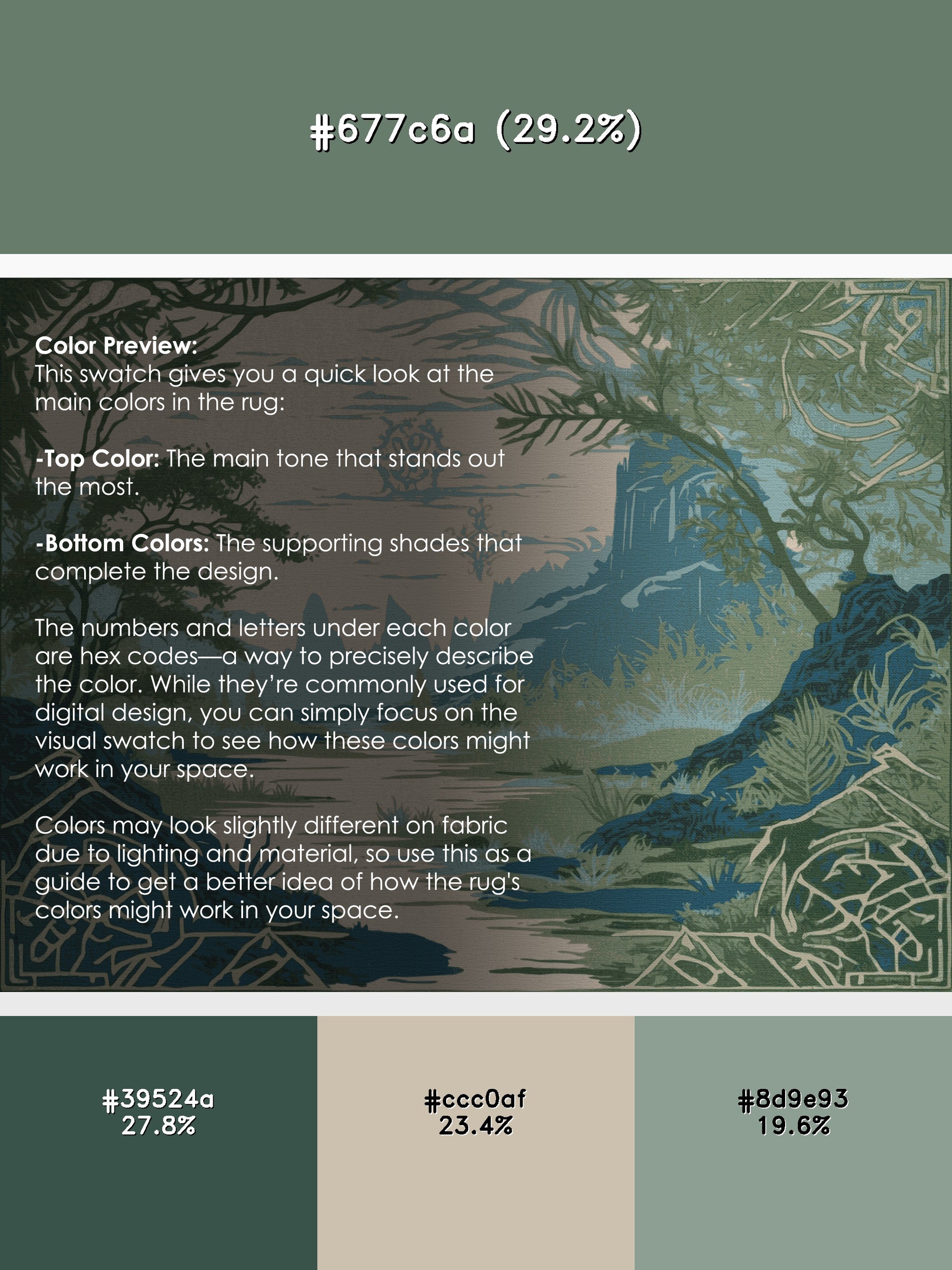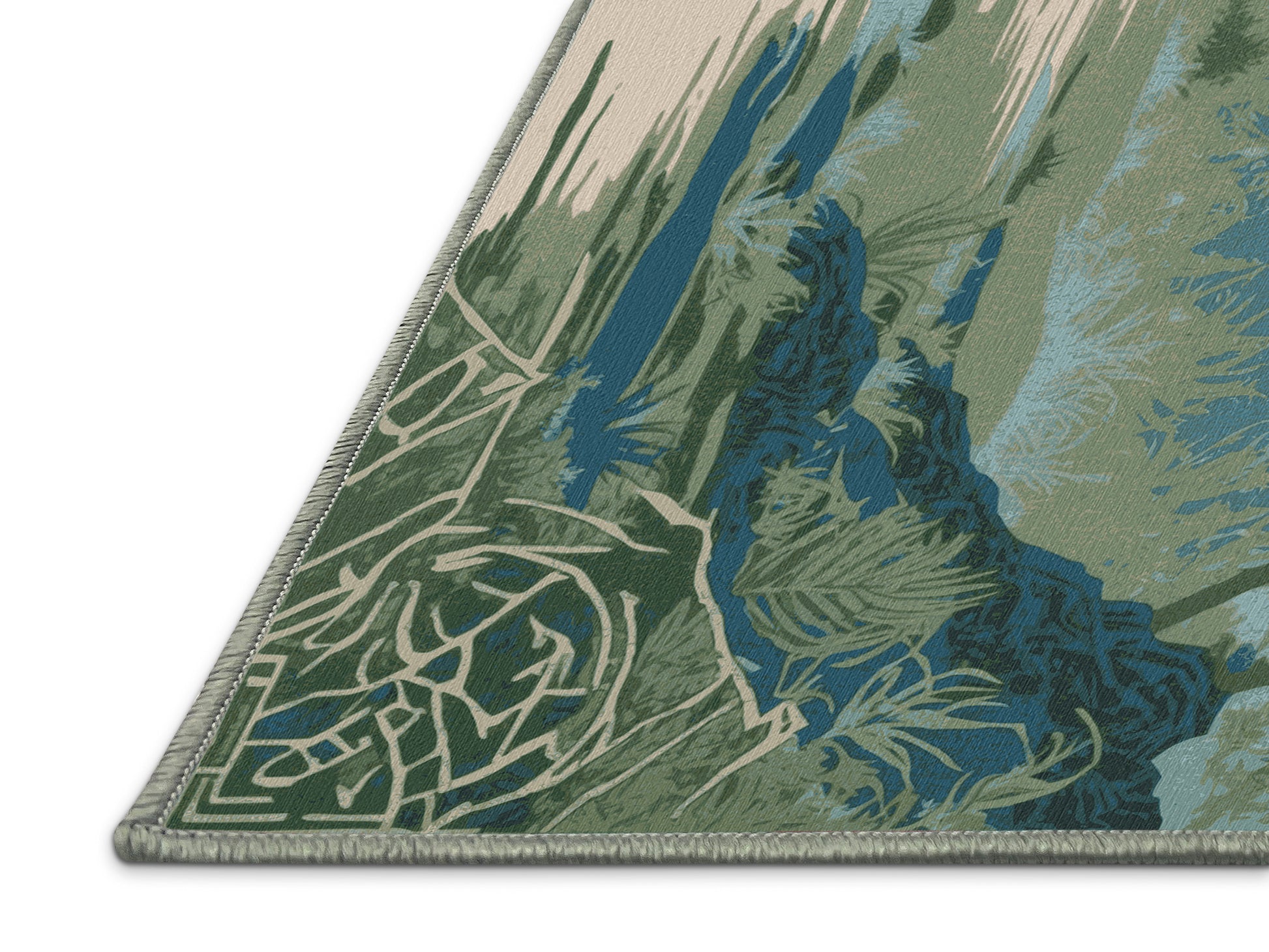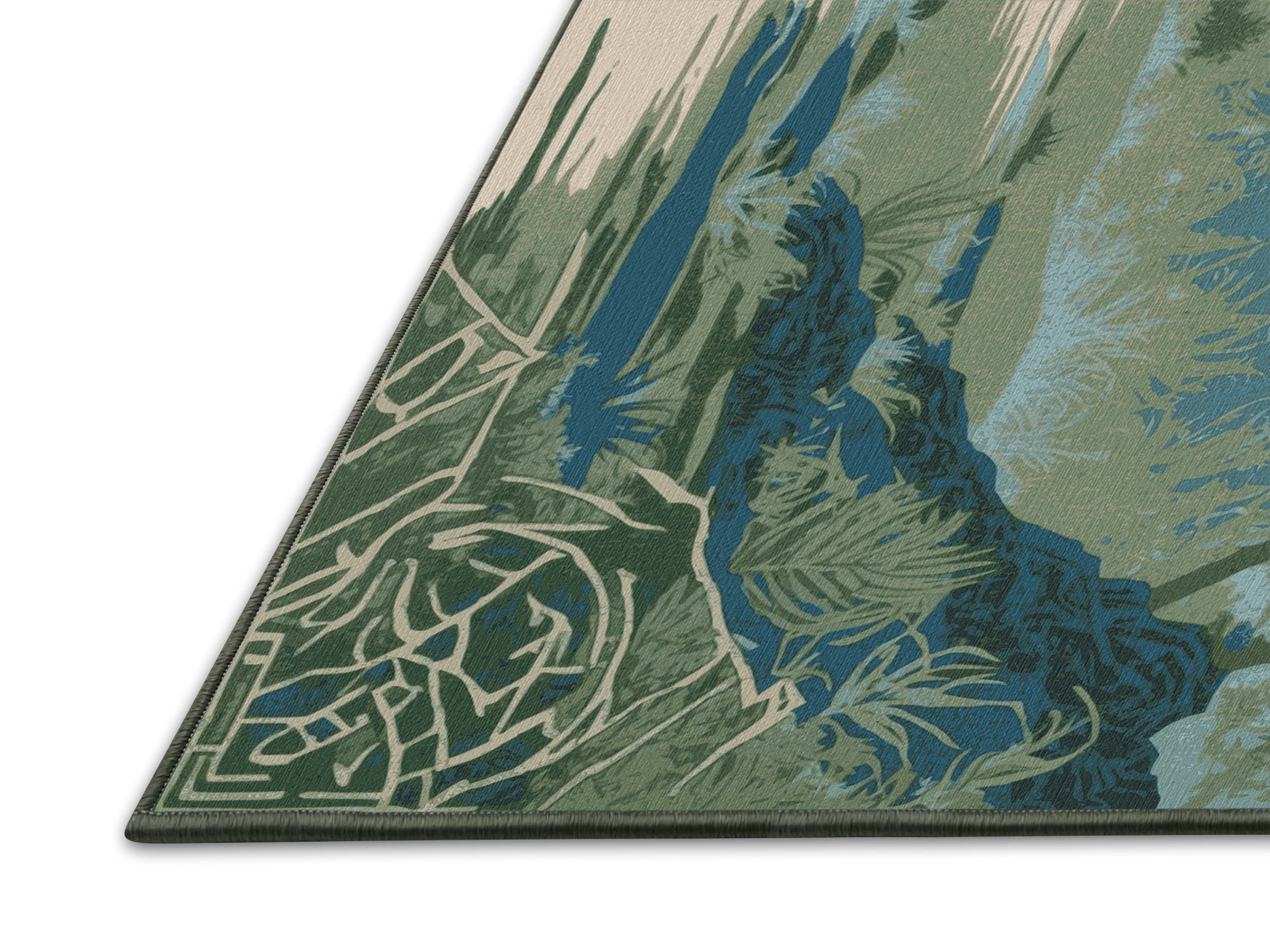 Soul's Compass from the Hero's Path collection takes you on an epic journey of adventure and timeless wonder with its captivating DarkSeaGreen (W3C) color (A muted green with gray undertones, perfect for natural designs.), a bold tone in the Green color family. Inspired by mythical quests and heroic landscapes, this rug features intricate symbols and dynamic designs that evoke a sense of exploration and creativity. Finished with SageGreen serging a durable stitched edge that prevents fraying and enhances its artistic appeal this rug is crafted from premium polyester and machine-made in the USA with imported materials. Perfect for creating a bold statement in living rooms, inspiring creativity in home offices, or elevating entertainment areas, this design combines fantasy, elegance, and practicality. Available in multiple sizes, the Hero's Path collection transforms your space into a realm of imagination and discovery with its adventurous spirit and artistic flair.