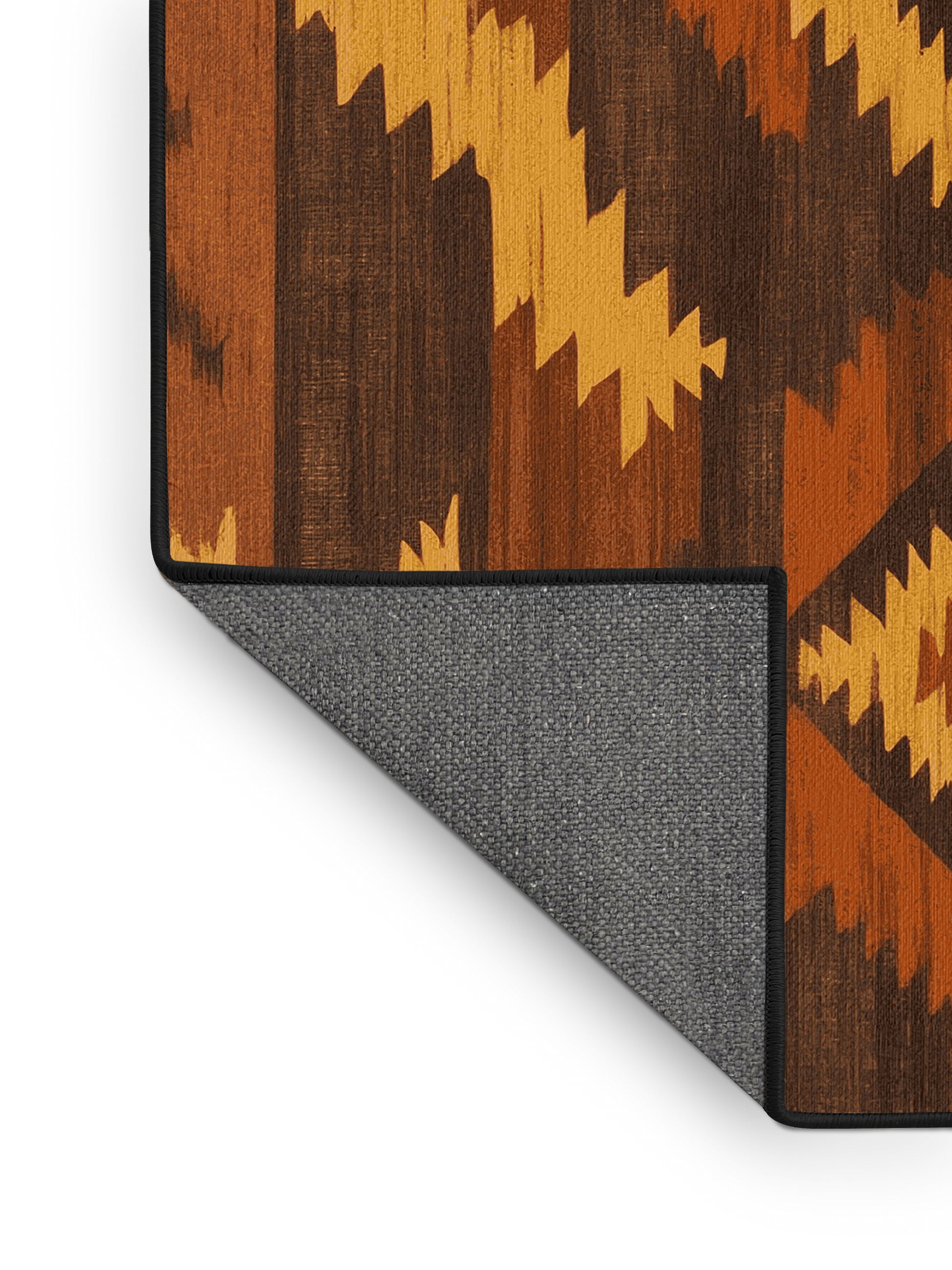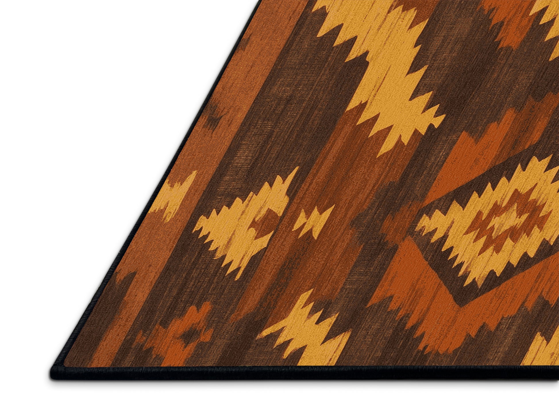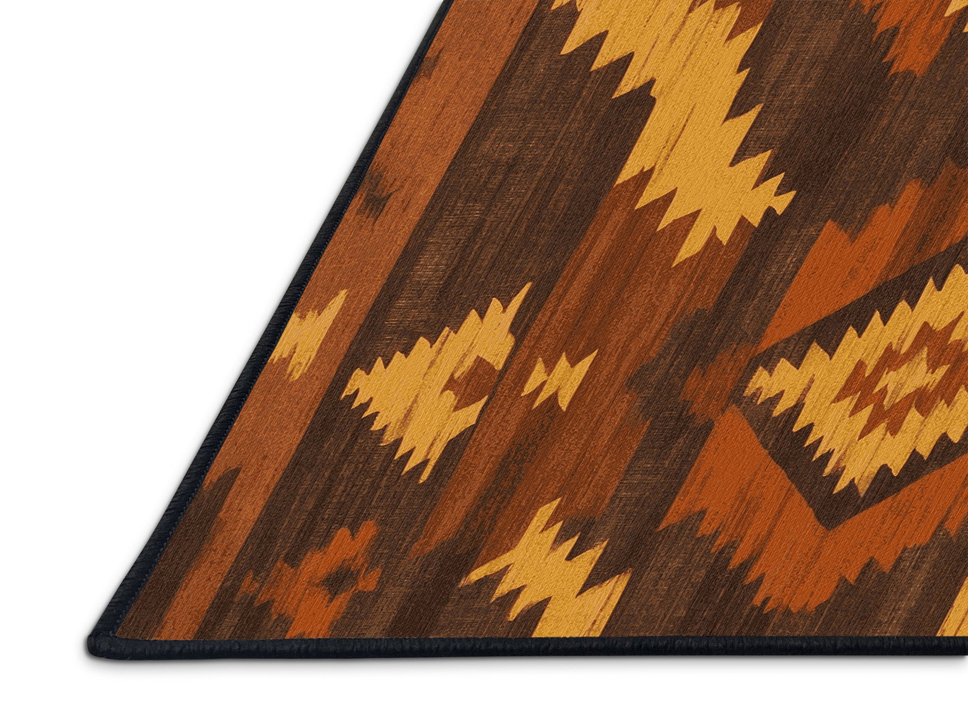 Spirit Dancer from the Heritage Southwest collection captures the rugged charm of the American Southwest with its bold Coffee color (A rich brown inspired by the warmth of freshly brewed coffee.), a striking tone in the Brown color family. Inspired by traditional Navajo artistry and desert landscapes, this rug features geometric patterns and tribal-inspired designs that evoke cultural heritage and timeless beauty. Finished with Black serging a durable stitched edge that prevents fraying and enhances its rustic appeal this rug is crafted from premium polyester and machine-made in the USA with imported materials. Perfect for grounding a living room, adding warmth to a bedroom, or enhancing a dining area, this design seamlessly complements rustic, bohemian, or modern interiors. Available in multiple sizes, the Heritage Southwest collection brings the spirit of the desert into your home with its warm tones and artisanal charm.