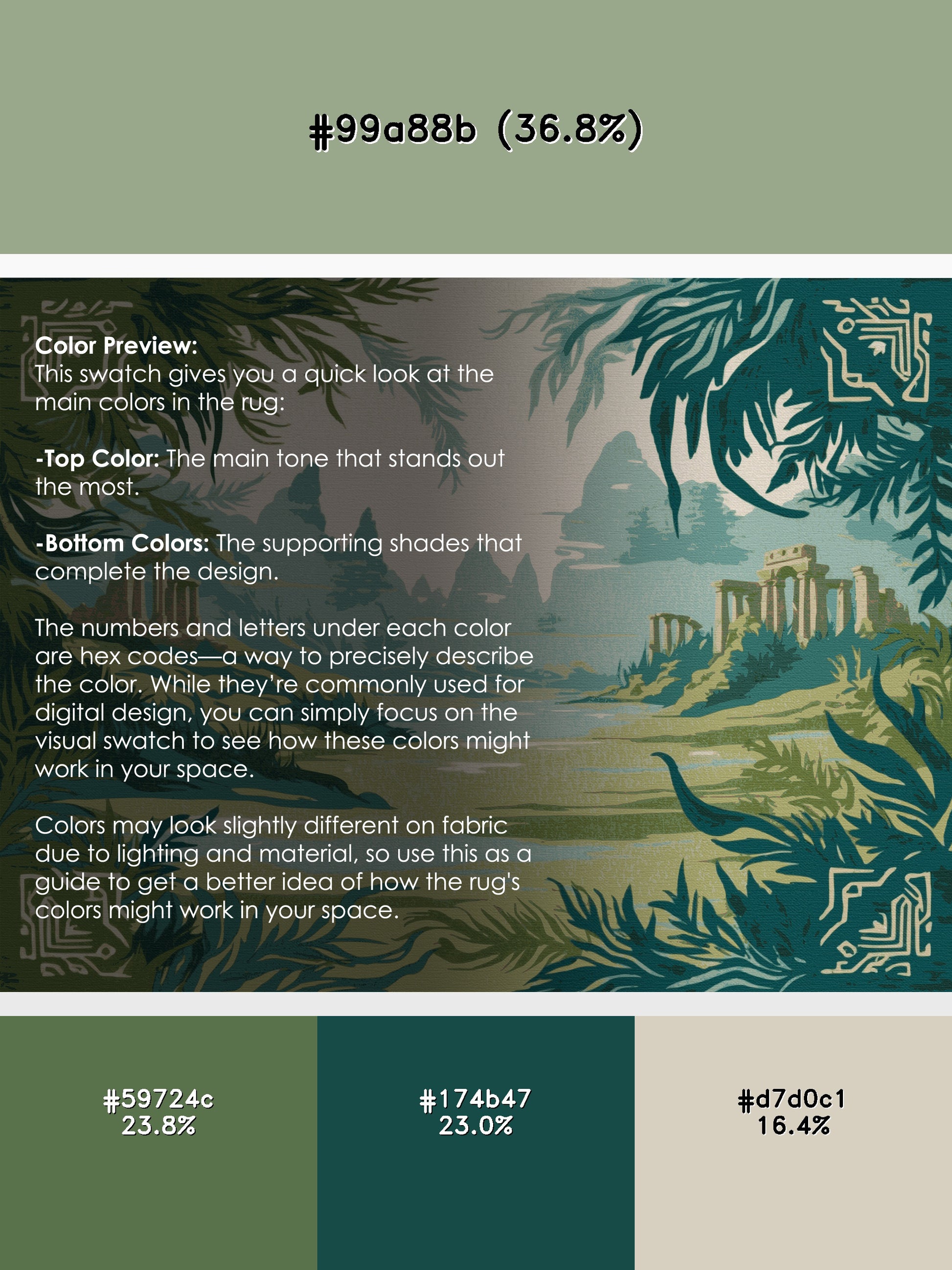 Spirit Flame from the Hero's Path collection takes you on an epic journey of adventure and timeless wonder with its captivating Sage Green color (A soft and muted green with a touch of gray, calm and soothing.), a bold tone in the Green color family. Inspired by mythical quests and heroic landscapes, this rug features intricate symbols and dynamic designs that evoke a sense of exploration and creativity. Finished with Gray serging a durable stitched edge that prevents fraying and enhances its artistic appeal this rug is crafted from premium polyester and machine-made in the USA with imported materials. Perfect for creating a bold statement in living rooms, inspiring creativity in home offices, or elevating entertainment areas, this design combines fantasy, elegance, and practicality. Available in multiple sizes, the Hero's Path collection transforms your space into a realm of imagination and discovery with its adventurous spirit and artistic flair.