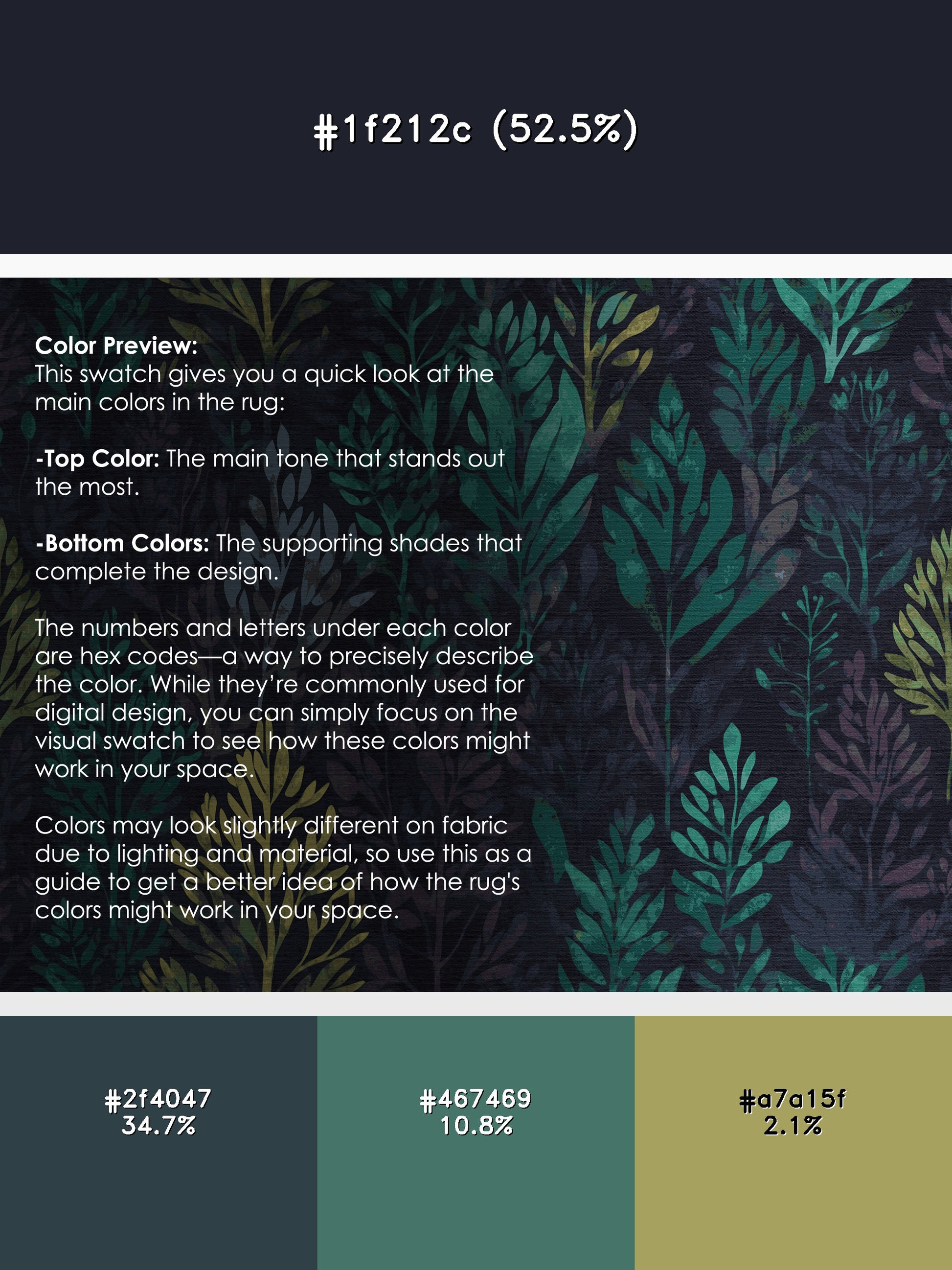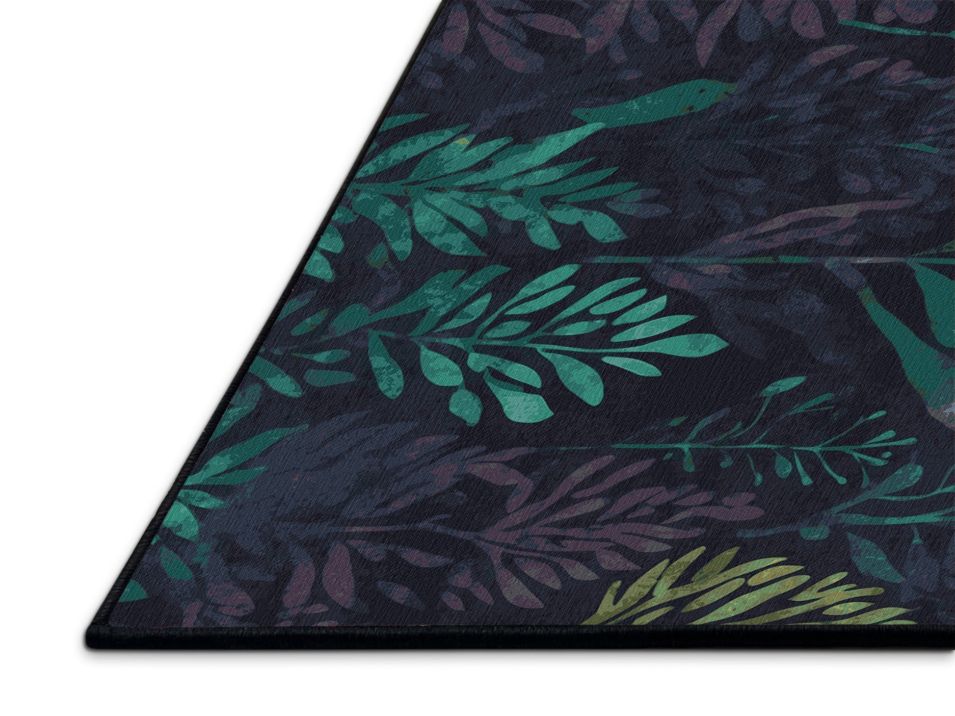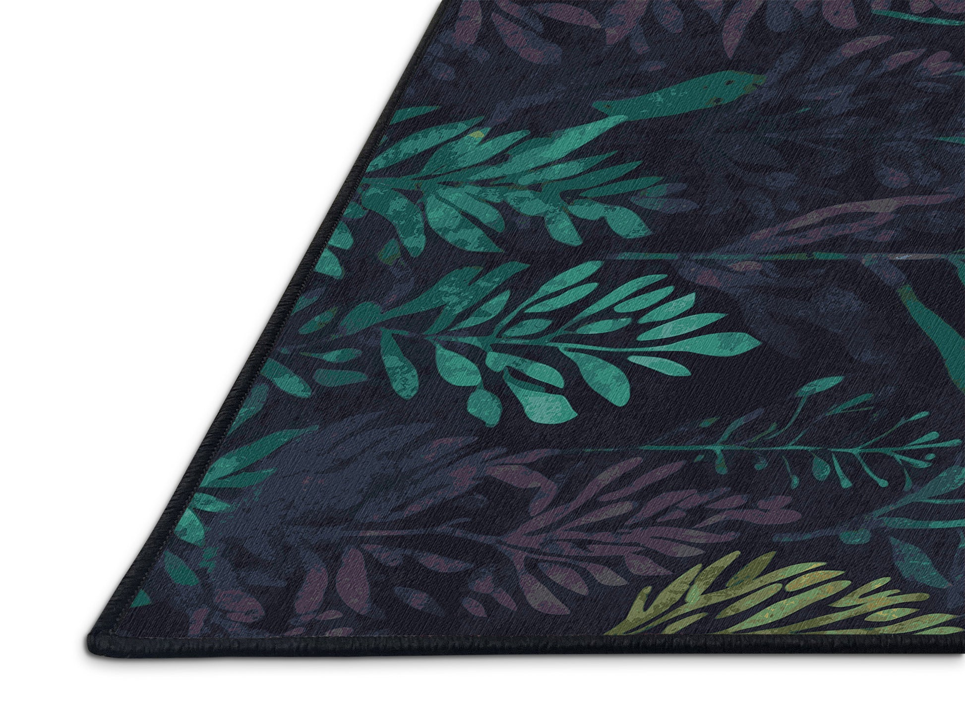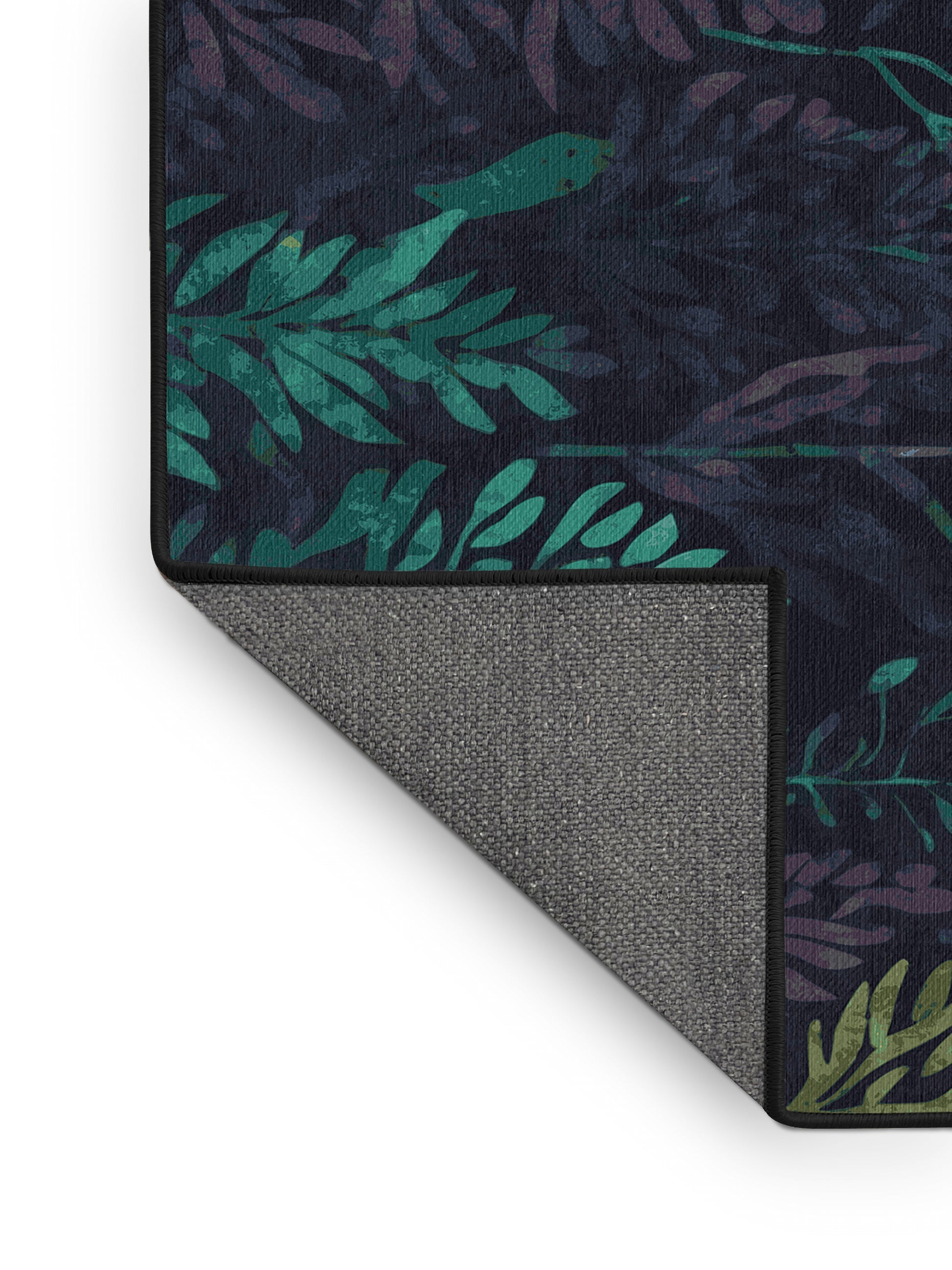 Starlit Bloom from the Mystic Grove collection captures the tranquil essence of lush forest canopies with its stunning Charcoal Blue color (A dark, muted blue with gray undertones, sleek and understated.), a calming tone in the Blue color family. Inspired by flourishing greenery and woodland shadows, this rug features intricate leaf patterns, organic shapes, and layered designs that evoke depth and elegance. Finished with Black serging a durable edge that enhances its artisanal look this rug is crafted from premium polyester and machine-made in the USA with imported materials. Perfect for creating a serene retreat in living rooms, calming bedrooms, or artistic reading corners, this design brings a harmonious blend of nature and refinement to your space. Available in multiple sizes, the Mystic Grove collection transforms your home into a tranquil haven, offering timeless beauty and versatile style for modern or nature-inspired interiors.