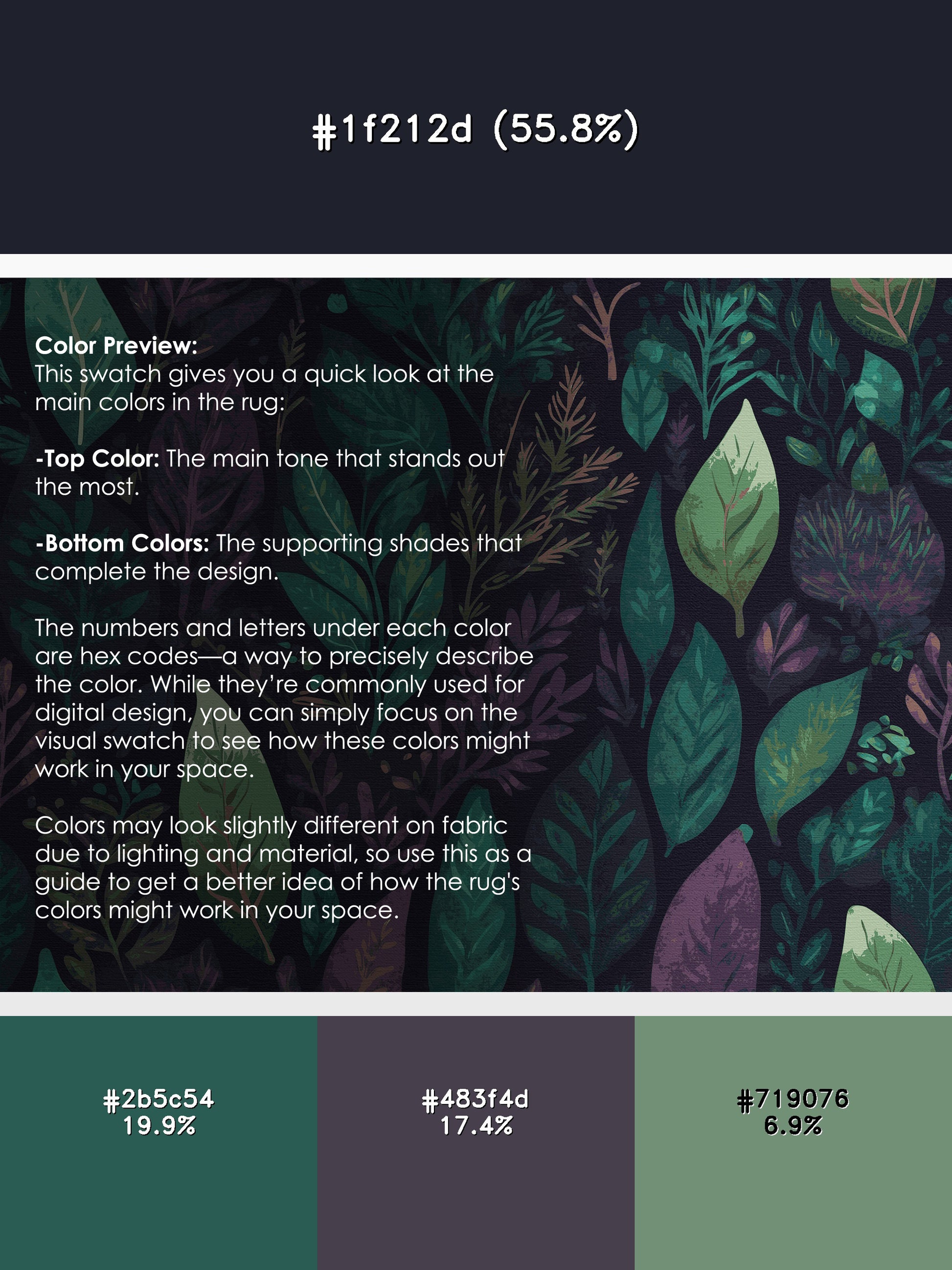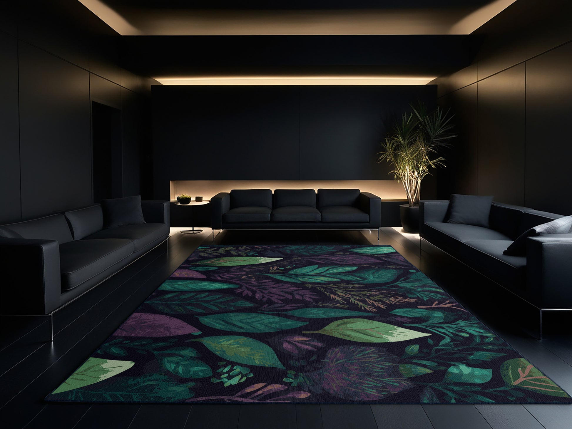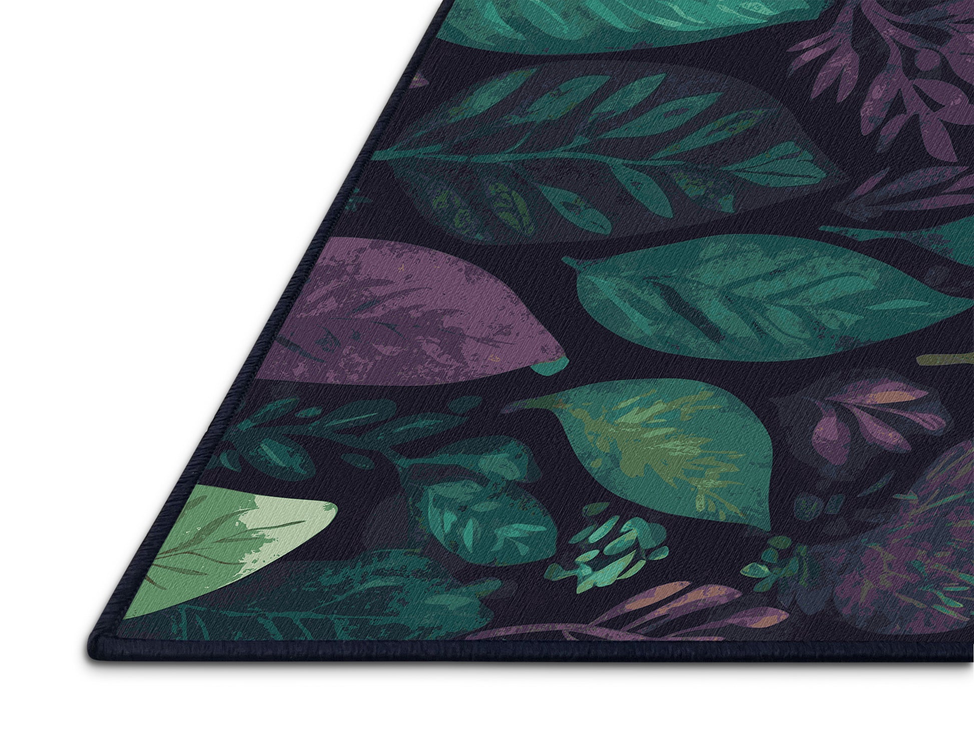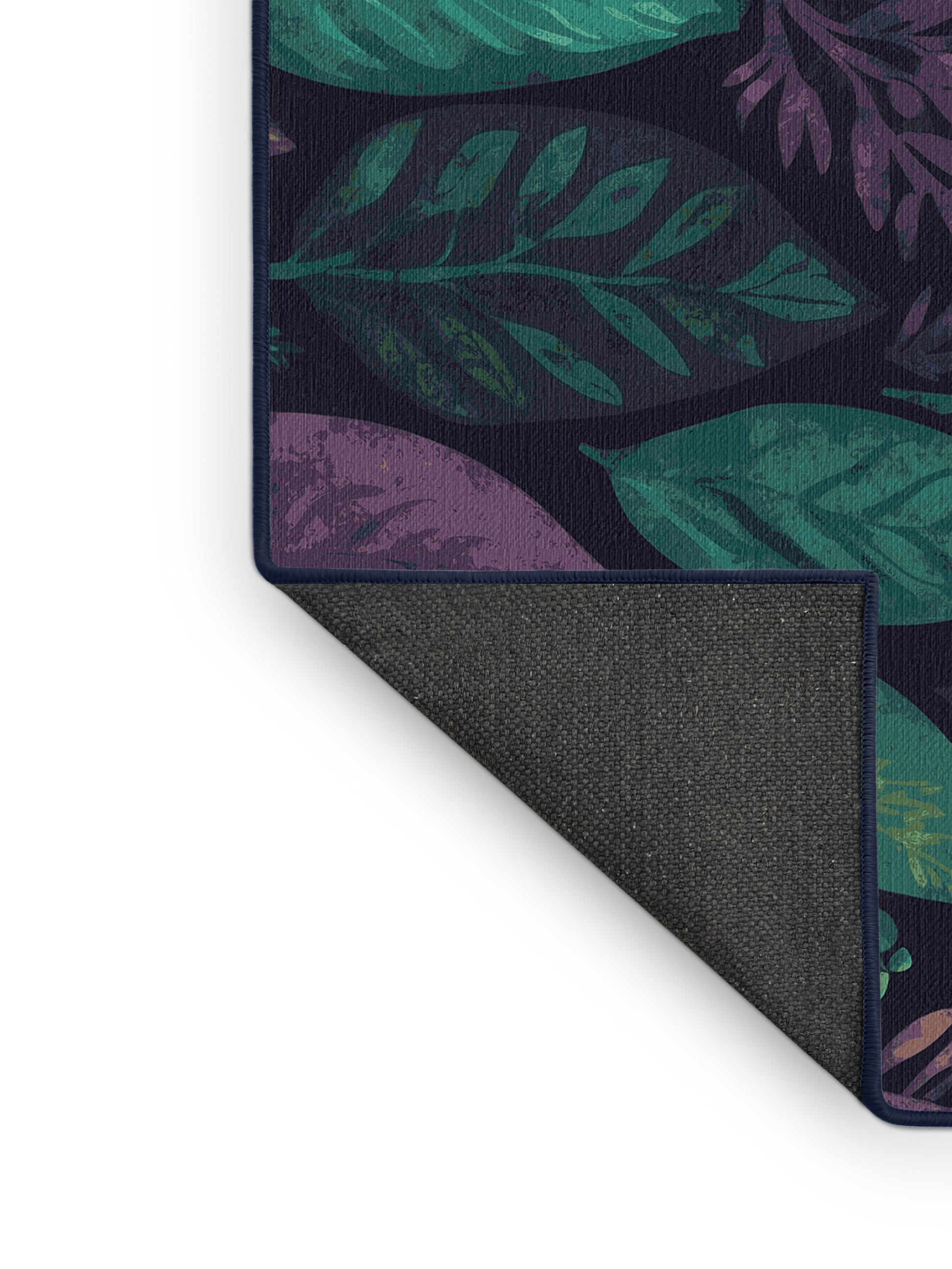 Starlit Canopy from the Mystic Grove collection captures the tranquil essence of lush forest canopies with its stunning Purple Navy color (A dark purple with strong navy undertones, sophisticated and deep.), a calming tone in the Purple color family. Inspired by flourishing greenery and woodland shadows, this rug features intricate leaf patterns, organic shapes, and layered designs that evoke depth and elegance. Finished with Navy serging a durable edge that enhances its artisanal look this rug is crafted from premium polyester and machine-made in the USA with imported materials. Perfect for creating a serene retreat in living rooms, calming bedrooms, or artistic reading corners, this design brings a harmonious blend of nature and refinement to your space. Available in multiple sizes, the Mystic Grove collection transforms your home into a tranquil haven, offering timeless beauty and versatile style for modern or nature-inspired interiors.