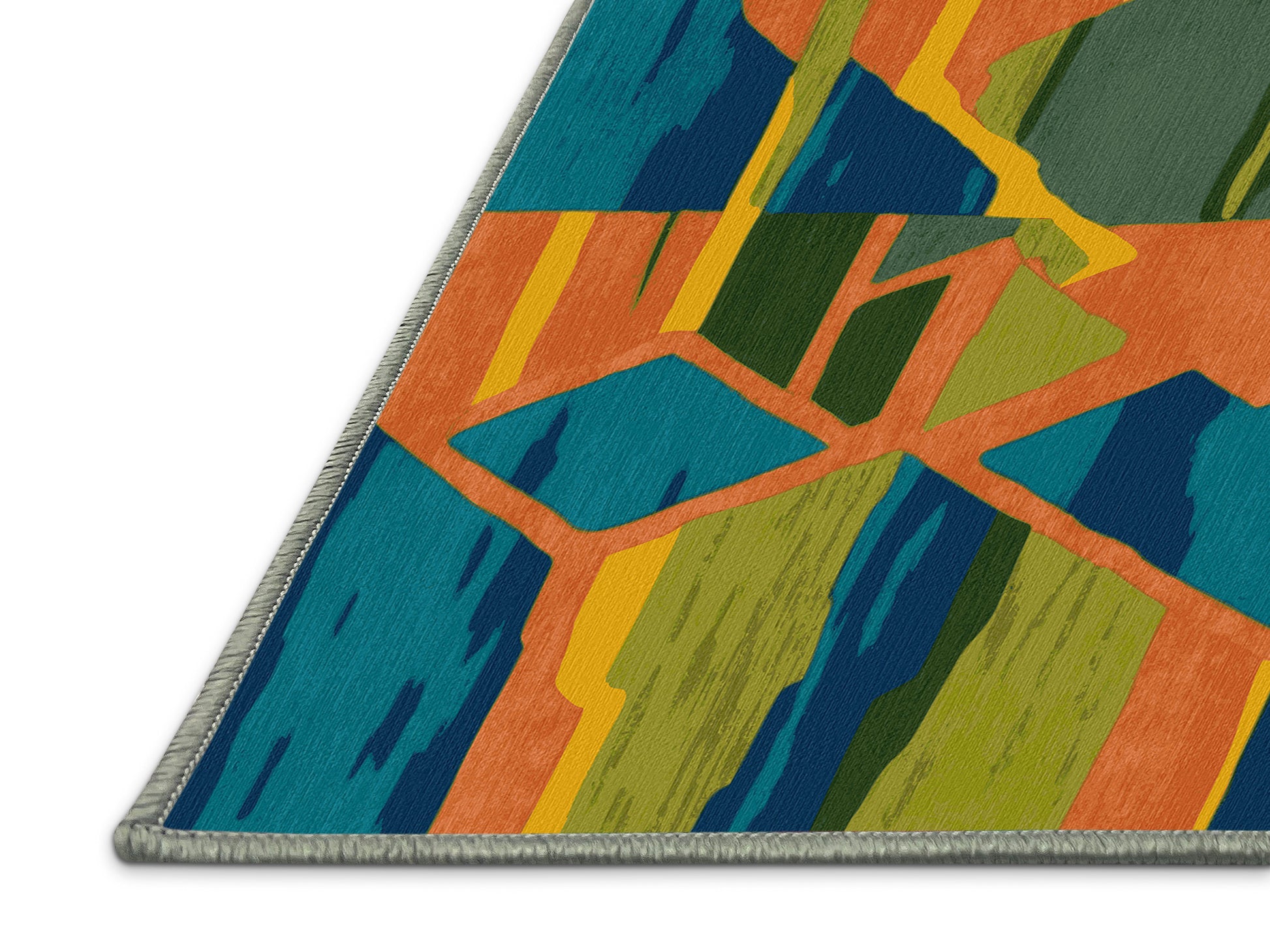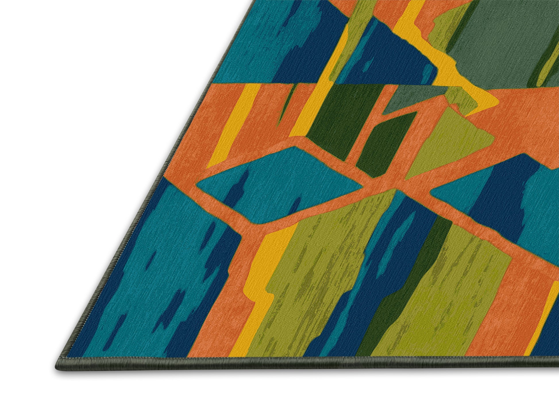 Sunkissed Horizon from the Vista Flow collection captures the rhythm and beauty of natural landscapes with its striking Charcoal Blue color (A dark, muted blue with gray undertones, sleek and understated.), a vibrant tone in the Blue color family. Featuring an artistic interplay of geometric shapes and organic lines, this rug evokes the fluidity of cascading hills and flowing vistas. Finished with SageGreen serging a durable edge that enhances its contemporary aesthetic this rug is crafted from premium polyester and machine-made in the USA with imported materials. Perfect for modern living rooms, dining spaces, creative home offices, or cozy bedrooms, this design blends artistic flair with versatile functionality. Available in multiple sizes, the Vista Flow collection transforms your home with dynamic patterns and timeless elegance, offering a creative touch to any decor.