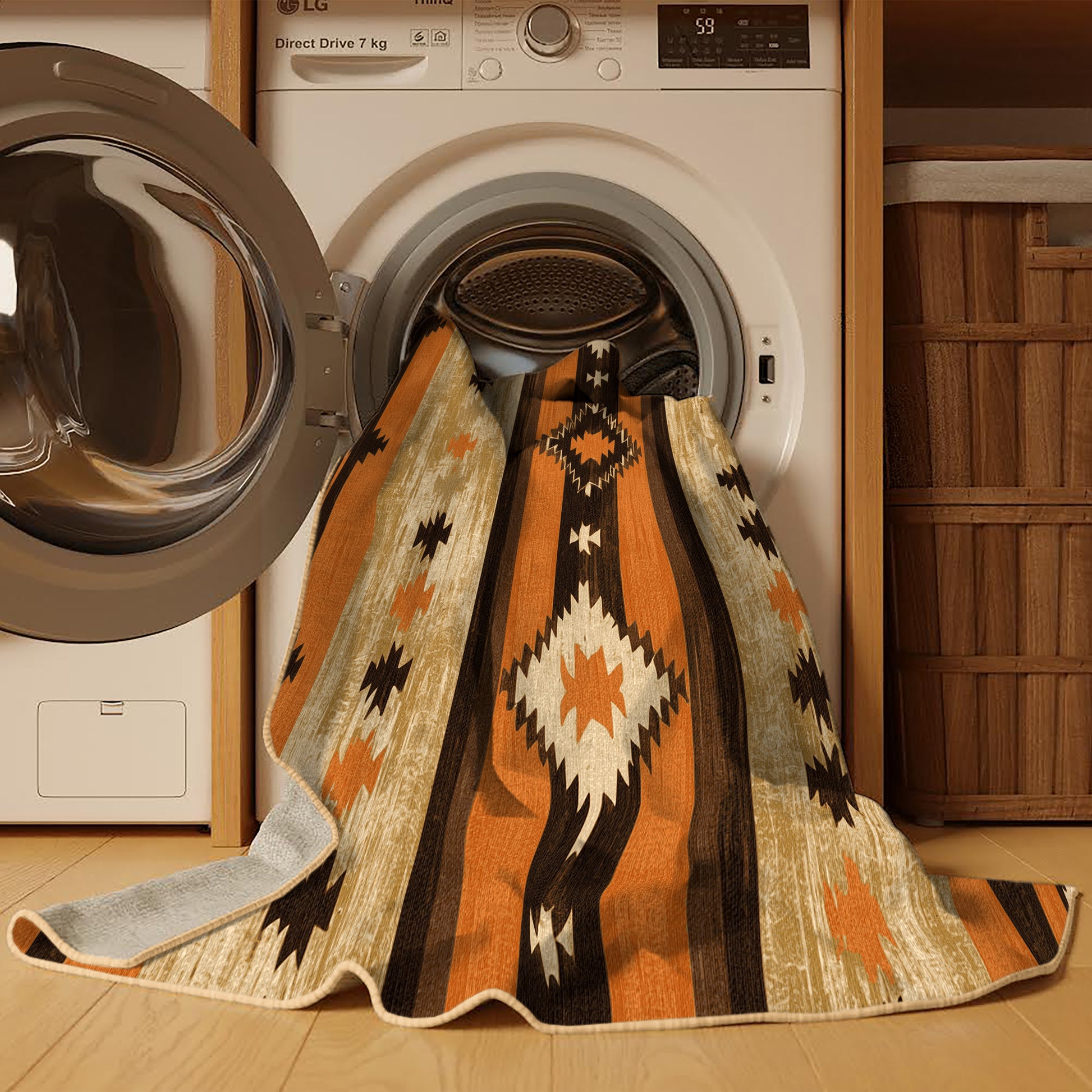 Sunlit Solstice from the Heritage Southwest collection captures the rugged charm of the American Southwest with its bold Petra Gold color (A golden orange with earthy undertones, inspired by desert landscapes.), a striking tone in the Orange color family. Inspired by traditional Navajo artistry and desert landscapes, this rug features geometric patterns and tribal-inspired designs that evoke cultural heritage and timeless beauty. Finished with LightBrown serging a durable stitched edge that prevents fraying and enhances its rustic appeal this rug is crafted from premium polyester and machine-made in the USA with imported materials. Perfect for grounding a living room, adding warmth to a bedroom, or enhancing a dining area, this design seamlessly complements rustic, bohemian, or modern interiors. Available in multiple sizes, the Heritage Southwest collection brings the spirit of the desert into your home with its warm tones and artisanal charm.