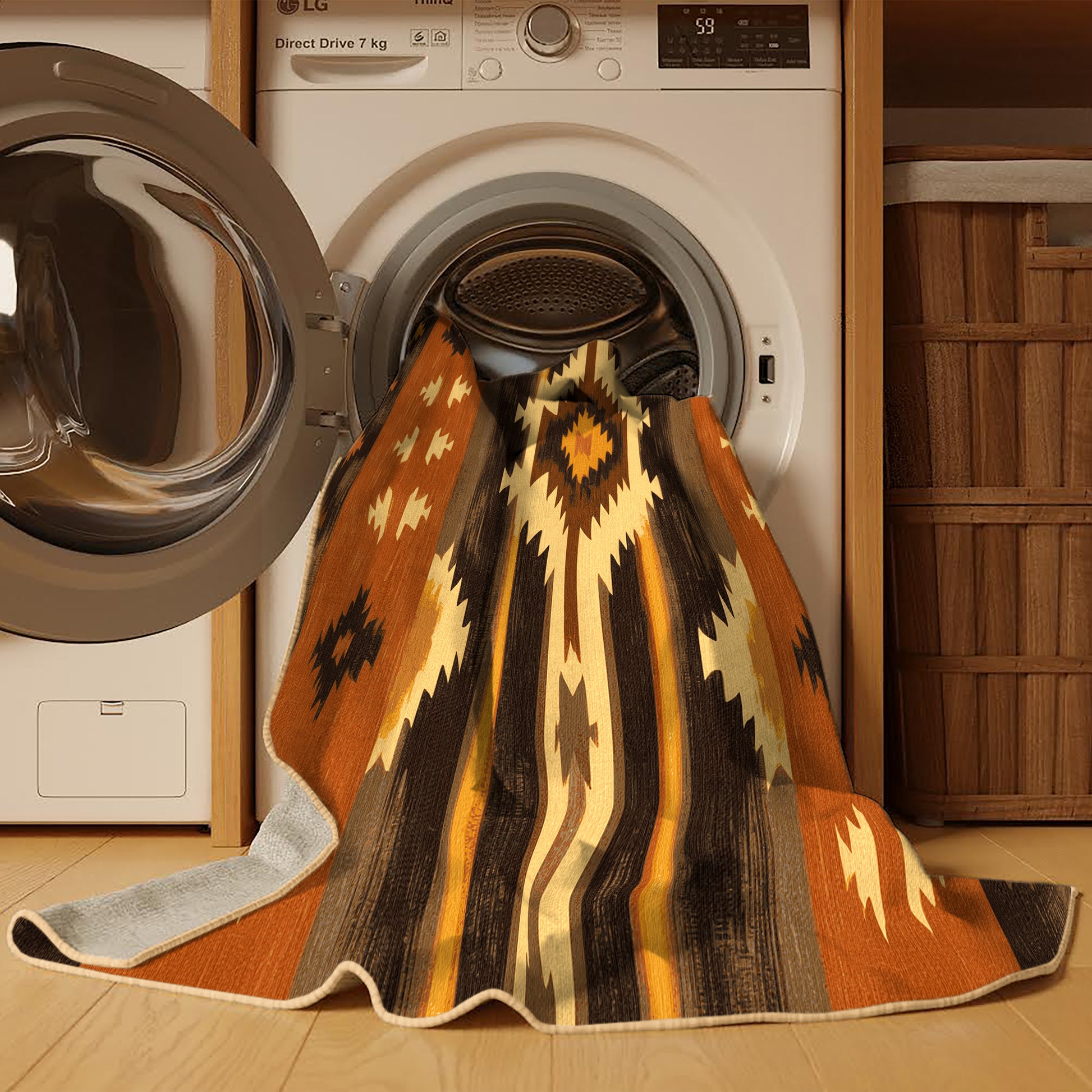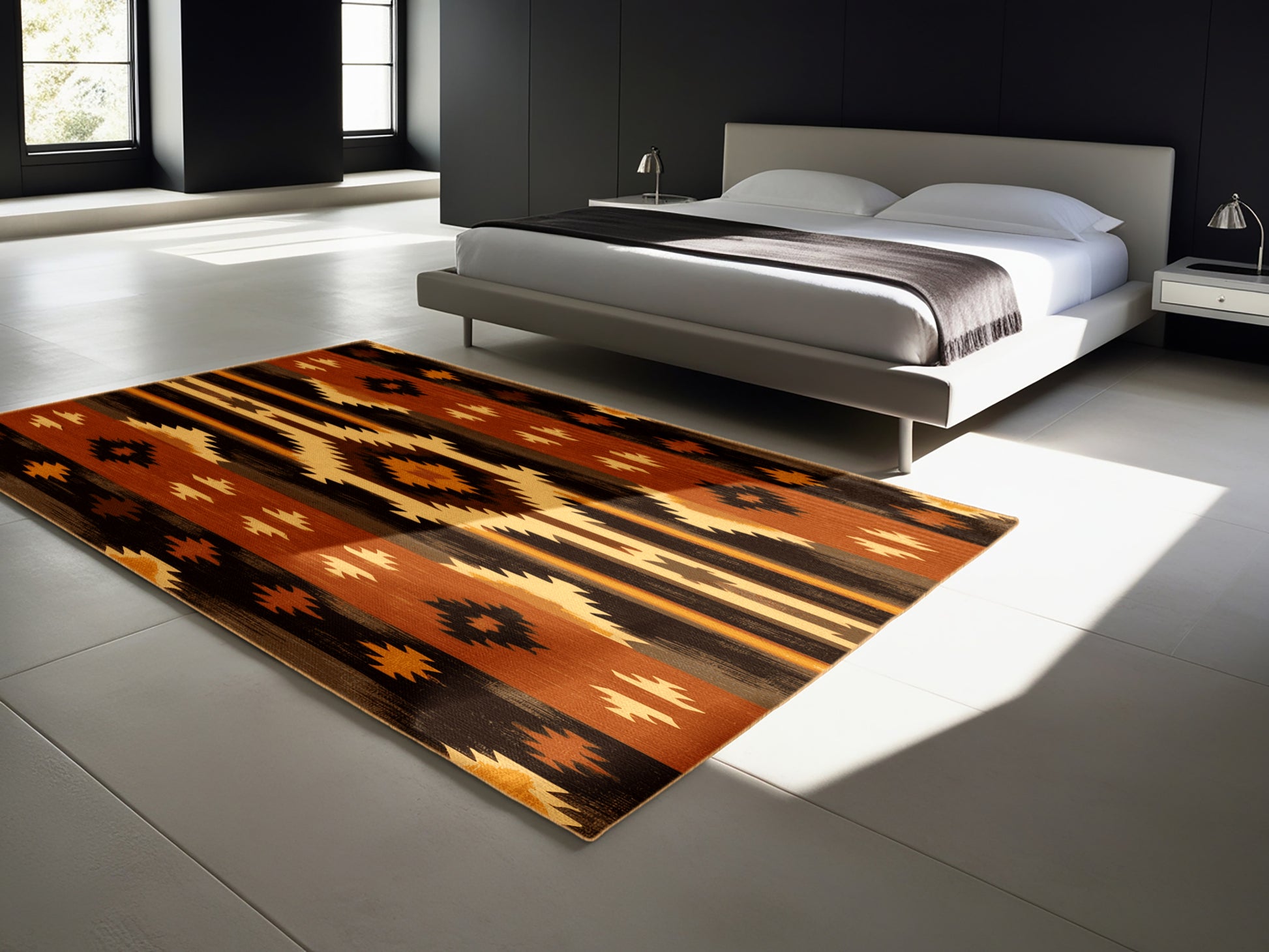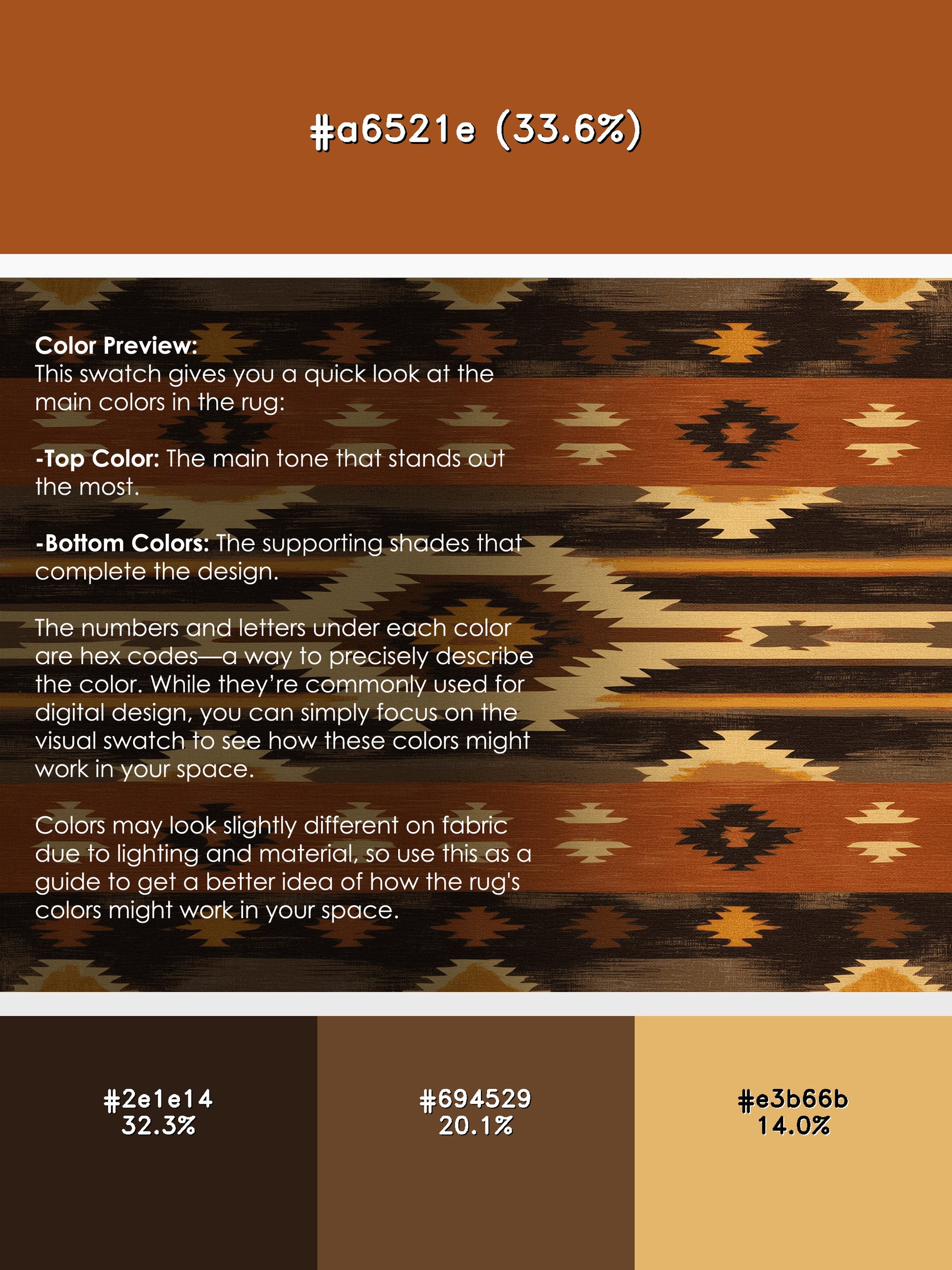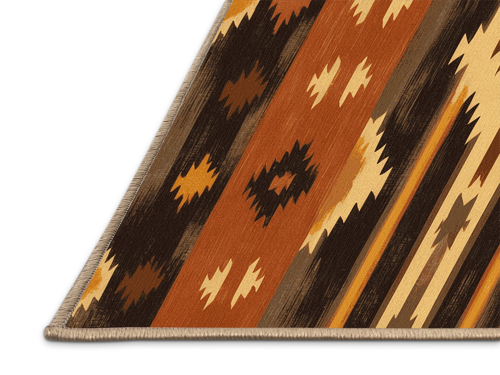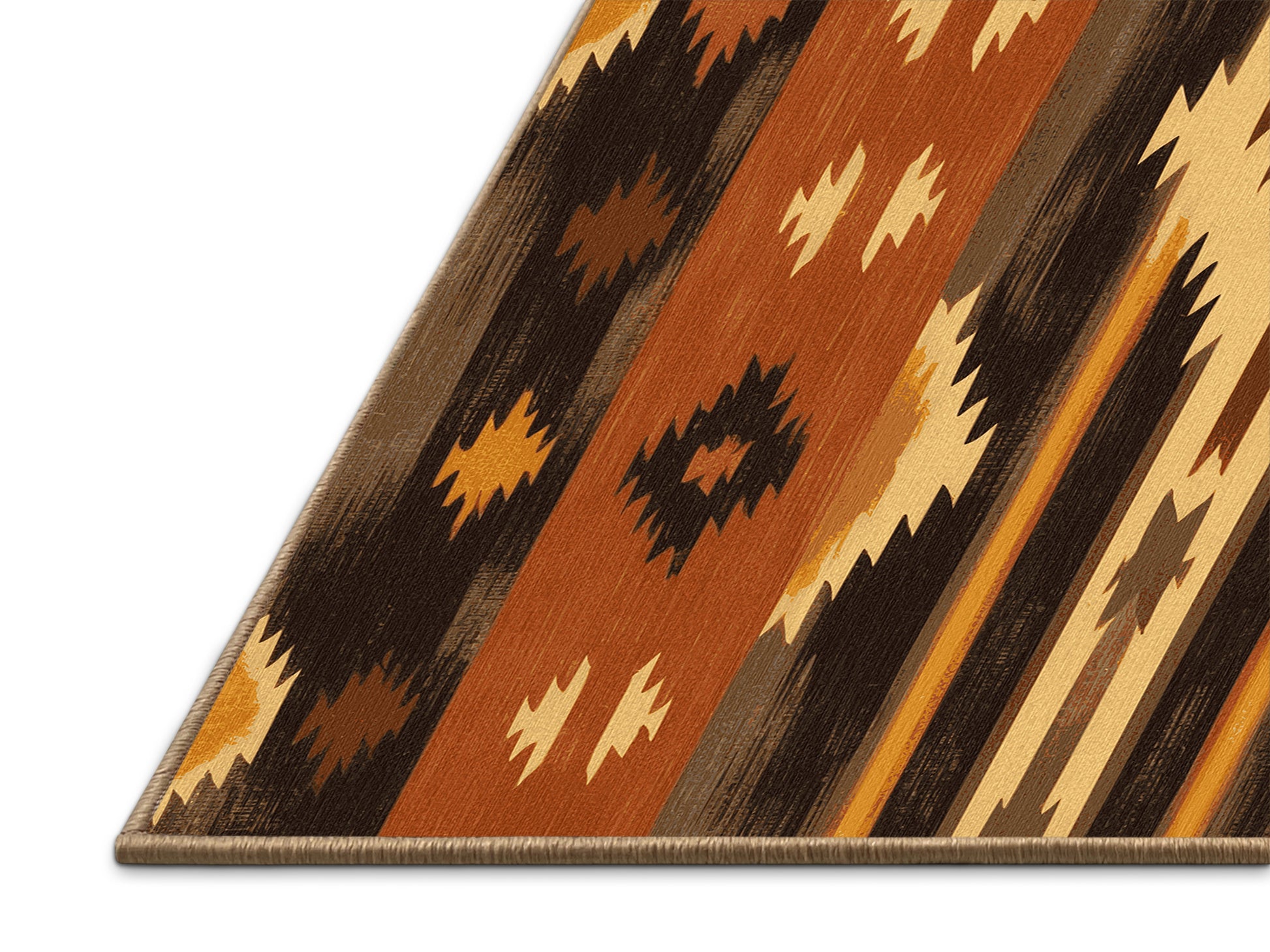 Terra Horizon from the Heritage Southwest collection captures the rugged charm of the American Southwest with its bold Sienna (W3C) color (A warm, reddish-brown inspired by natural pigments.), a striking tone in the Brown color family. Inspired by traditional Navajo artistry and desert landscapes, this rug features geometric patterns and tribal-inspired designs that evoke cultural heritage and timeless beauty. Finished with LightBrown serging a durable stitched edge that prevents fraying and enhances its rustic appeal this rug is crafted from premium polyester and machine-made in the USA with imported materials. Perfect for grounding a living room, adding warmth to a bedroom, or enhancing a dining area, this design seamlessly complements rustic, bohemian, or modern interiors. Available in multiple sizes, the Heritage Southwest collection brings the spirit of the desert into your home with its warm tones and artisanal charm.
