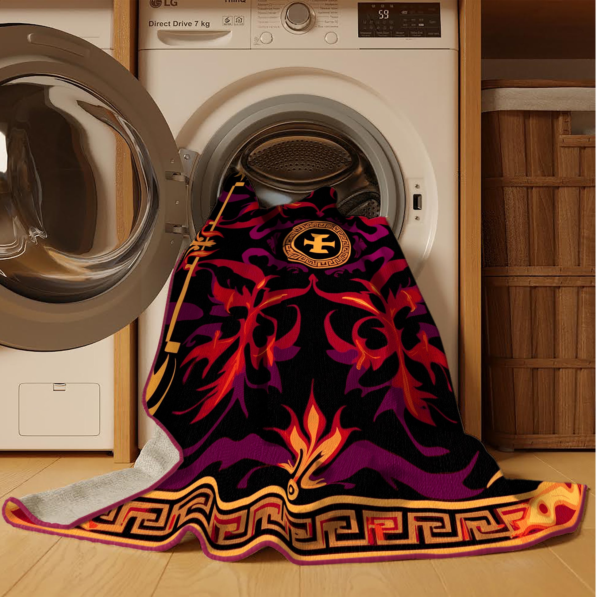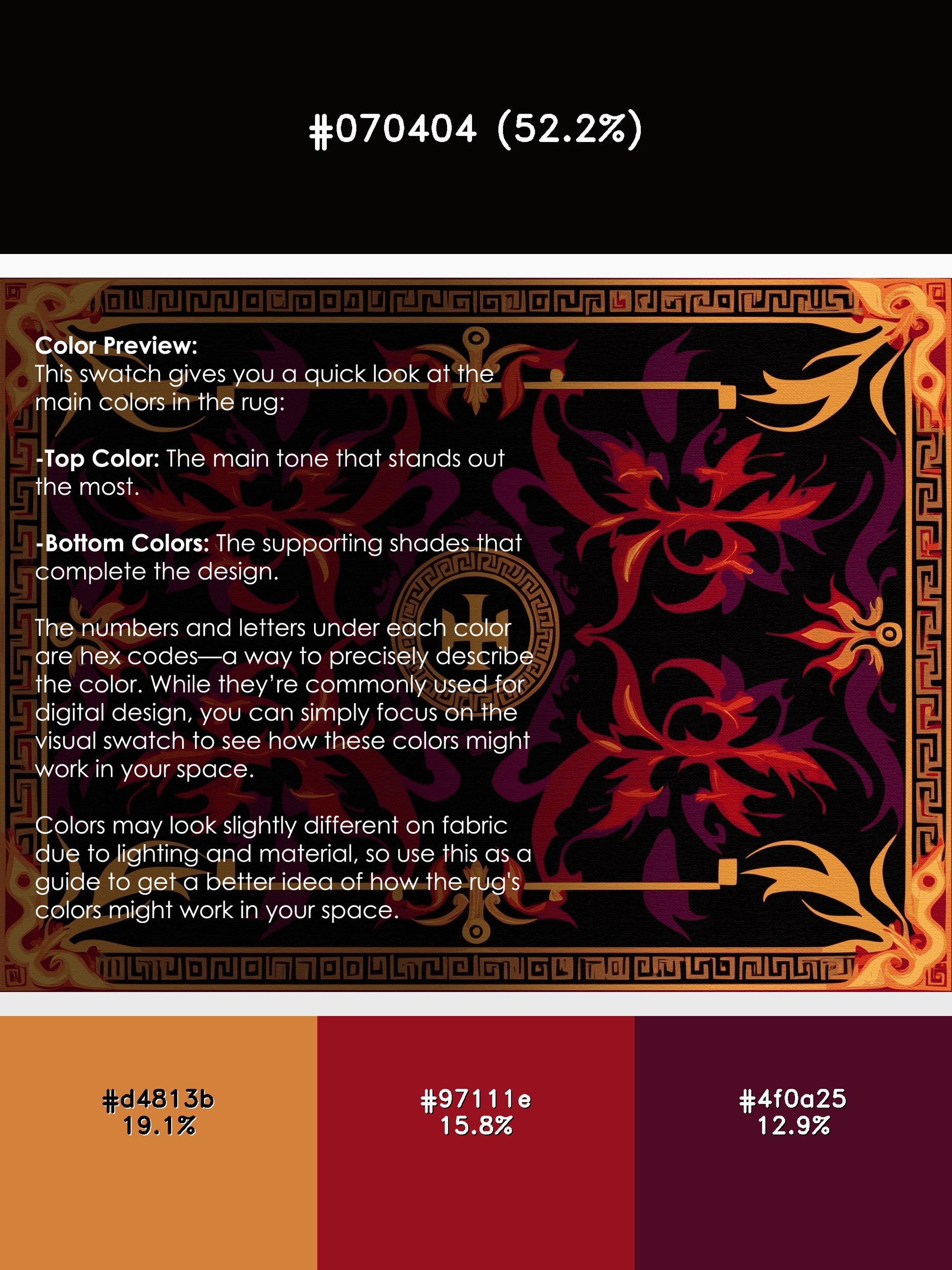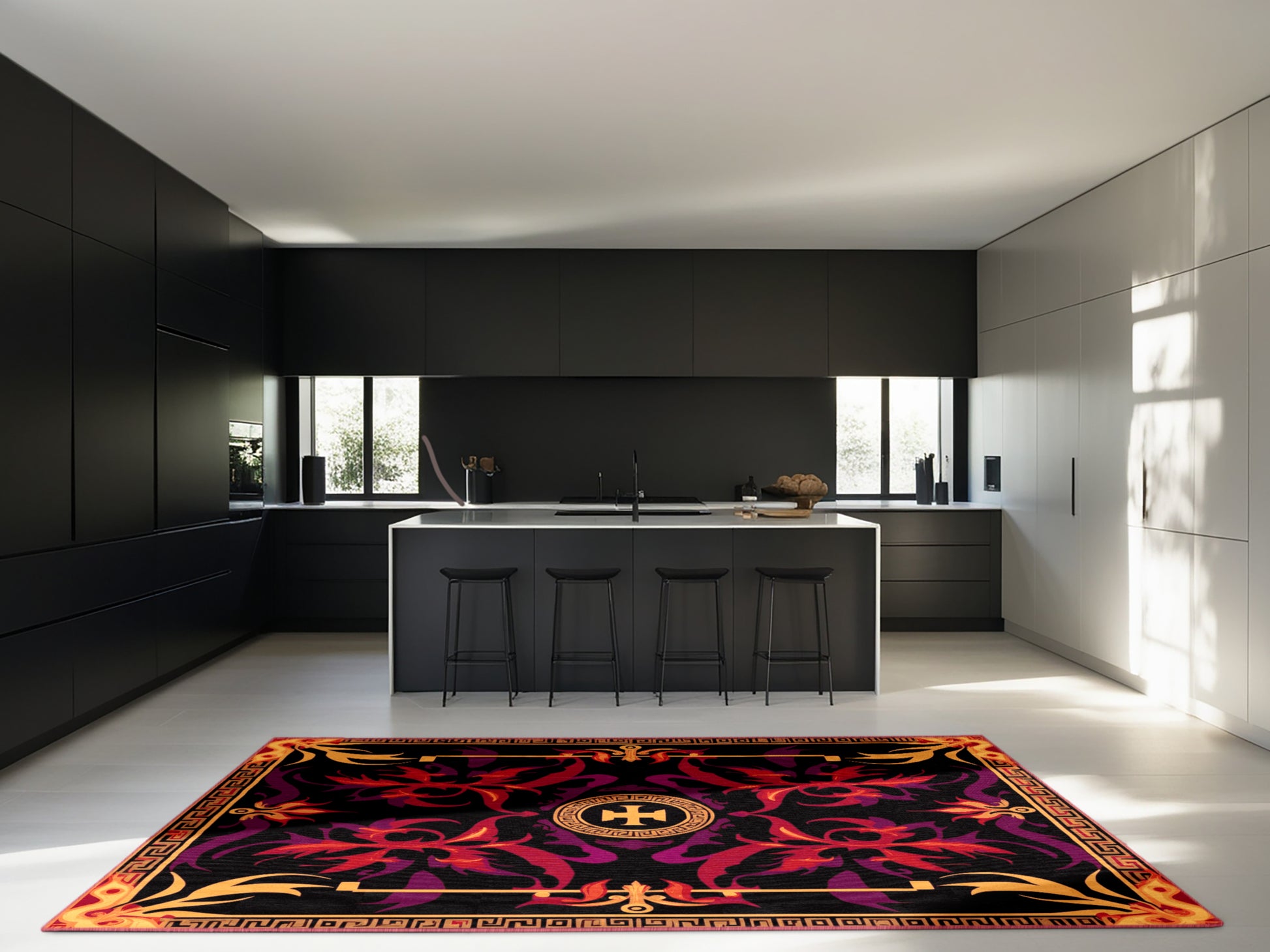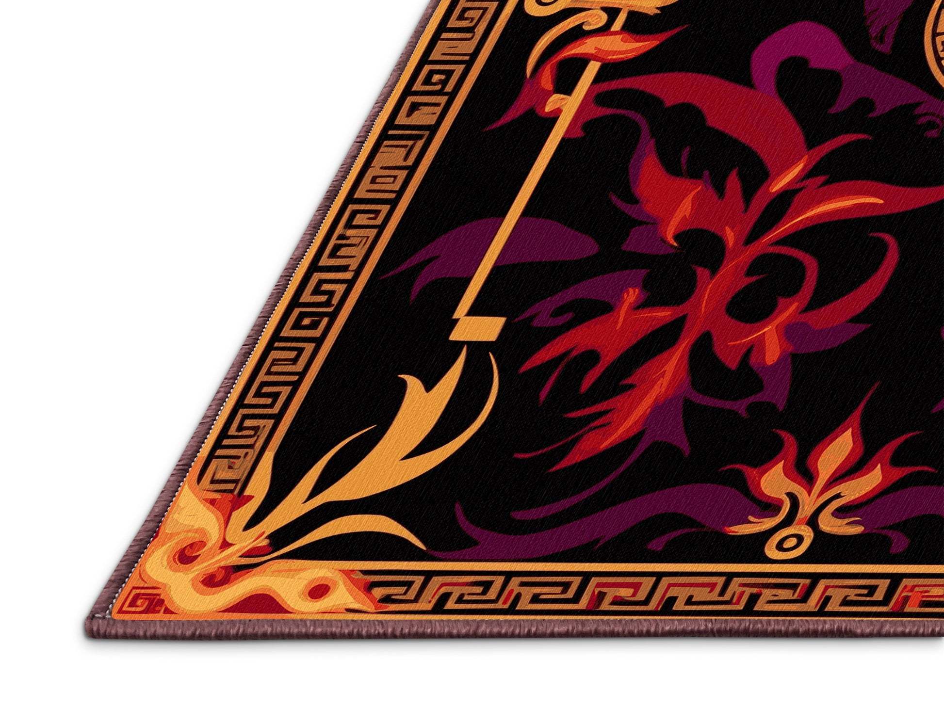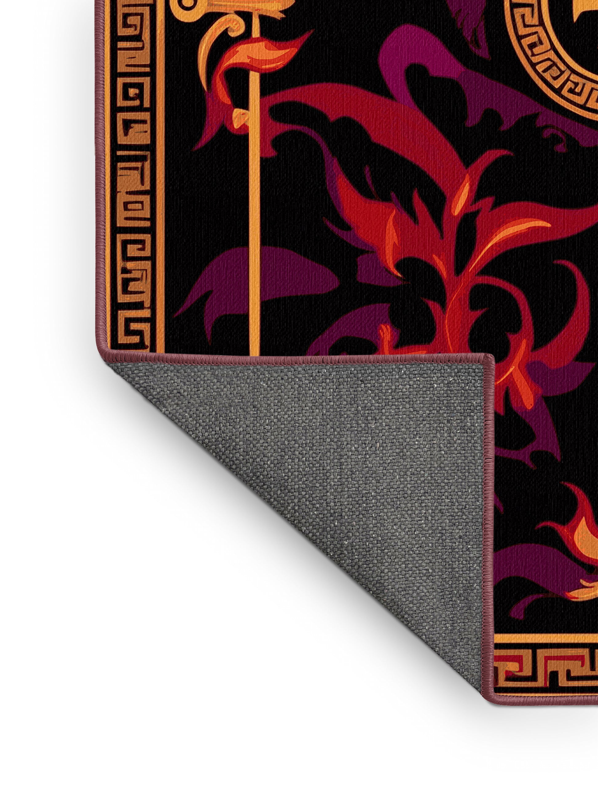Timeless Tapestry from the Gilded Mythos collection embodies the drama and opulence of ancient mythology with its captivating Purple Lily color (A deep purple inspired by the elegance of lily flowers.), a bold tone in the Purple color family. Featuring intricate patterns reminiscent of mythological symbols and lavish gilded accents, this rug is finished with Rose serging a durable stitched edge that prevents fraying and enhances its regal aesthetic. Crafted from premium polyester and machine-made in the USA with imported materials, it offers both timeless elegance and lasting durability. Perfect for grand living spaces, formal dining rooms, or statement entryways, this design weaves together sophistication and mystique to create a bold focal point. Available in multiple sizes, the Gilded Mythos collection transforms any room into a space of mythical grandeur and artistic allure.