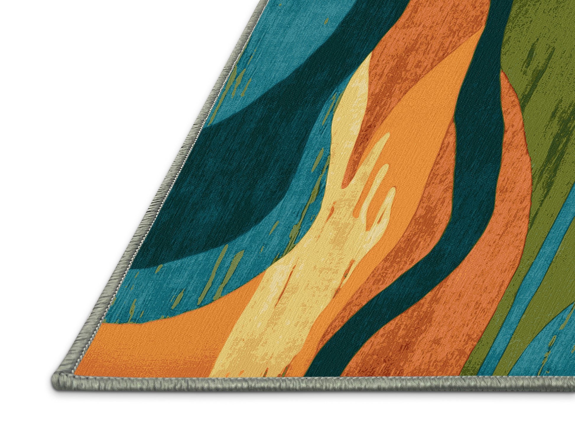 Tranquil Trails from the Vista Flow collection captures the rhythm and beauty of natural landscapes with its striking Hazel Green color (A medium green with earthy undertones, natural and grounding.), a vibrant tone in the Green color family. Featuring an artistic interplay of geometric shapes and organic lines, this rug evokes the fluidity of cascading hills and flowing vistas. Finished with SageGreen serging a durable edge that enhances its contemporary aesthetic this rug is crafted from premium polyester and machine-made in the USA with imported materials. Perfect for modern living rooms, dining spaces, creative home offices, or cozy bedrooms, this design blends artistic flair with versatile functionality. Available in multiple sizes, the Vista Flow collection transforms your home with dynamic patterns and timeless elegance, offering a creative touch to any decor.