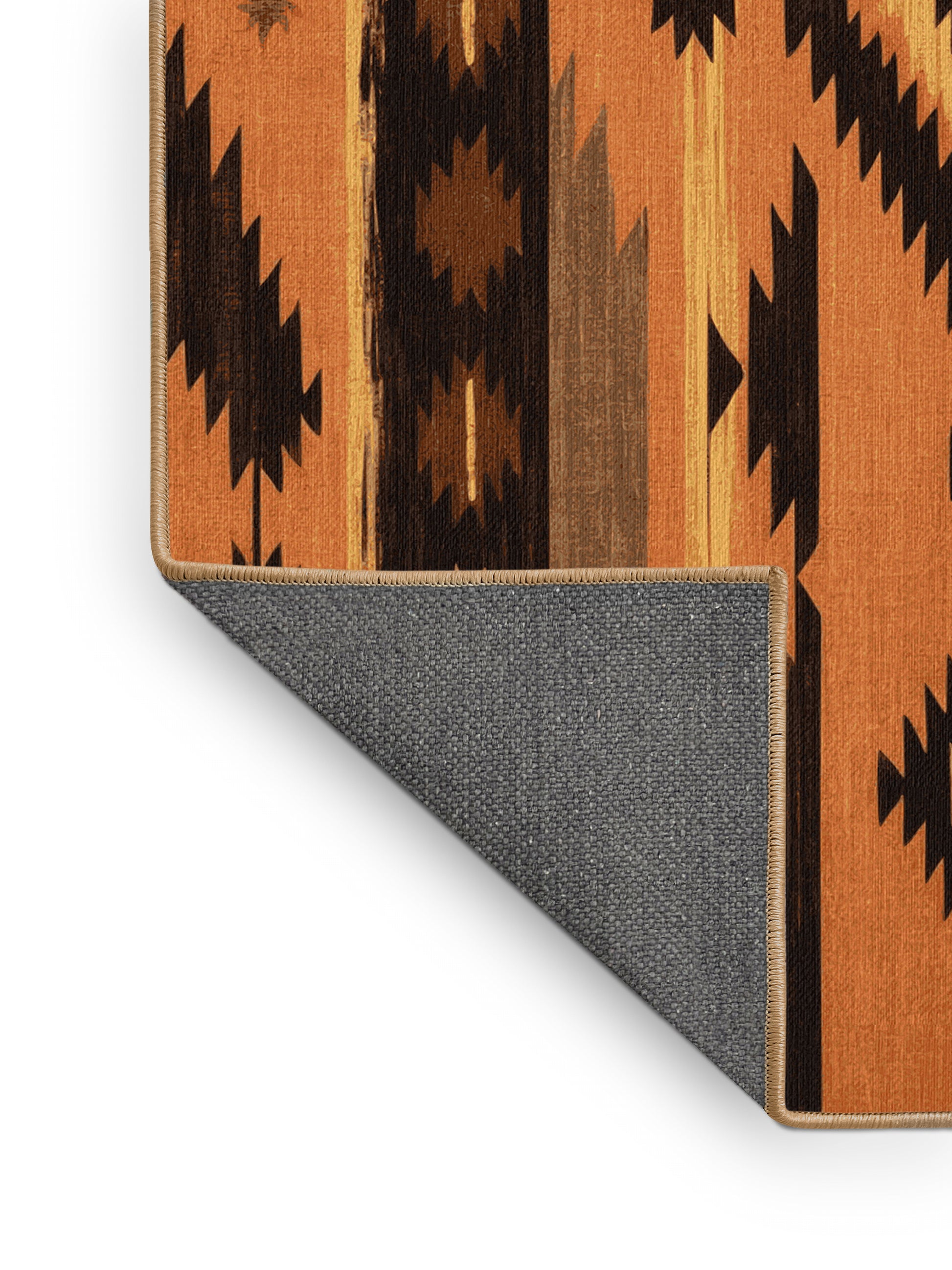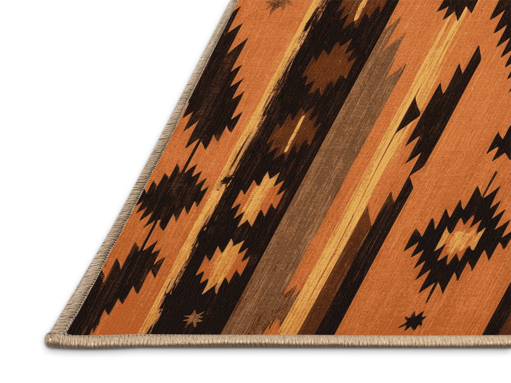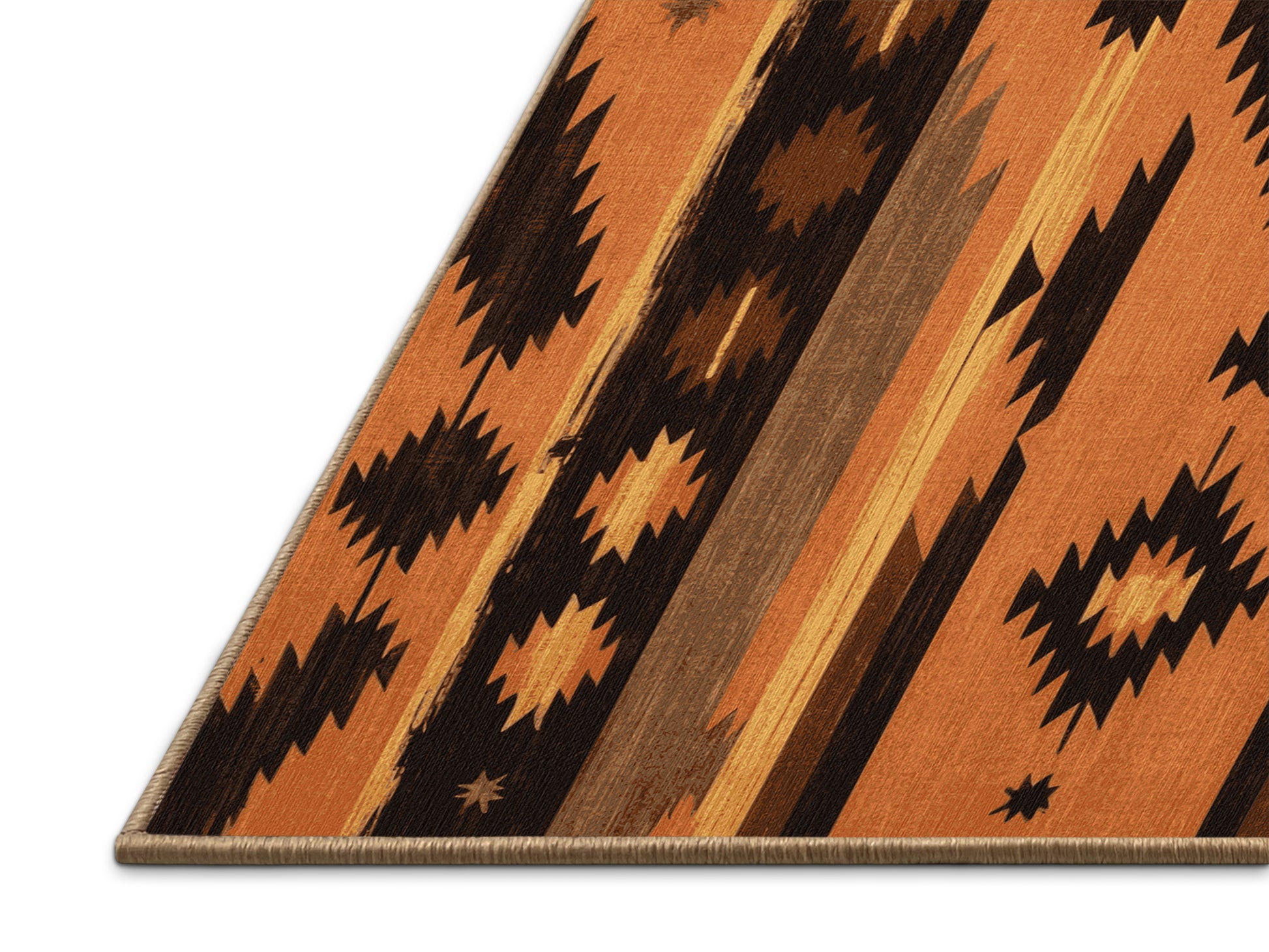 Turquoise Legacy from the Heritage Southwest collection captures the rugged charm of the American Southwest with its bold Tiger Orange color (A bright and bold orange with a tiger-inspired vibrancy.), a striking tone in the Orange color family. Inspired by traditional Navajo artistry and desert landscapes, this rug features geometric patterns and tribal-inspired designs that evoke cultural heritage and timeless beauty. Finished with LightBrown serging a durable stitched edge that prevents fraying and enhances its rustic appeal this rug is crafted from premium polyester and machine-made in the USA with imported materials. Perfect for grounding a living room, adding warmth to a bedroom, or enhancing a dining area, this design seamlessly complements rustic, bohemian, or modern interiors. Available in multiple sizes, the Heritage Southwest collection brings the spirit of the desert into your home with its warm tones and artisanal charm.