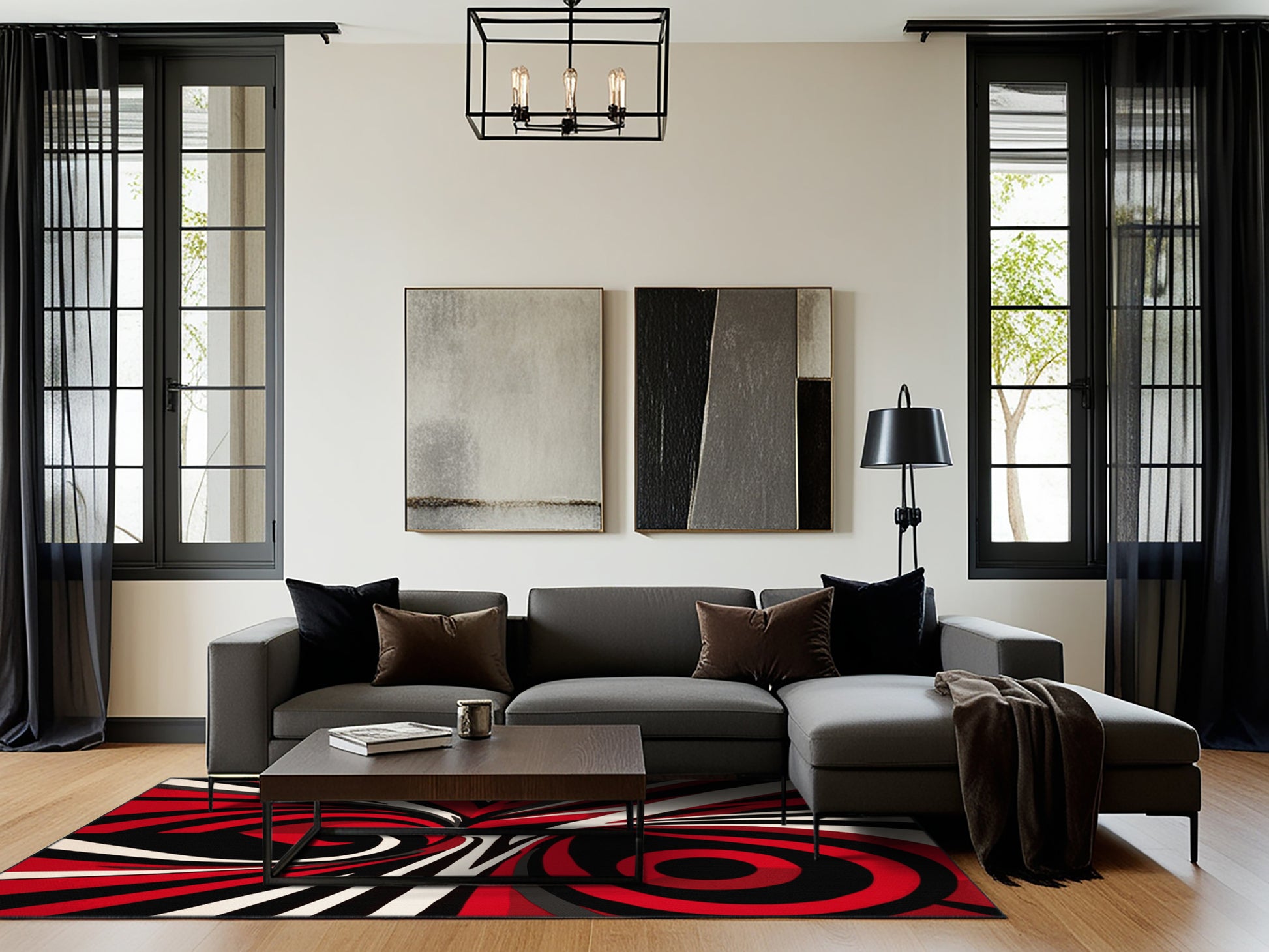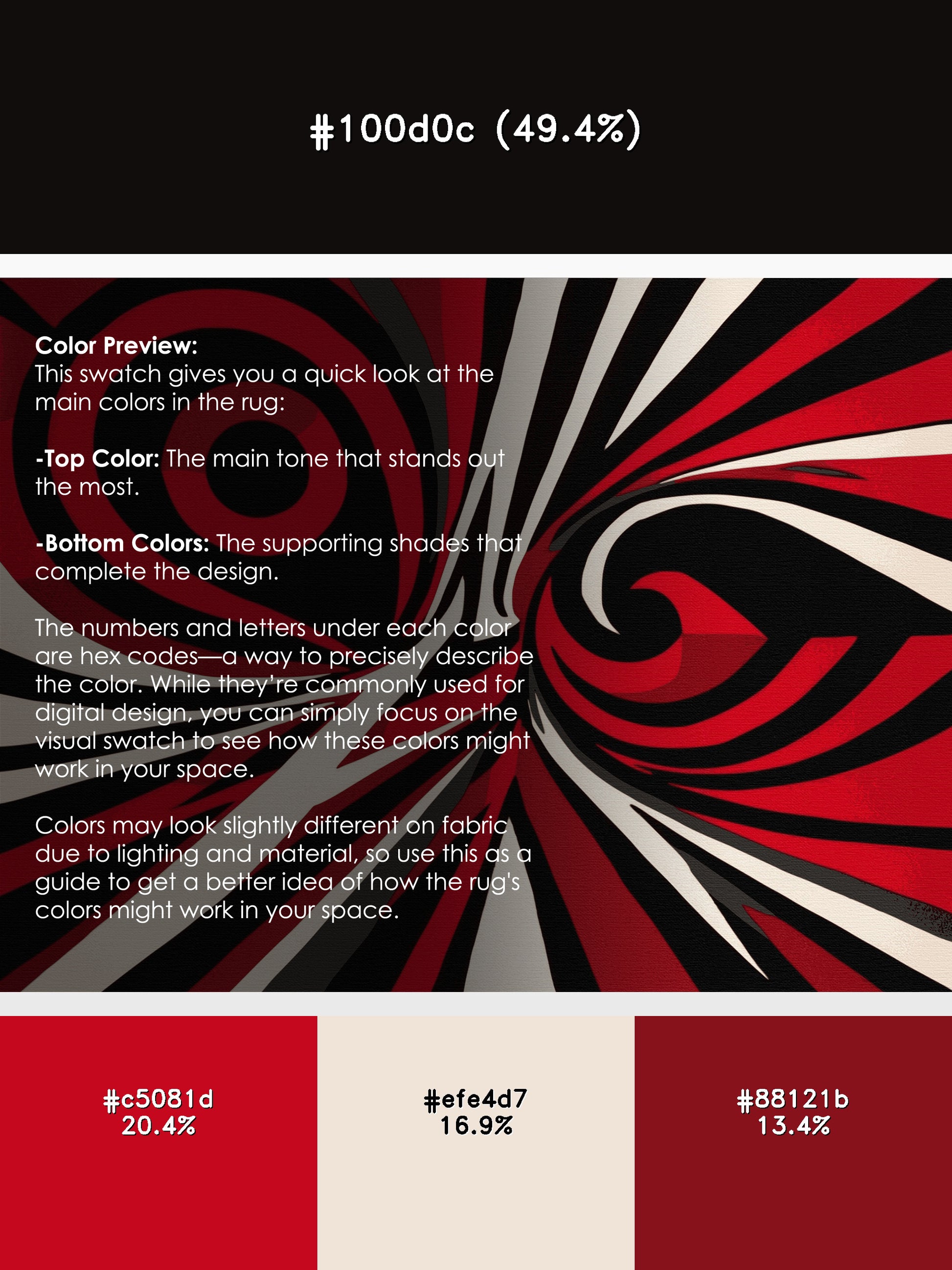 Twilight Eruption from the Scarlet Surrealism collection brings bold artistic energy to your space with its captivating Oil color (A dark, warm black with a reddish tint, adding depth and richness.), a dramatic tone in the Black color family. Inspired by surrealist artistry, this rug features abstract patterns with flowing curves and dynamic contrasts, creating a sense of motion and depth. Finished with Black serging a sleek edge that enhances its modern aesthetic this rug is crafted from premium polyester and machine-made in the USA with imported materials. Perfect for living rooms, statement hallways, or creative spaces, this design blends avant-garde elegance with everyday functionality. Available in multiple sizes, the Scarlet Surrealism collection transforms your home into a showcase of bold sophistication and unique style.
