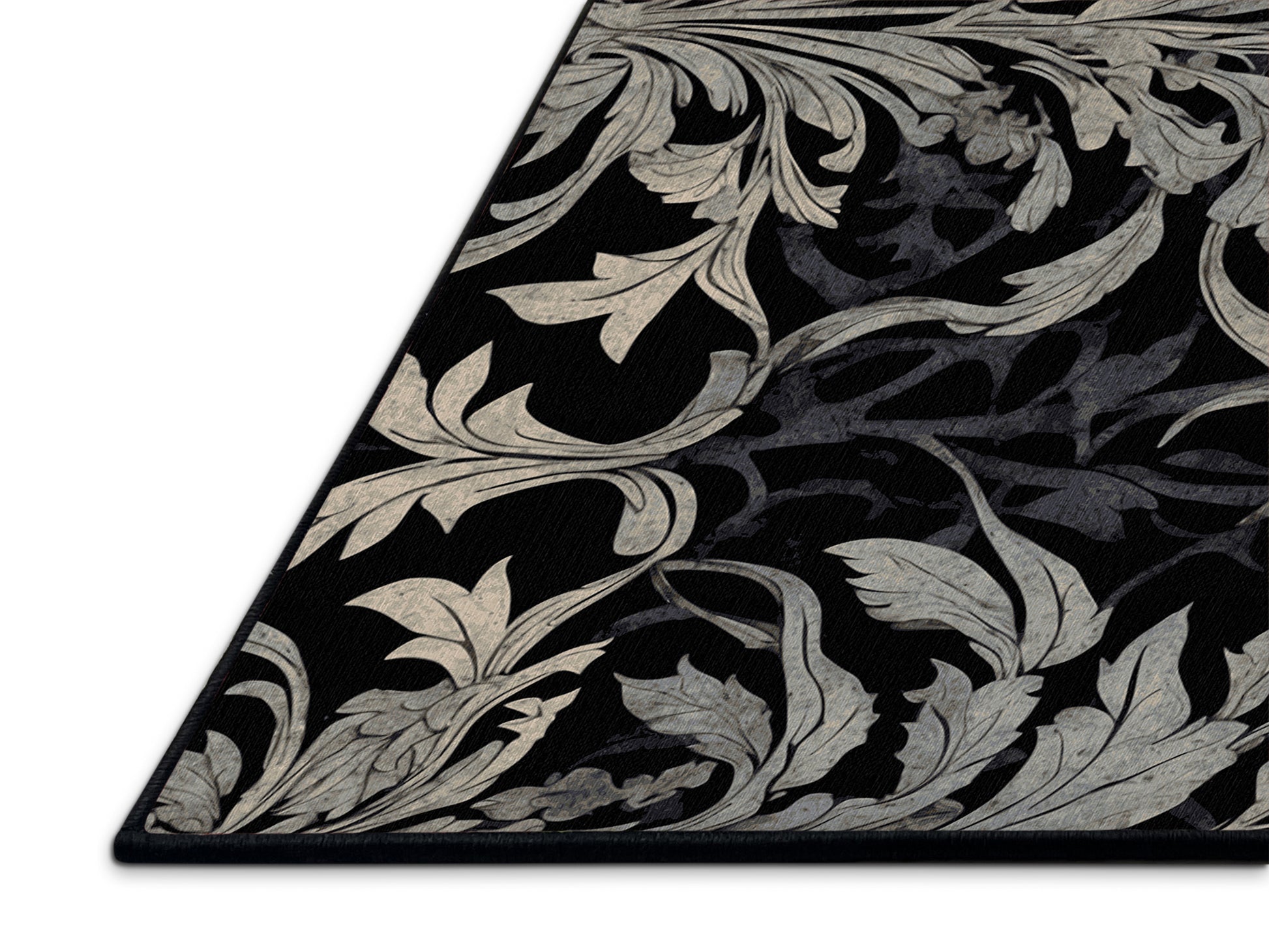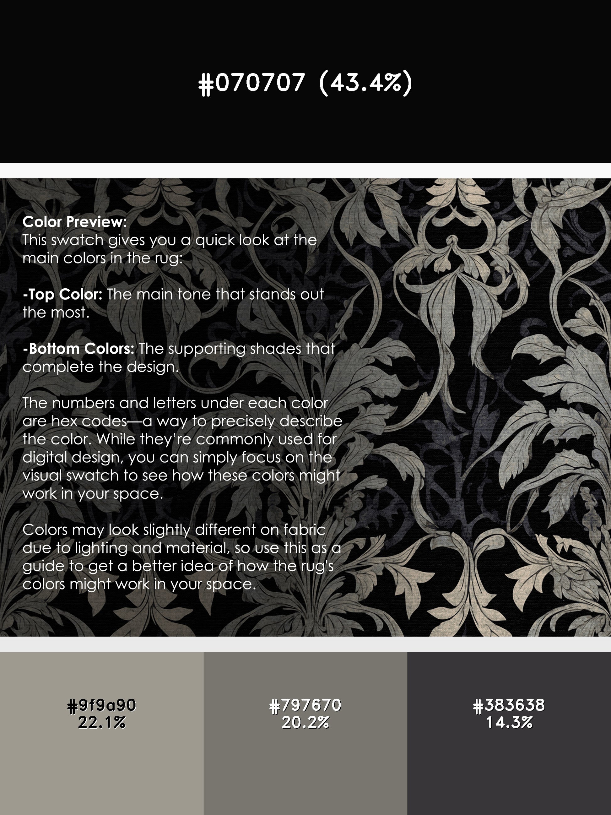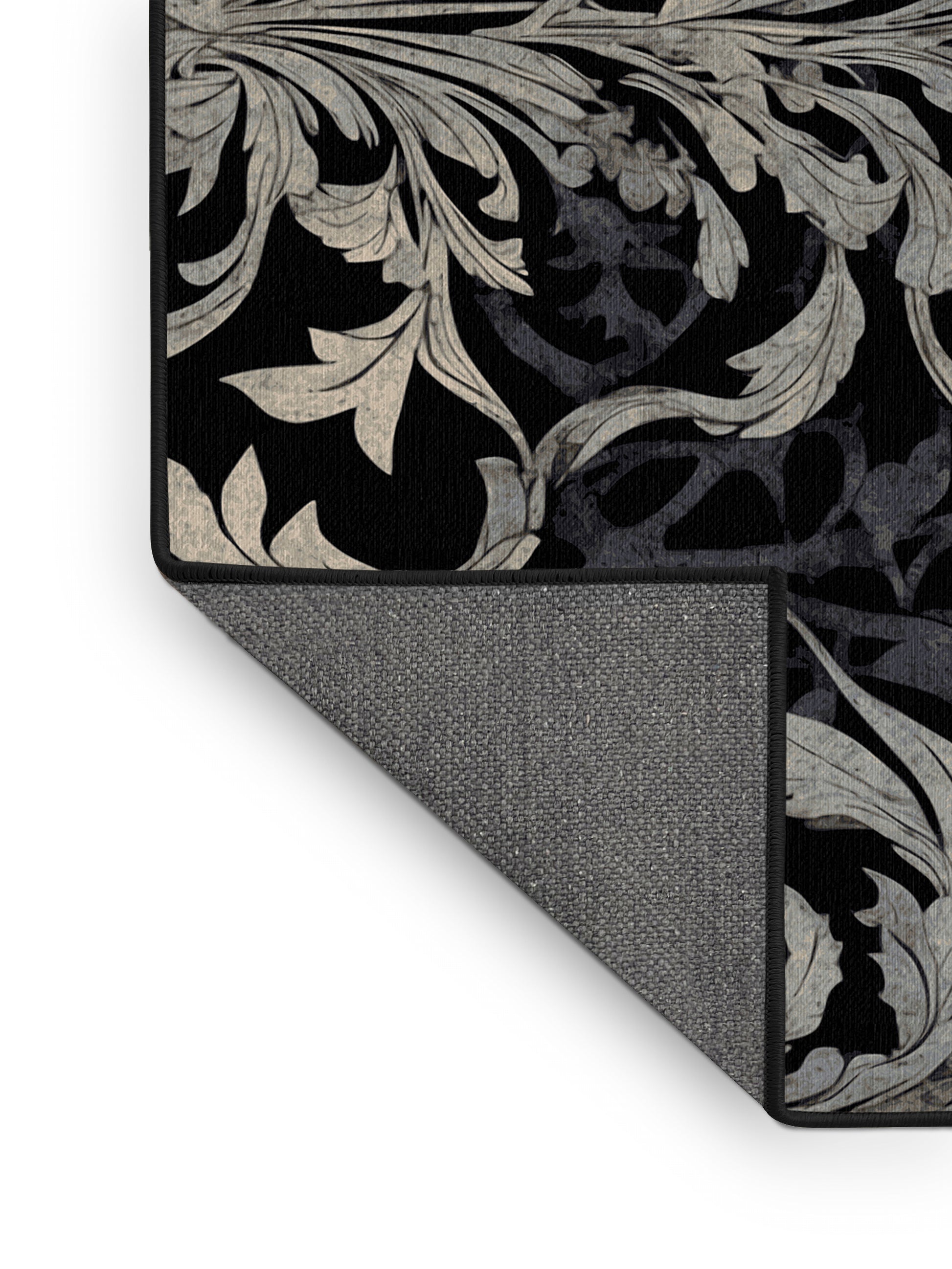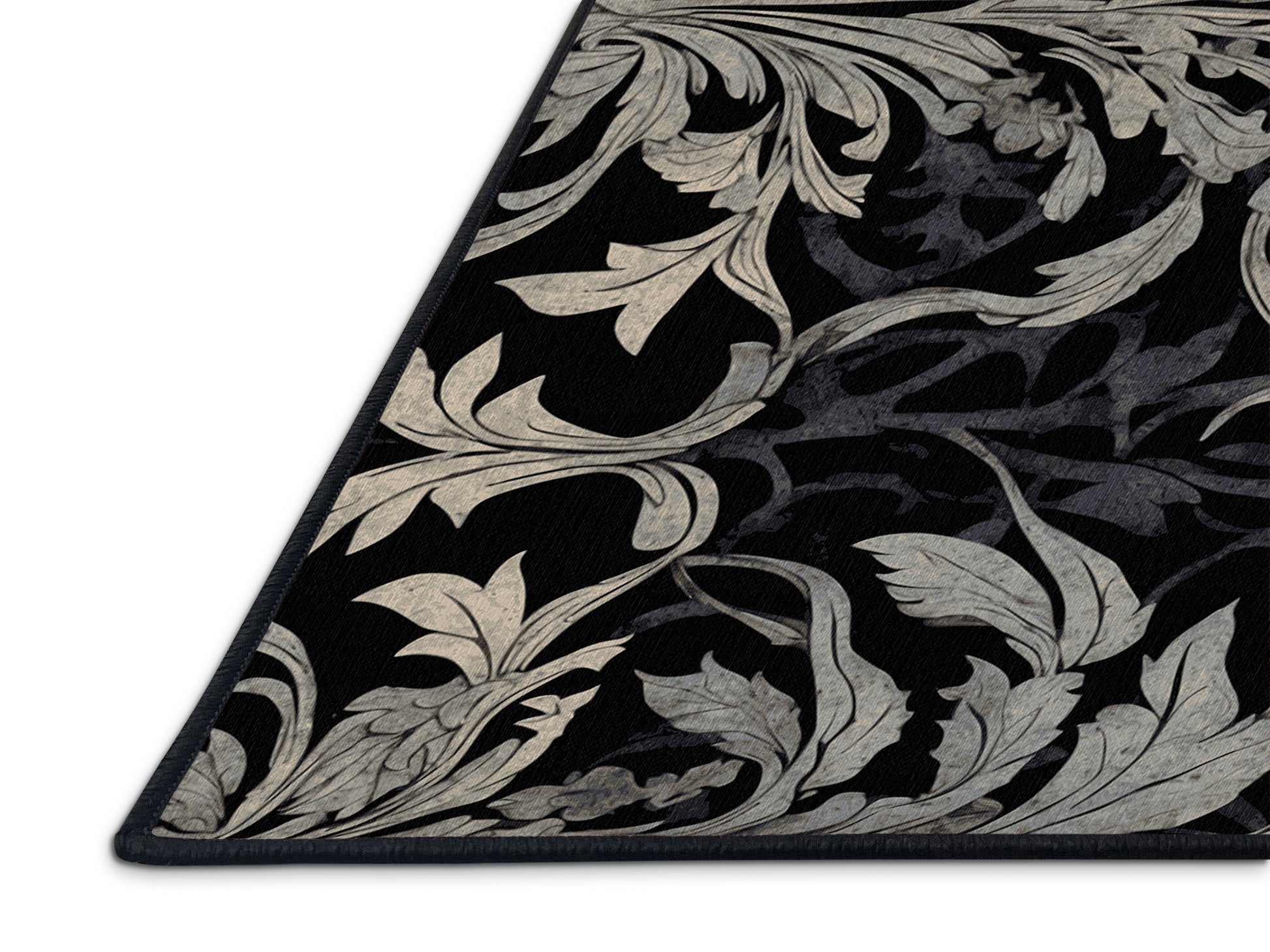 Twilight Glow from the Nocturne Elegance collection exudes timeless sophistication with its captivating Dark Slate color (A dark slate blue with a cool and moody aesthetic.), a rich tone in the Blue color family. Featuring intricate baroque-inspired patterns and swirling vine designs, this rug creates a sense of depth and refined elegance. Finished with Black serging a durable edge that enhances its luxurious aesthetic this rug is crafted from premium polyester and machine-made in the USA with imported materials. Perfect for formal dining rooms, chic living areas, or cozy bedrooms, this design balances bold drama with subtle charm, complementing both contemporary and traditional interiors. Available in multiple sizes, the Nocturne Elegance collection transforms your home into a haven of understated grandeur and classic refinement.