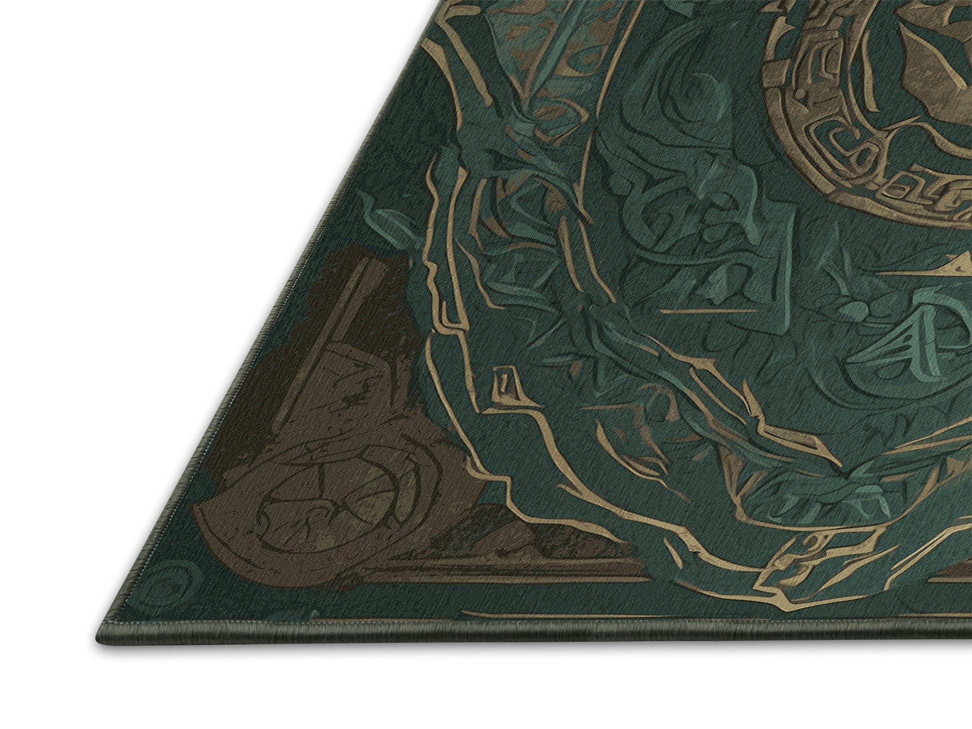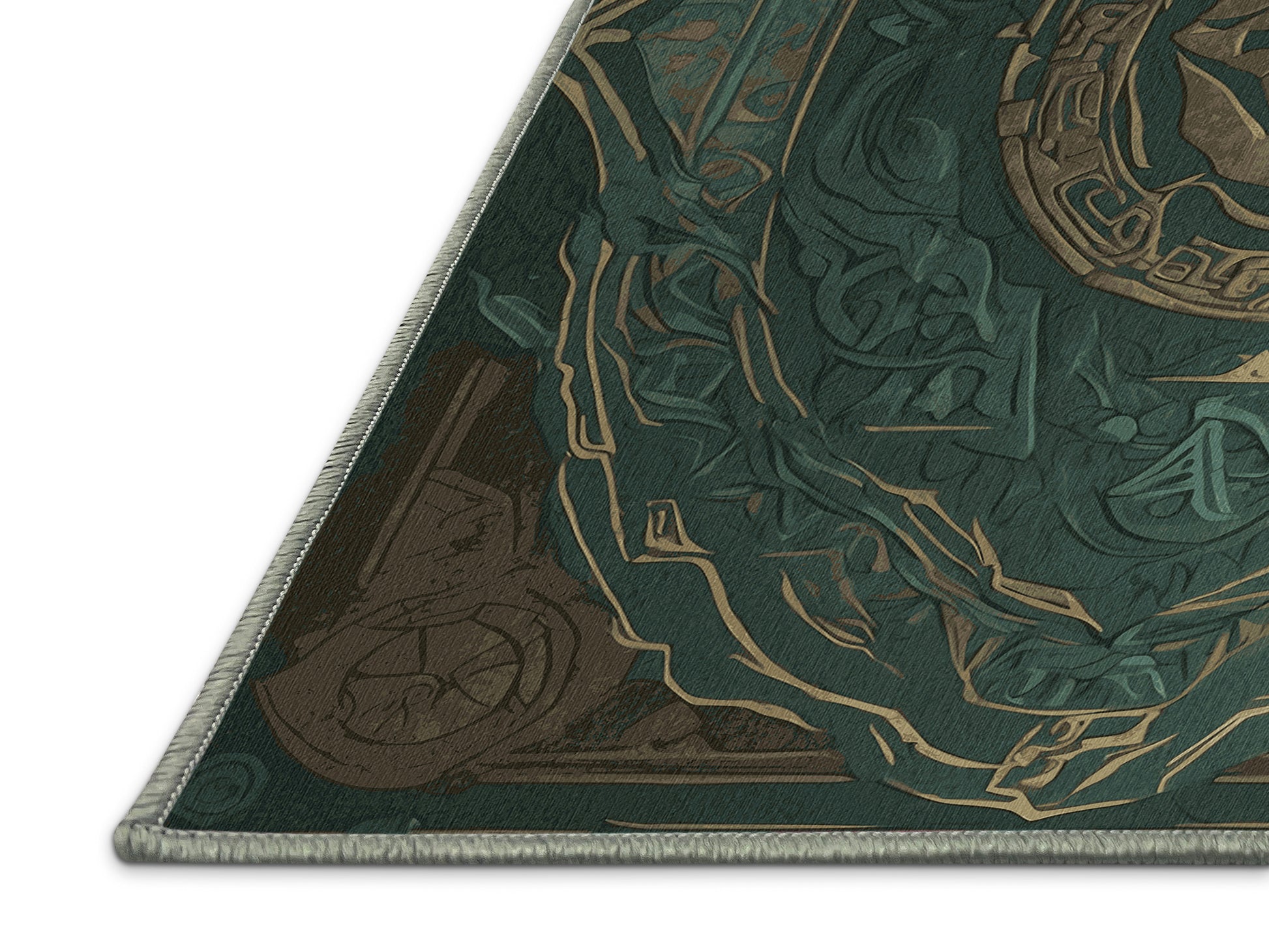 Twilight Realm from the Hero's Path collection takes you on an epic journey of adventure and timeless wonder with its captivating Hazel Green color (A medium green with earthy undertones, natural and grounding.), a bold tone in the Green color family. Inspired by mythical quests and heroic landscapes, this rug features intricate symbols and dynamic designs that evoke a sense of exploration and creativity. Finished with SageGreen serging a durable stitched edge that prevents fraying and enhances its artistic appeal this rug is crafted from premium polyester and machine-made in the USA with imported materials. Perfect for creating a bold statement in living rooms, inspiring creativity in home offices, or elevating entertainment areas, this design combines fantasy, elegance, and practicality. Available in multiple sizes, the Hero's Path collection transforms your space into a realm of imagination and discovery with its adventurous spirit and artistic flair.