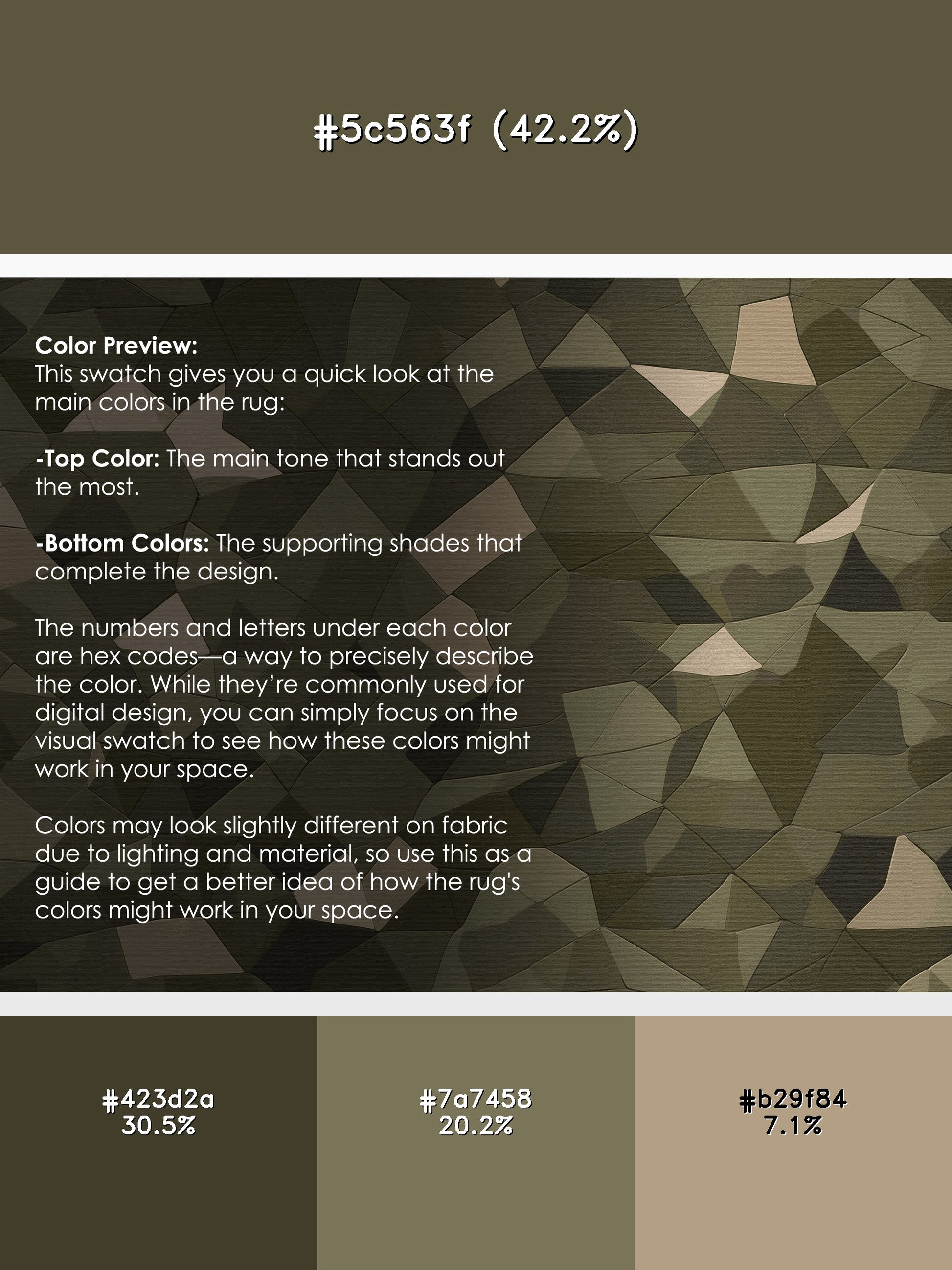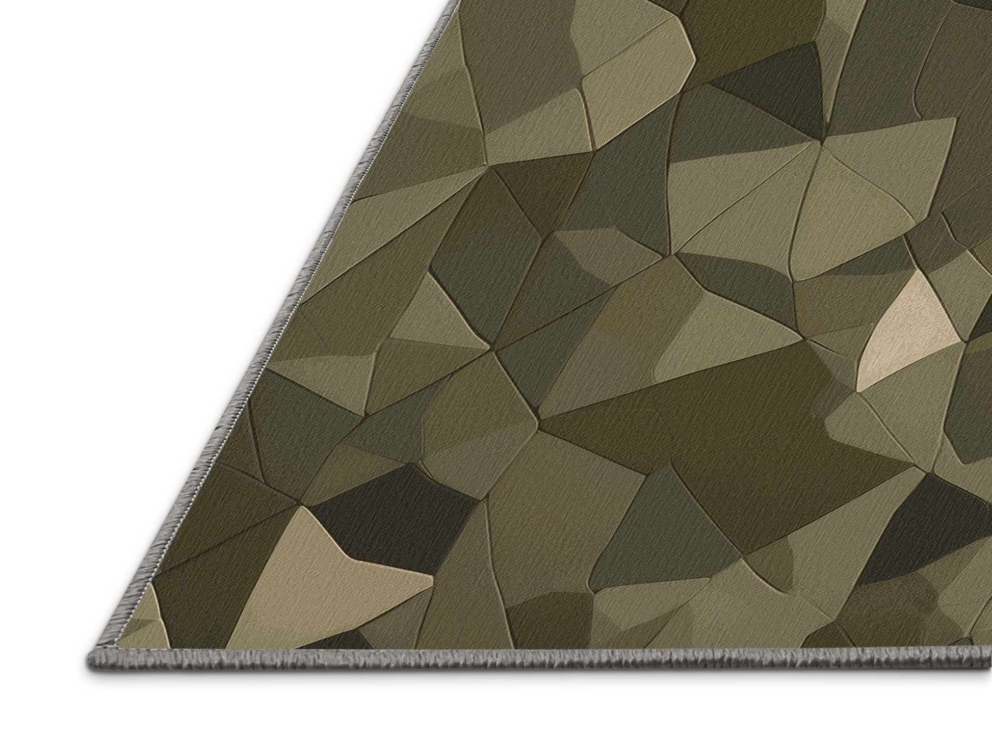 Vector Ridge from the Tactical Terrain collection brings rugged sophistication to your space with its striking Army Brown color (A muted and earthy brown inspired by military tones.), a bold tone in the Brown color family. Inspired by military camouflage and geometric precision, this rug features angular motifs, sharp black gridlines, and a muted palette that evokes strength and resilience. Finished with Gray serging a durable edge that enhances its contemporary aesthetic this rug is crafted from premium polyester and machine-made in the USA with imported materials. Perfect for modern living rooms, industrial home offices, or creative studios, this design blends tactical flair with versatile style. Available in multiple sizes, the Tactical Terrain collection transforms your home with a distinctive edge and bold character, elevating any decor scheme.