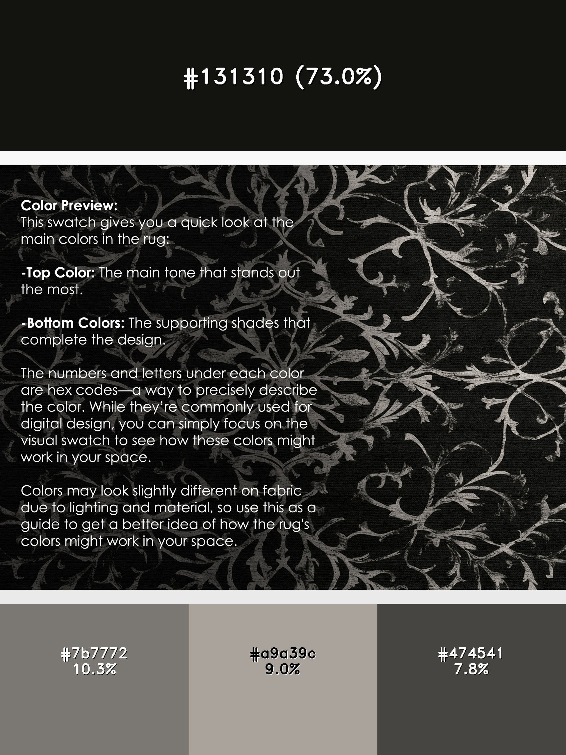 Veiled Elegance from the Nocturne Elegance collection exudes timeless sophistication with its captivating Camouflage Green color (A muted and earthy green, perfect for outdoor and natural themes.), a rich tone in the Green color family. Featuring intricate baroque-inspired patterns and swirling vine designs, this rug creates a sense of depth and refined elegance. Finished with SageGreen serging a durable edge that enhances its luxurious aesthetic this rug is crafted from premium polyester and machine-made in the USA with imported materials. Perfect for formal dining rooms, chic living areas, or cozy bedrooms, this design balances bold drama with subtle charm, complementing both contemporary and traditional interiors. Available in multiple sizes, the Nocturne Elegance collection transforms your home into a haven of understated grandeur and classic refinement.