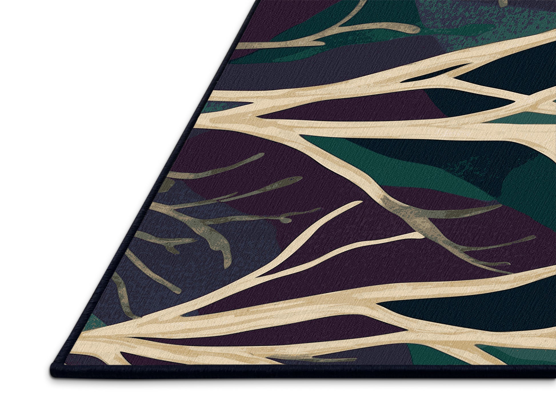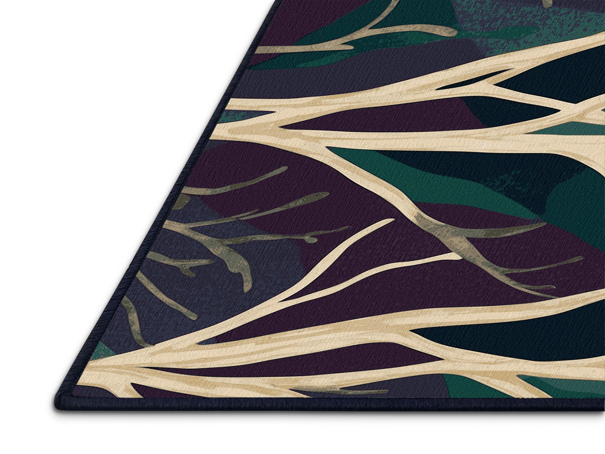 Velvet Leaves from the Mystic Flora collection brings the enchanting beauty of nature into your space with its captivating Purple Navy color (A dark purple with strong navy undertones, sophisticated and deep.), a soothing tone in the Purple color family. Featuring intricate botanical patterns inspired by lush leaves and whimsical trees, this rug is finished with Navy serging a durable stitched edge that prevents fraying and enhances its elegant design. Crafted from premium polyester and machine-made in the USA with imported materials, it combines modern artistry with lasting durability. Perfect for living rooms, serene bedrooms, or tranquil reading nooks, this design blends natural elements with a dreamy, ethereal quality. Available in multiple sizes, the Mystic Flora collection transforms your home into a tranquil retreat while adding a fresh, inviting touch to contemporary or bohemian interiors.