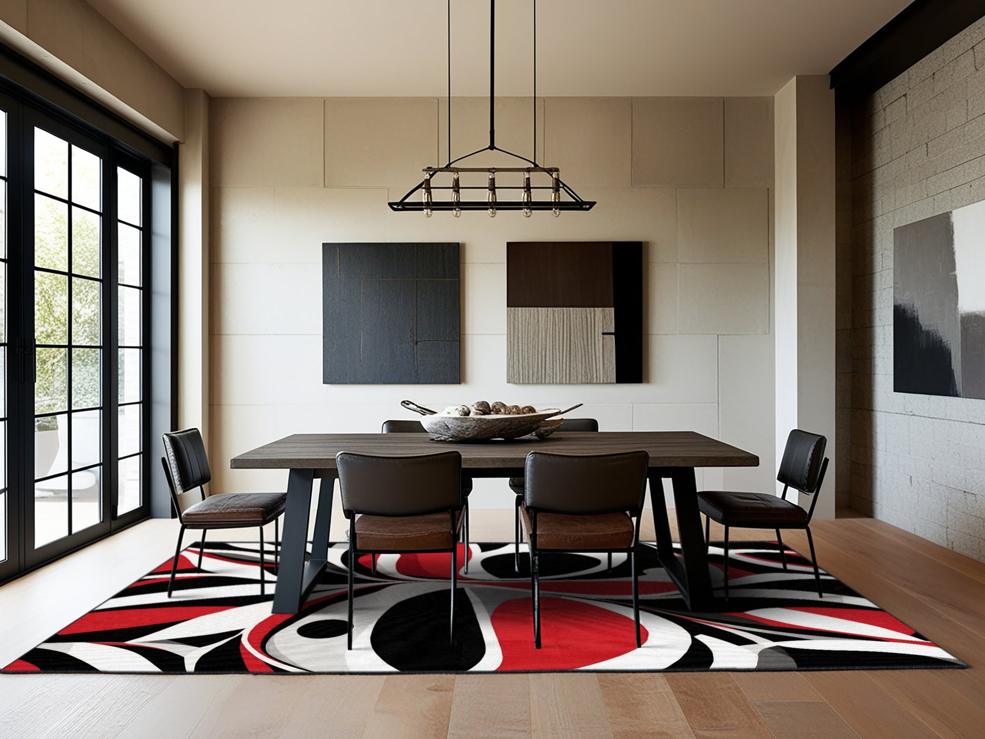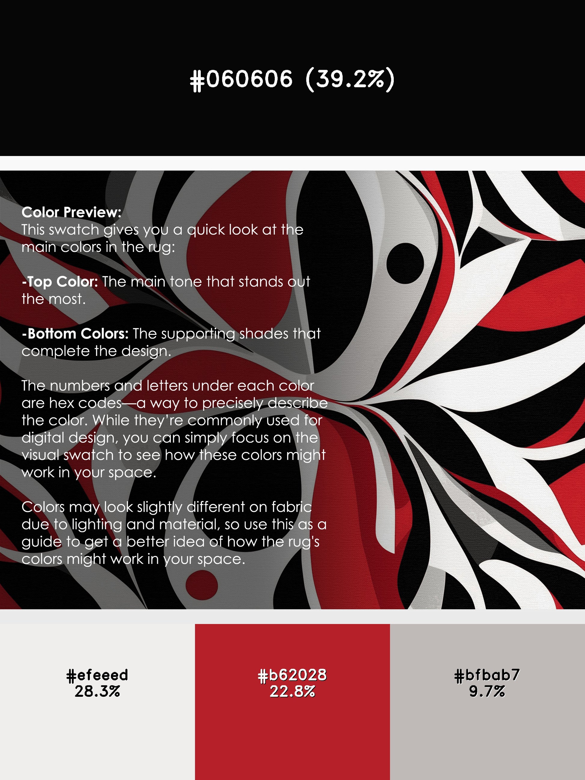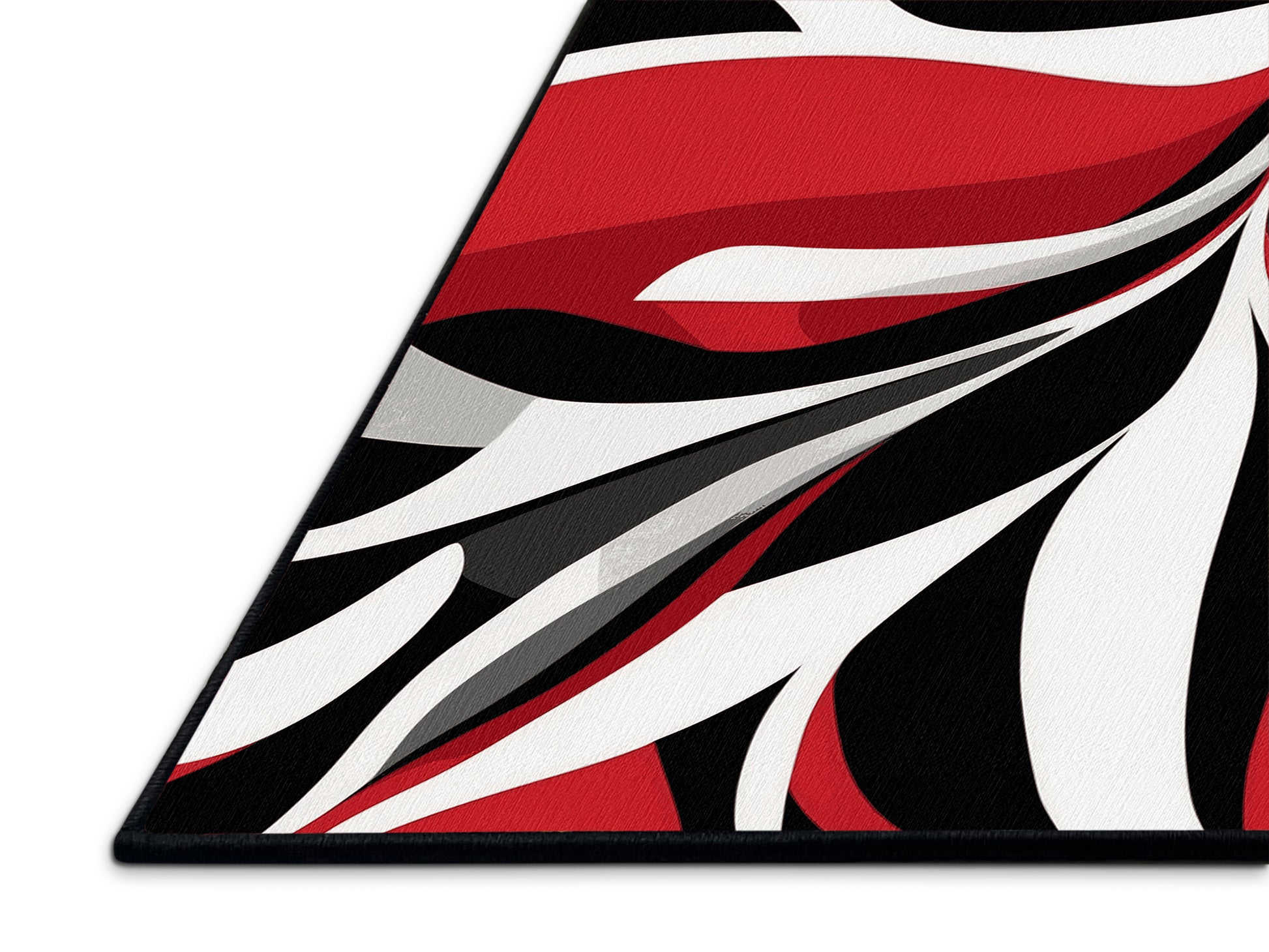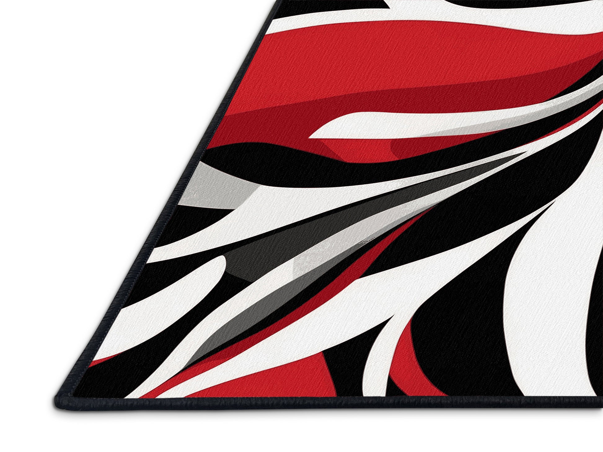 Velvet Path from the Scarlet Surrealism collection brings bold artistic energy to your space with its captivating Black (W3C) color (A pure, true black, perfect for sleek and timeless designs.), a dramatic tone in the Black color family. Inspired by surrealist artistry, this rug features abstract patterns with flowing curves and dynamic contrasts, creating a sense of motion and depth. Finished with Black serging a sleek edge that enhances its modern aesthetic this rug is crafted from premium polyester and machine-made in the USA with imported materials. Perfect for living rooms, statement hallways, or creative spaces, this design blends avant-garde elegance with everyday functionality. Available in multiple sizes, the Scarlet Surrealism collection transforms your home into a showcase of bold sophistication and unique style.