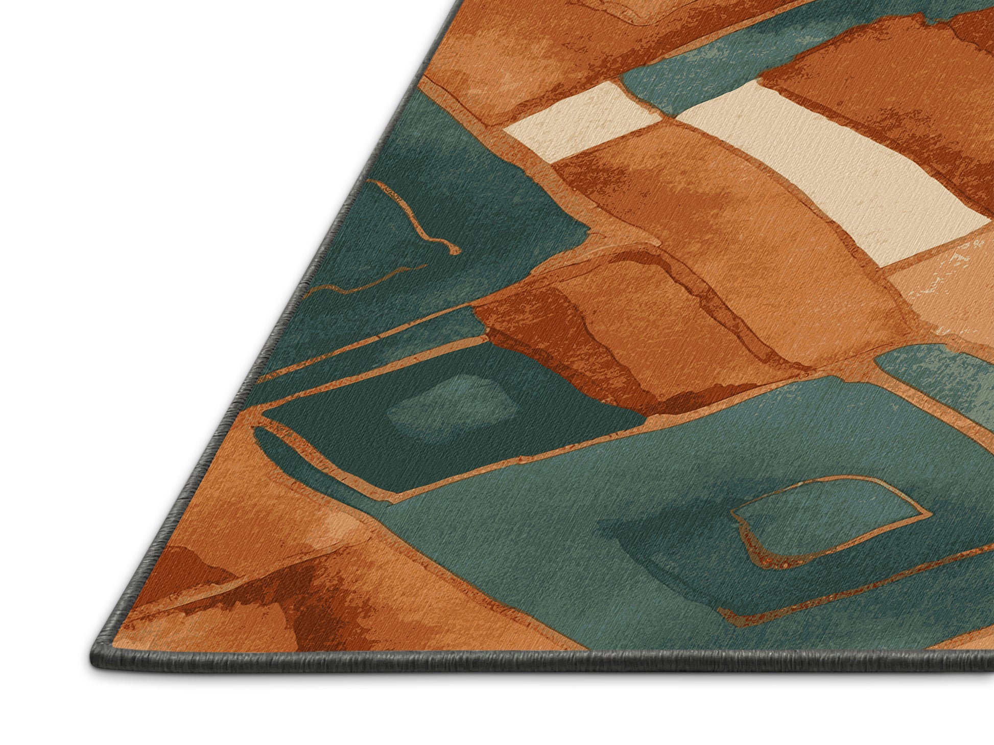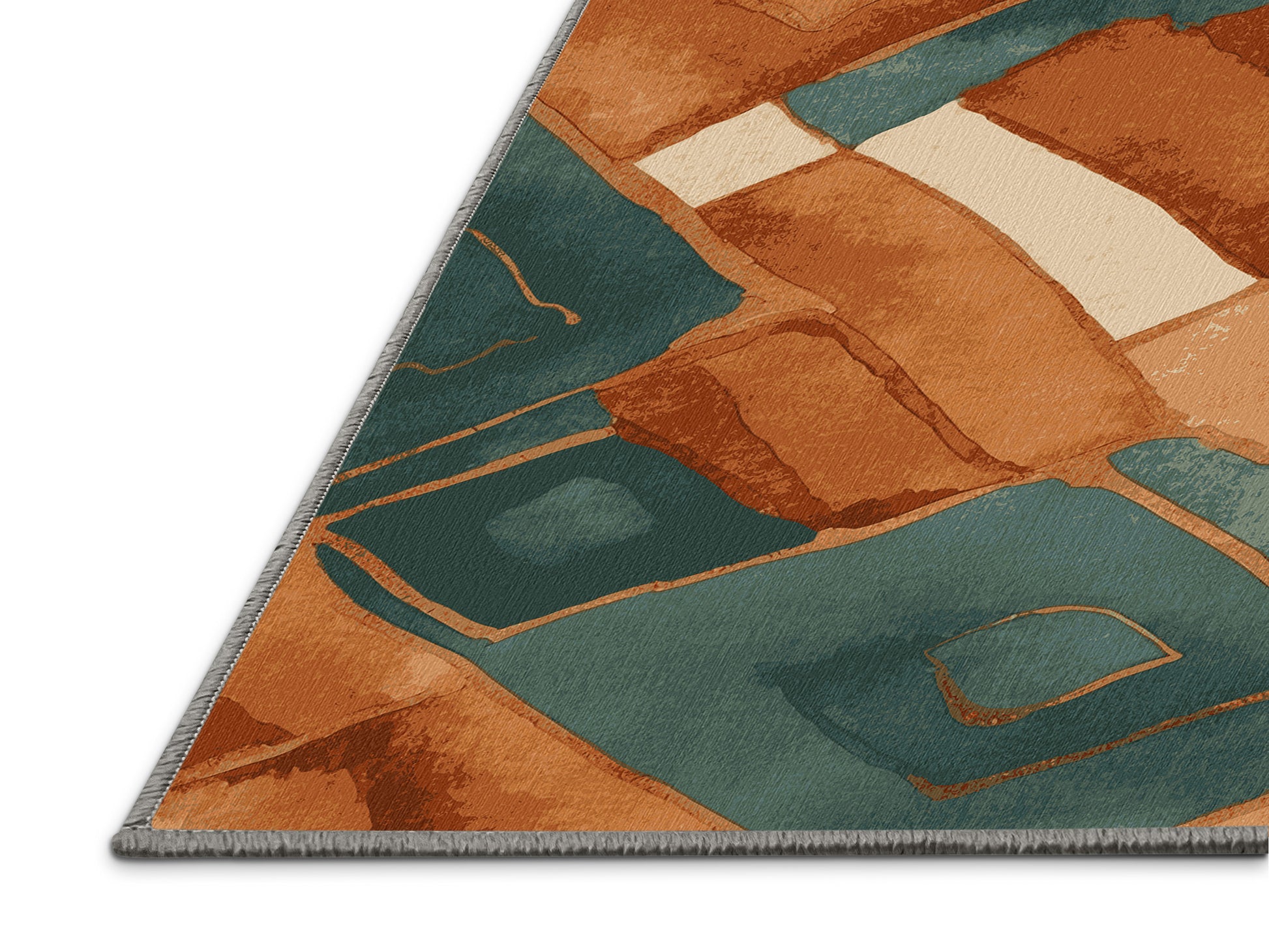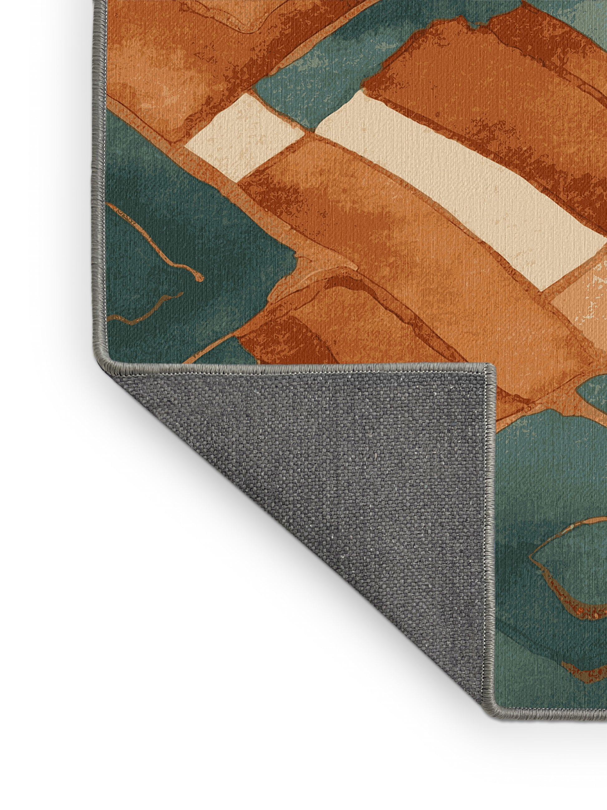 Verdant Voyage from the Terra Verde collection captures the serene beauty of nature with its stunning Grayish Turquoise color (A soft turquoise with gray undertones, cool and calming.), a grounded tone in the Green color family. Featuring organic patterns and structured geometric accents inspired by natural landscapes, this rug exudes a tranquil and sophisticated aesthetic. Finished with Gray serging a durable edge that enhances its refined look this rug is crafted from premium polyester and machine-made in the USA with imported materials. Perfect for modern living rooms, cozy bedrooms, or stylish home offices, this design blends earthy tones and natural textures to harmonize with boho, rustic, or contemporary decor. Available in multiple sizes, the Terra Verde collection brings the essence of the outdoors into your home, offering a timeless combination of warmth and elegance.