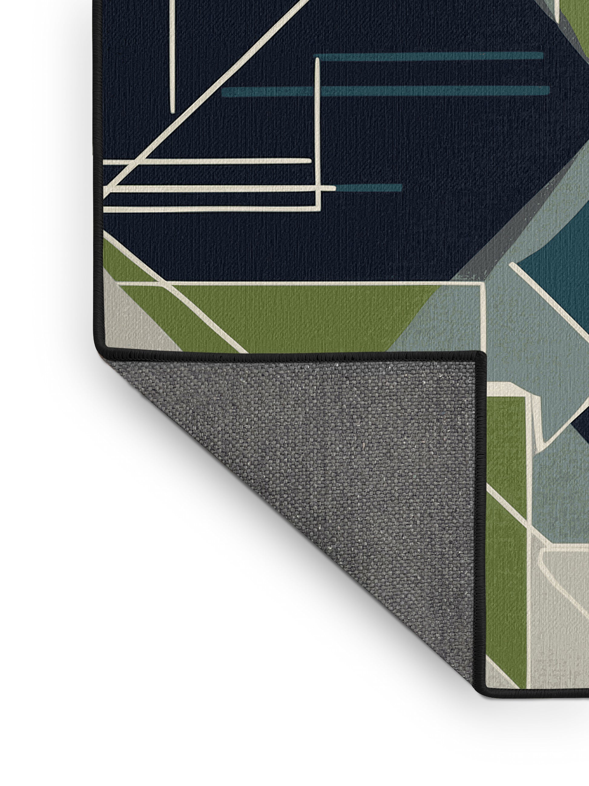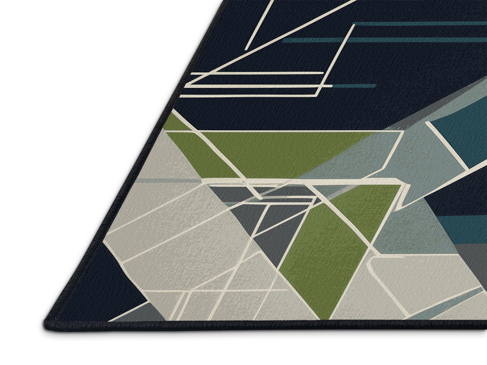 Void Horizon from the NeoLoom Galaxy collection brings futuristic sophistication to your space with its striking Dark Slate color (A dark slate blue with a cool and moody aesthetic.), a bold tone in the Blue color family. Featuring cutting-edge geometric patterns and dynamic lines inspired by space exploration and advanced technology, this rug is finished with Black serging a sleek edge that enhances its modern aesthetic. Crafted from premium polyester and machine-made in the USA with imported materials, it combines innovation, durability, and style. Perfect for contemporary living rooms, futuristic home offices, or bold creative studios, this design blends avant-garde artistry with forward-thinking design. Available in multiple sizes, the NeoLoom Galaxy collection transforms any space into a statement of sleek modernity and endless possibilities.