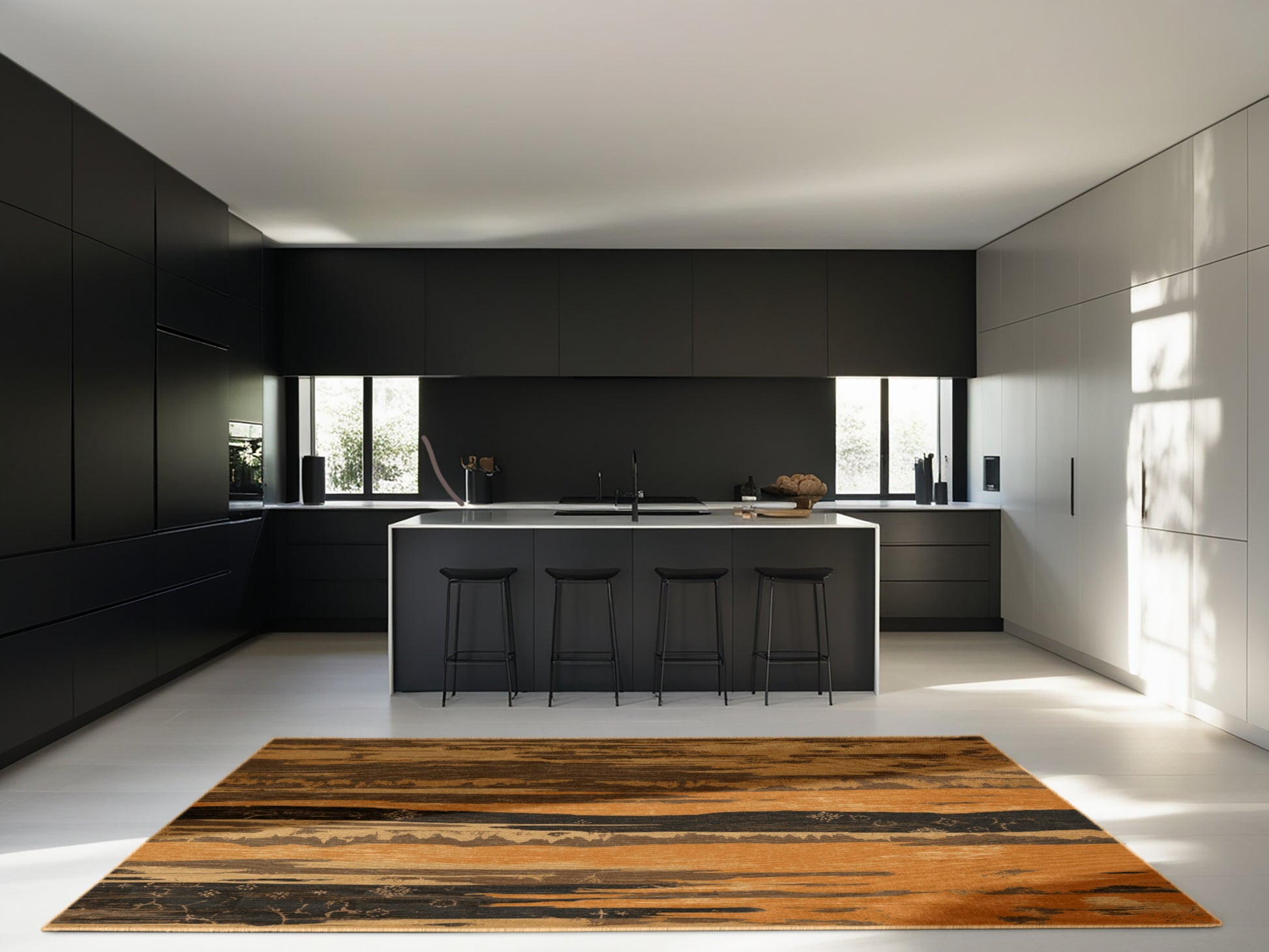 Whispered Vale from the Desert Horizons collection captures the raw beauty of desert landscapes with its stunning Dark Gold color (A deep gold with warm and rich undertones.), a warm tone in the Gold color family. Featuring organic, flowing patterns inspired by sunlit dunes and expansive horizons, this rug is finished with LightBrown serging a durable stitched edge that prevents fraying and enhances its refined look. Crafted from premium polyester and machine-made in the USA with imported materials, it combines natural elegance with long-lasting durability. Perfect for cozy living rooms, warm bedrooms, or bohemian-inspired spaces, this design brings texture, warmth, and timeless charm into your home. Available in multiple sizes, the Desert Horizons collection offers a versatile foundation for rustic, modern, or eclectic interiors, delivering a cozy yet sophisticated vibe.