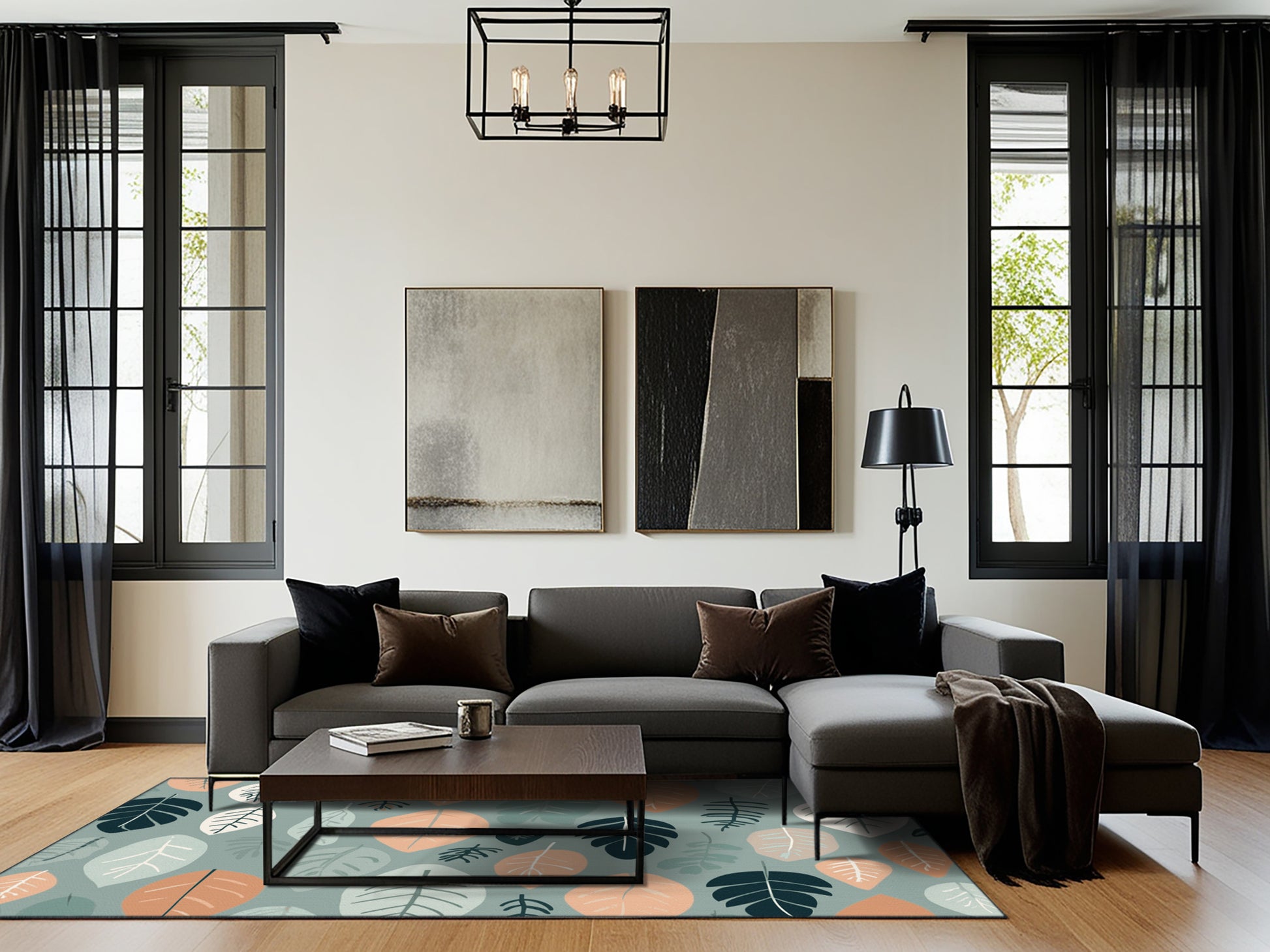 Wildwood Grace from the Nature's Haven collection captures the serene beauty of the natural world with its captivating Gunmetal Gray color (A cool, dark gray with a metallic feel, sleek and modern.), a tranquil tone in the Gray color family. Featuring delicate leaf motifs and organic shapes inspired by nature's gentle rhythm, this rug is finished with Black serging a durable edge that enhances its elegant design. Crafted from premium polyester and machine-made in the USA with imported materials, it combines modern artistry with timeless charm. Perfect for living rooms, peaceful bedrooms, or cozy nooks, this design blends warmth, vitality, and sophistication, complementing neutral, rustic, or modern decor. Available in multiple sizes, the Nature's Haven collection transforms any space into a refreshing retreat, channeling the tranquility and vitality of the natural world.