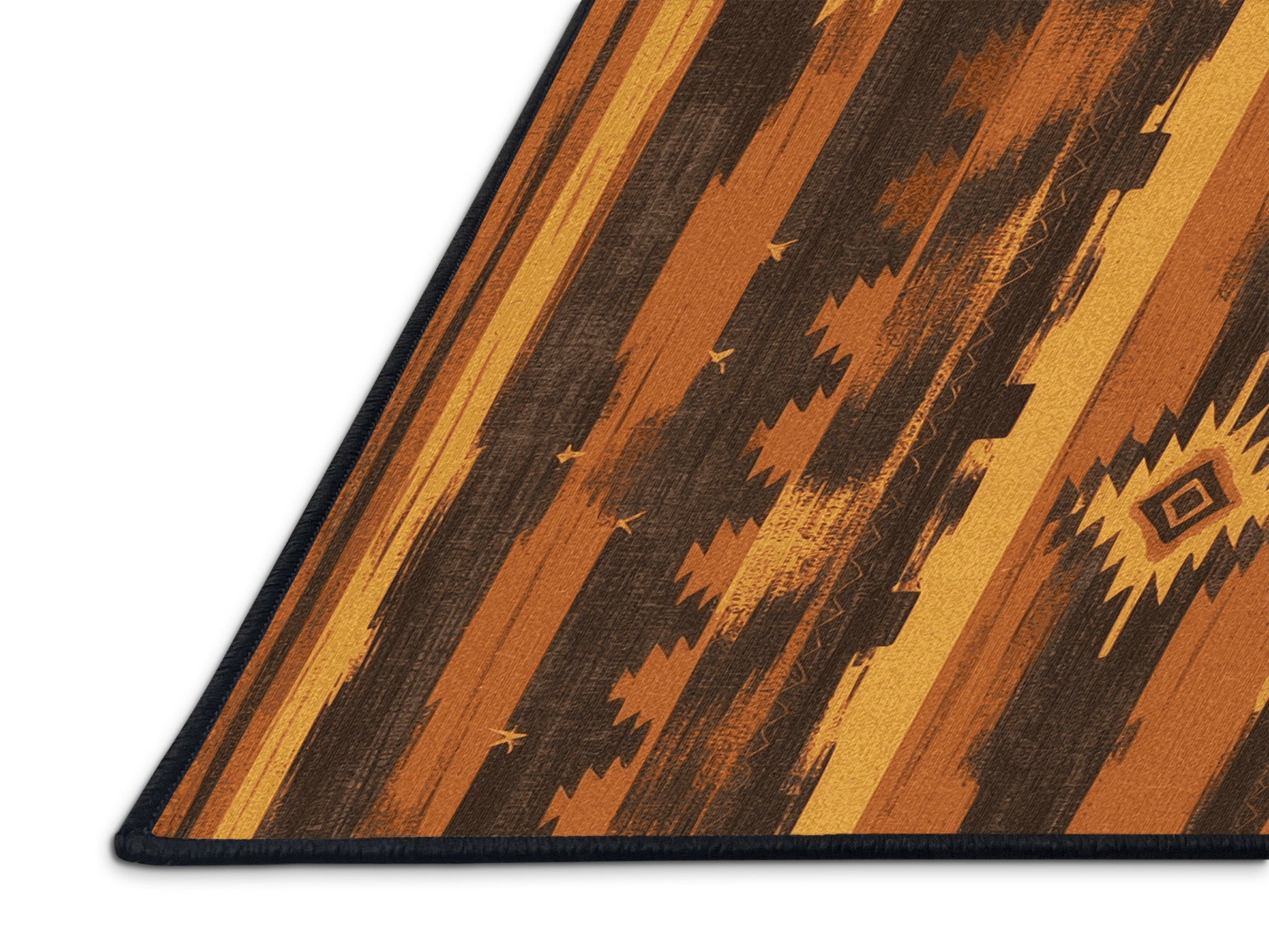Winding Paths from the Heritage Southwest collection captures the rugged charm of the American Southwest with its bold Coffee color (A rich brown inspired by the warmth of freshly brewed coffee.), a striking tone in the Brown color family. Inspired by traditional Navajo artistry and desert landscapes, this rug features geometric patterns and tribal-inspired designs that evoke cultural heritage and timeless beauty. Finished with Black serging a durable stitched edge that prevents fraying and enhances its rustic appeal this rug is crafted from premium polyester and machine-made in the USA with imported materials. Perfect for grounding a living room, adding warmth to a bedroom, or enhancing a dining area, this design seamlessly complements rustic, bohemian, or modern interiors. Available in multiple sizes, the Heritage Southwest collection brings the spirit of the desert into your home with its warm tones and artisanal charm.