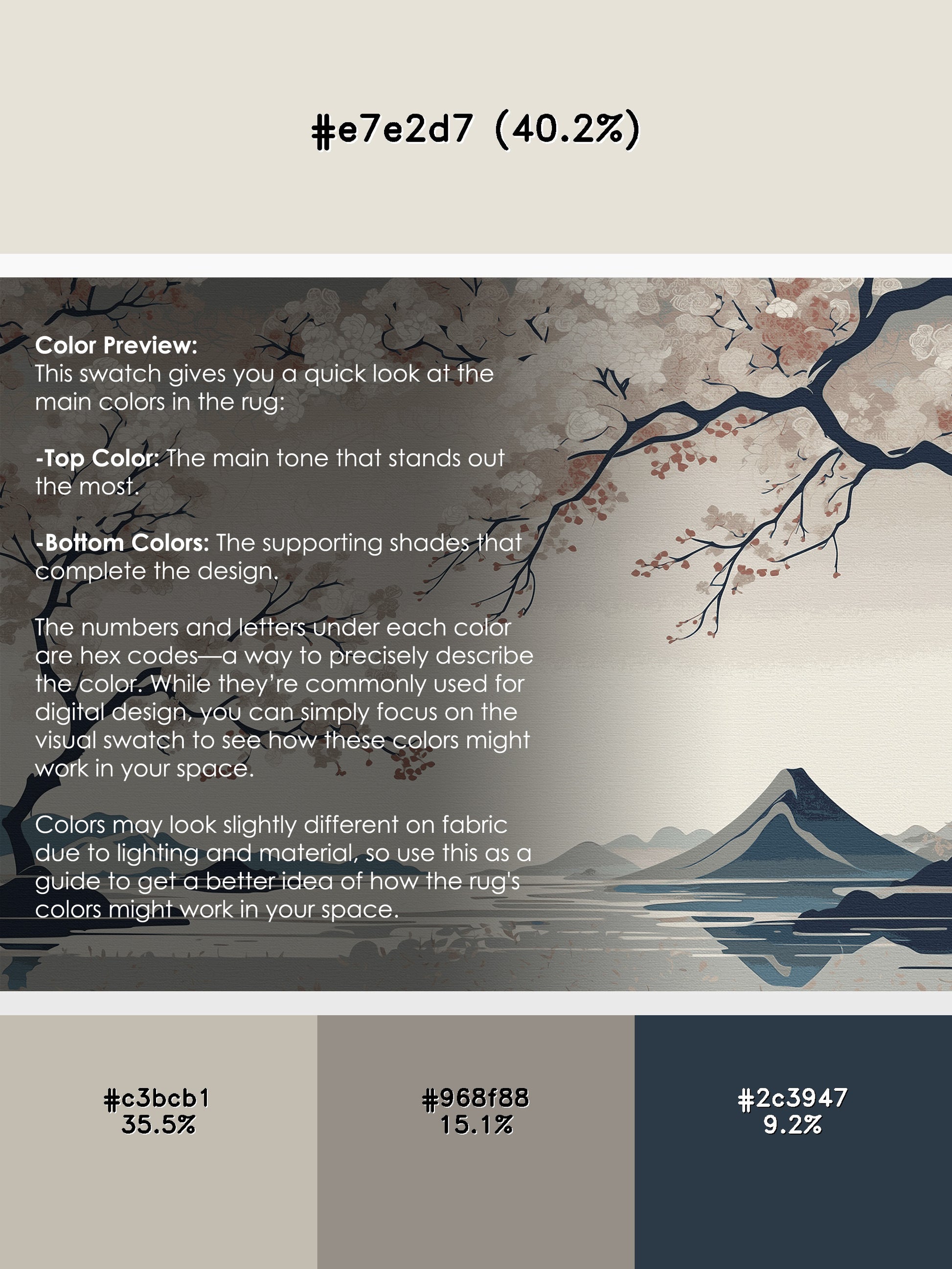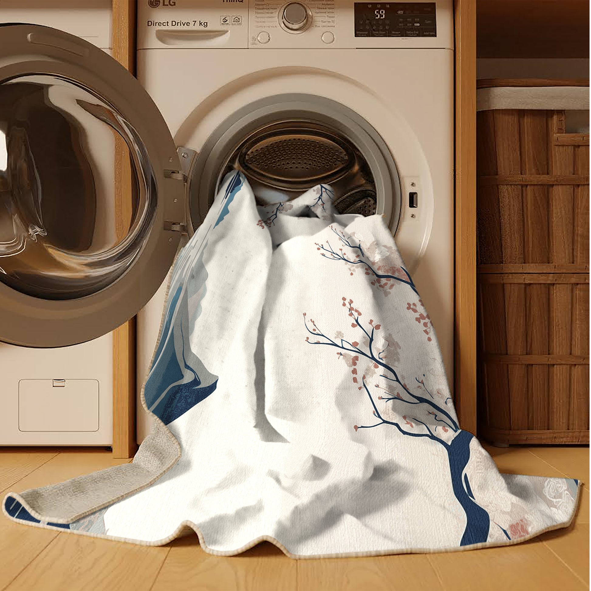 Woven Serenity from the Sakura Waves collection captures the timeless elegance of Japanese artistry with its captivating Ash White color (A pale white with a subtle ash-like hue, delicate and soft.), a refined tone in the White color family. Featuring delicate cherry blossom motifs and flowing wave-inspired patterns, this rug evokes the serene beauty of nature and the transient charm of sakura in bloom. Finished with White serging a durable edge that enhances its artistic appeal this rug is crafted from premium polyester and machine-made in the USA with imported materials. Perfect for minimalist living rooms, tranquil bedrooms, or zen-inspired spaces, this design blends cultural sophistication with modern functionality. Available in multiple sizes, the Sakura Waves collection transforms your home into a serene retreat, balancing artistic expression and versatile style seamlessly.